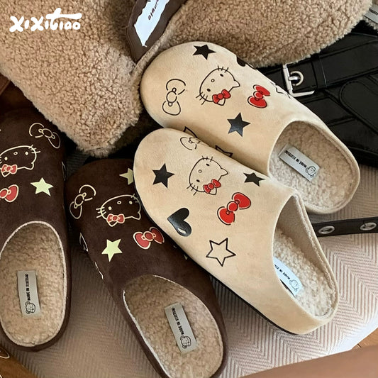 HelloKitty Pocken Shoes, Girl Heart Cotton Slippers