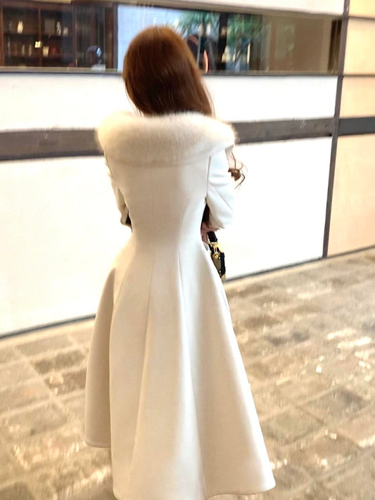 Ivory Faux Fur Collar Maxi Flare Coat