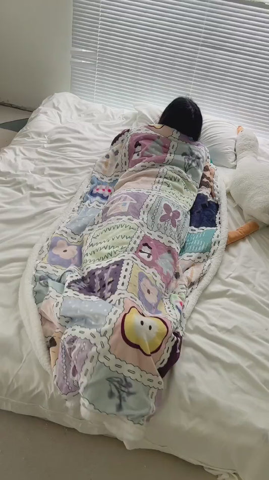 Fun Extended Flannel Lamb Fleece Double Layer Thick Blanket