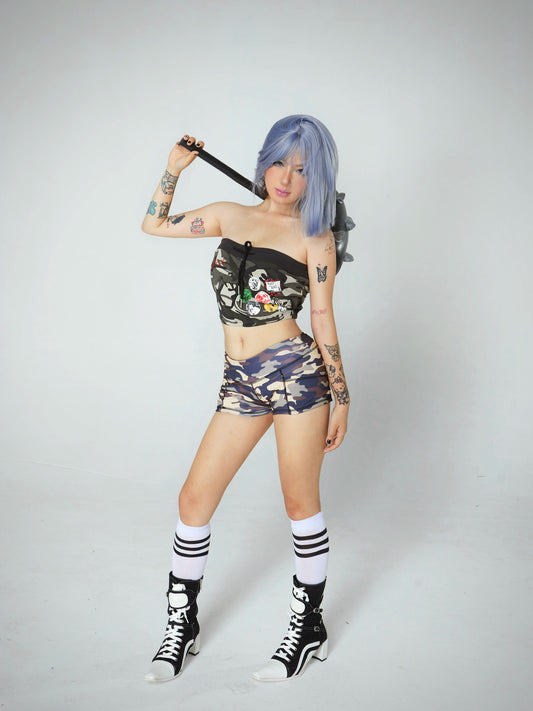 Sold outEmbroidered punk camouflage tube top