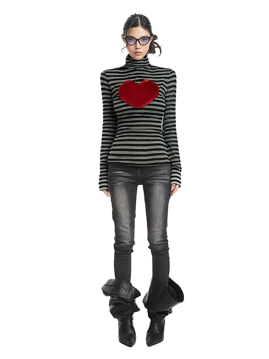 High neck polka dot heart-shaped long sleeved Top
