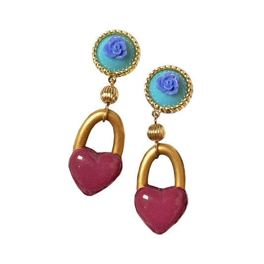 Christmas on the Grass "New Year's Prayer Ruby and Flower Gift Box Shaped Earrings