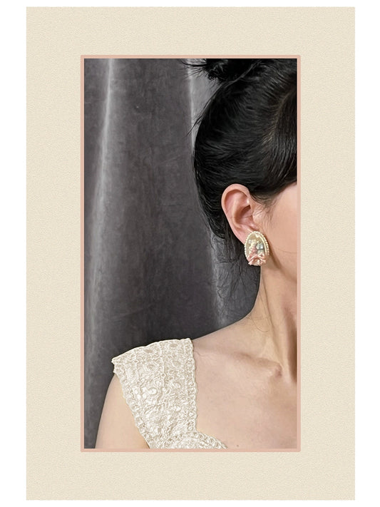Gladys' Young Pearl Mirror Skin Skin Shell Leaves Alien Baroque Freshwater Pearl Earrings