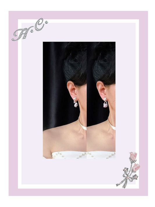 ~* Screen specific Peach Heart Pink Box *~Rose&Sparkling Tears Diamond Millennium Club Silver Earrings