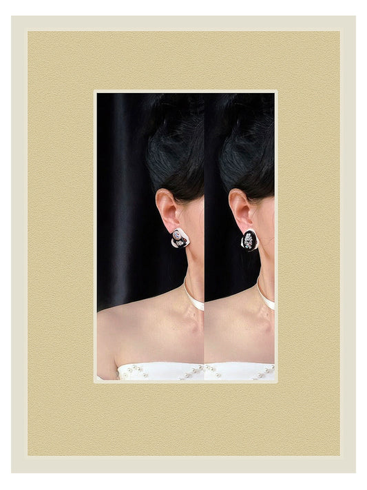 ~Sparkling Raindrops Yushan Tea~Elegant Camellia Mist Surface Sparkling Diamond Clear Cold Earrings with Cool and Light Beauty
