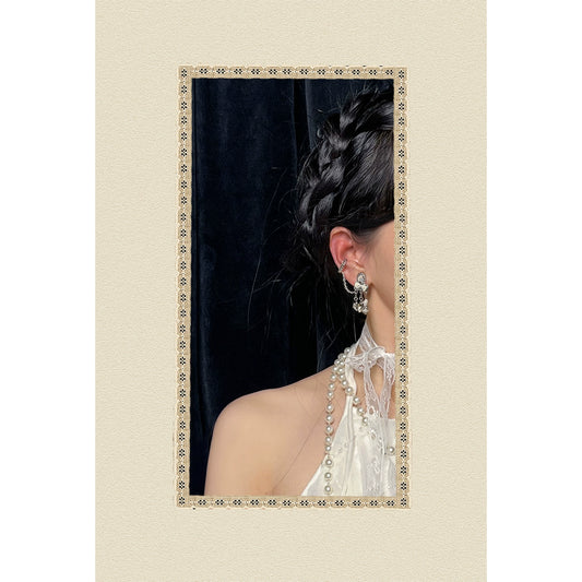 Meiji's Diamond Tears "Heavy Industry Antique Silver Sparkling Tears Water Diamond Earrings Gorgeous Millennium Princess
