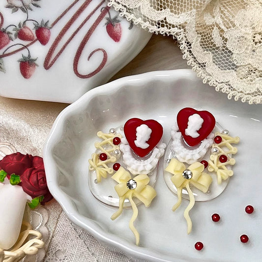 ~* De Xun Girl Ribbon Pack *~Wine Red Girl Portrait&Ballet Ribbon Earrings