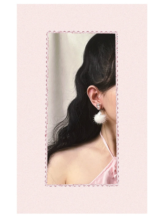 ~*Cherry Blossom Candy and Snow Rabbit *~Pink Pearl&Sparkling Diamond Ball White Christmas Hairy Ball Earrings