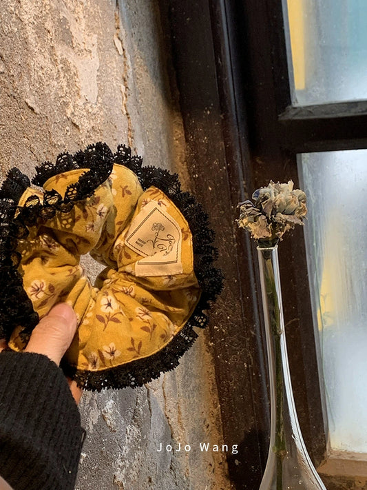 Lace premium chicken yellow multi-layer scrunchie