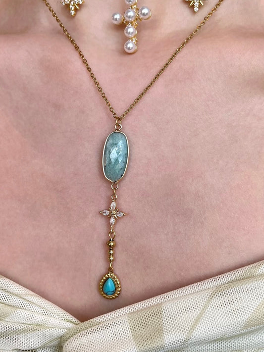 Blue Cat Eye Tianhe Stone Star Cross Titanium Steel Necklace Choker