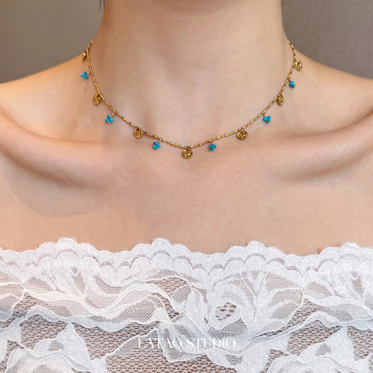 Bluebell Flower "Blue Gold Turquoise Vintage Necklace