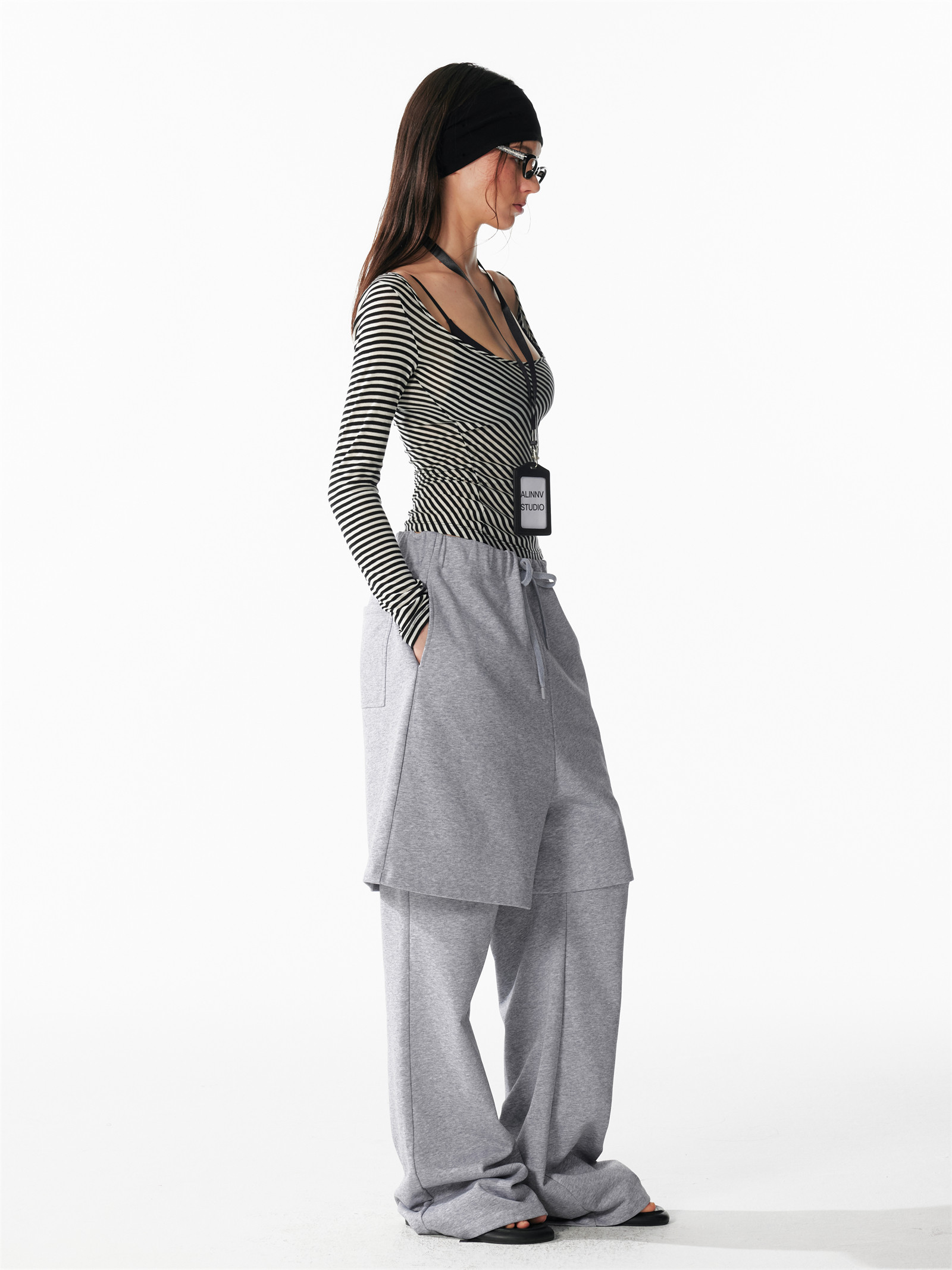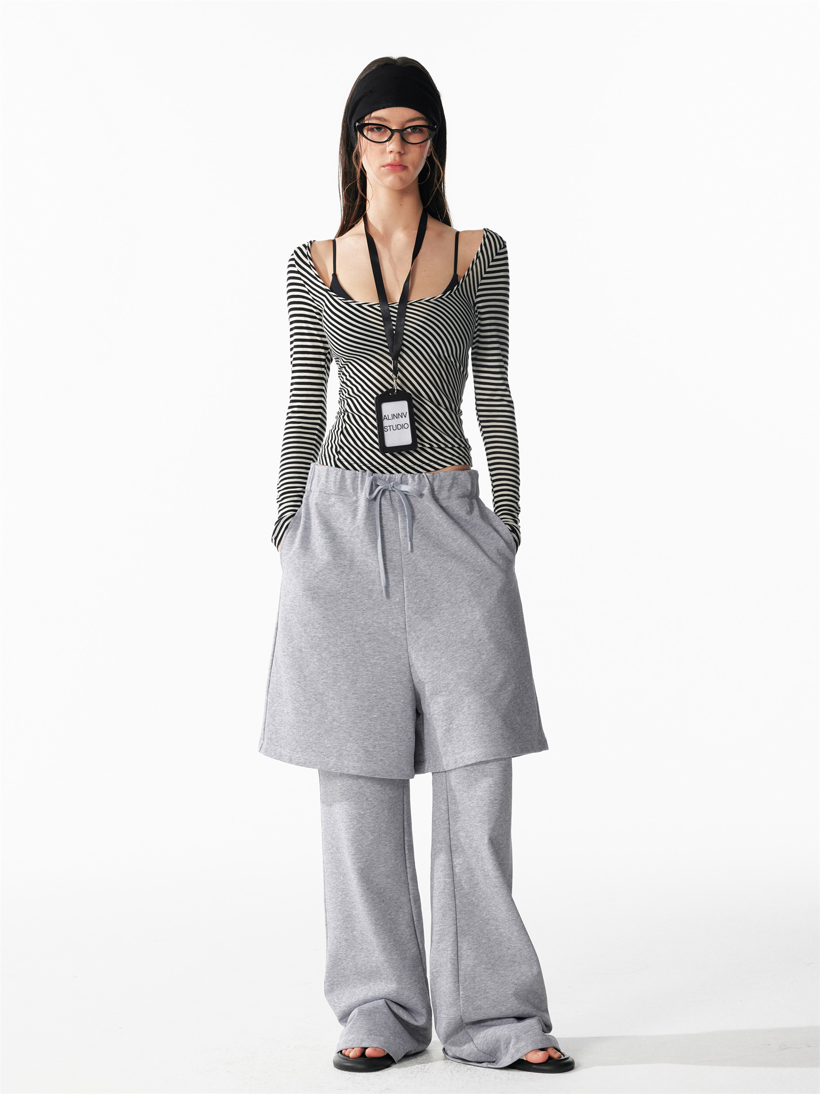 U-neck striped long sleeved tee