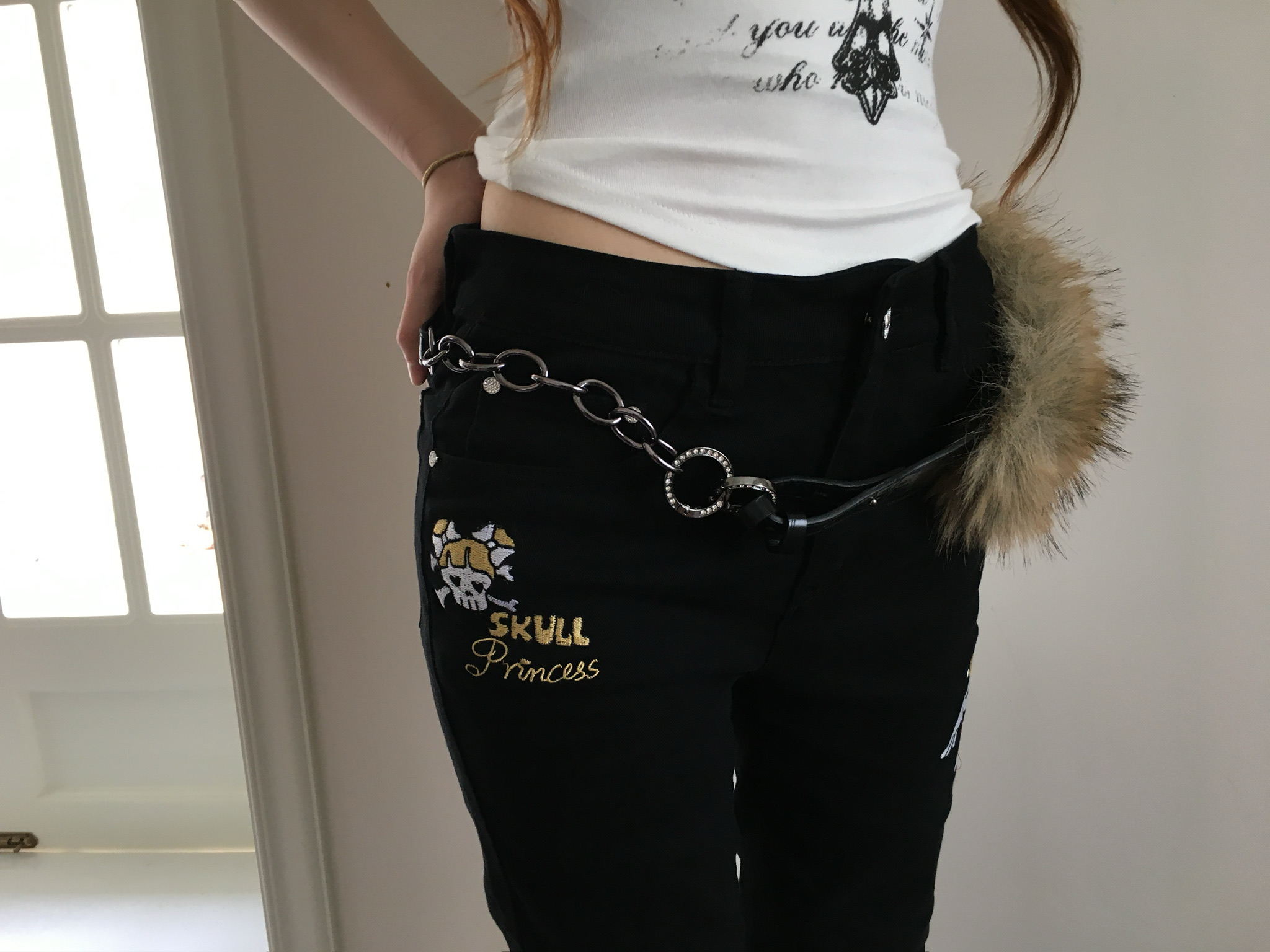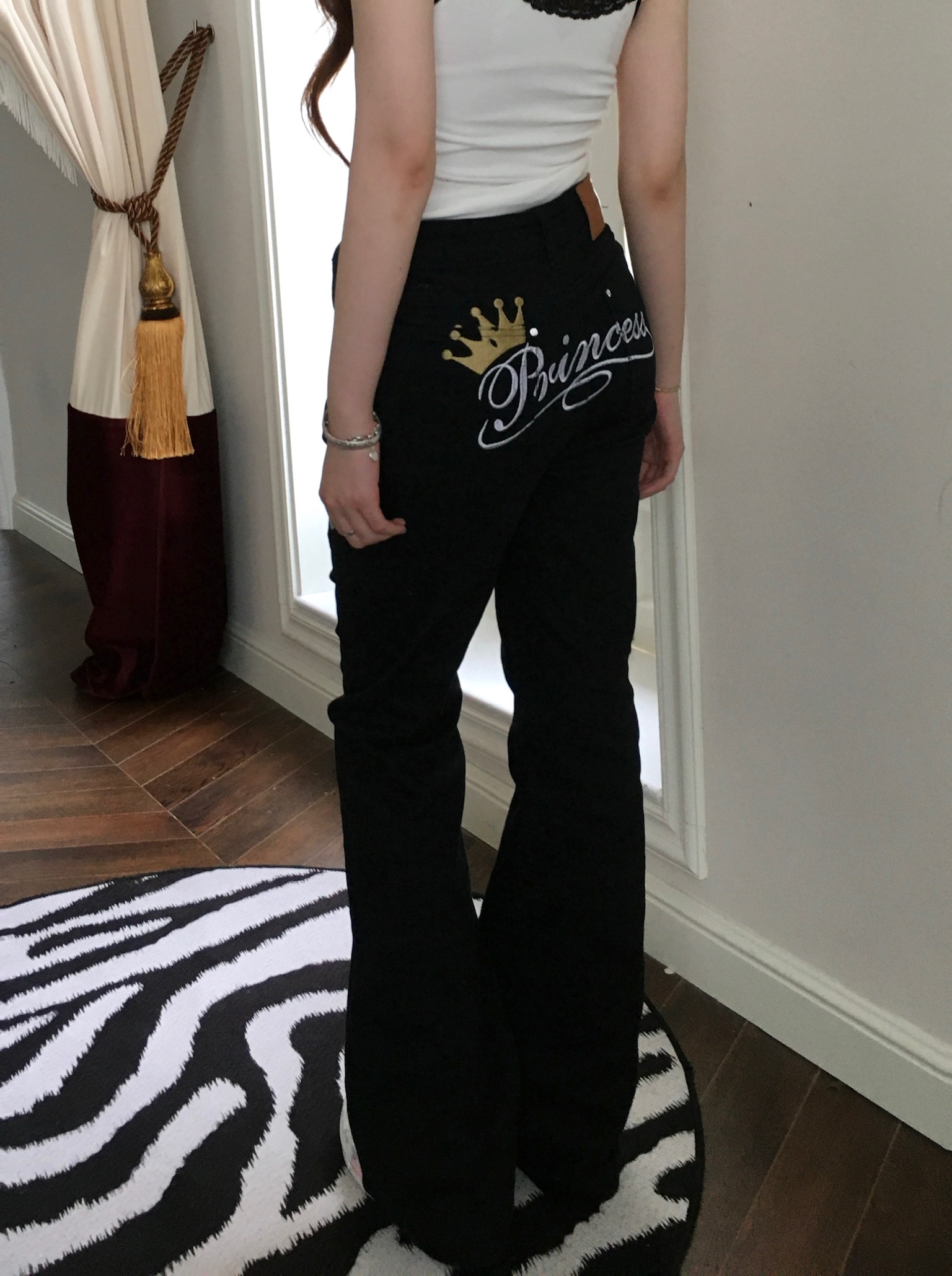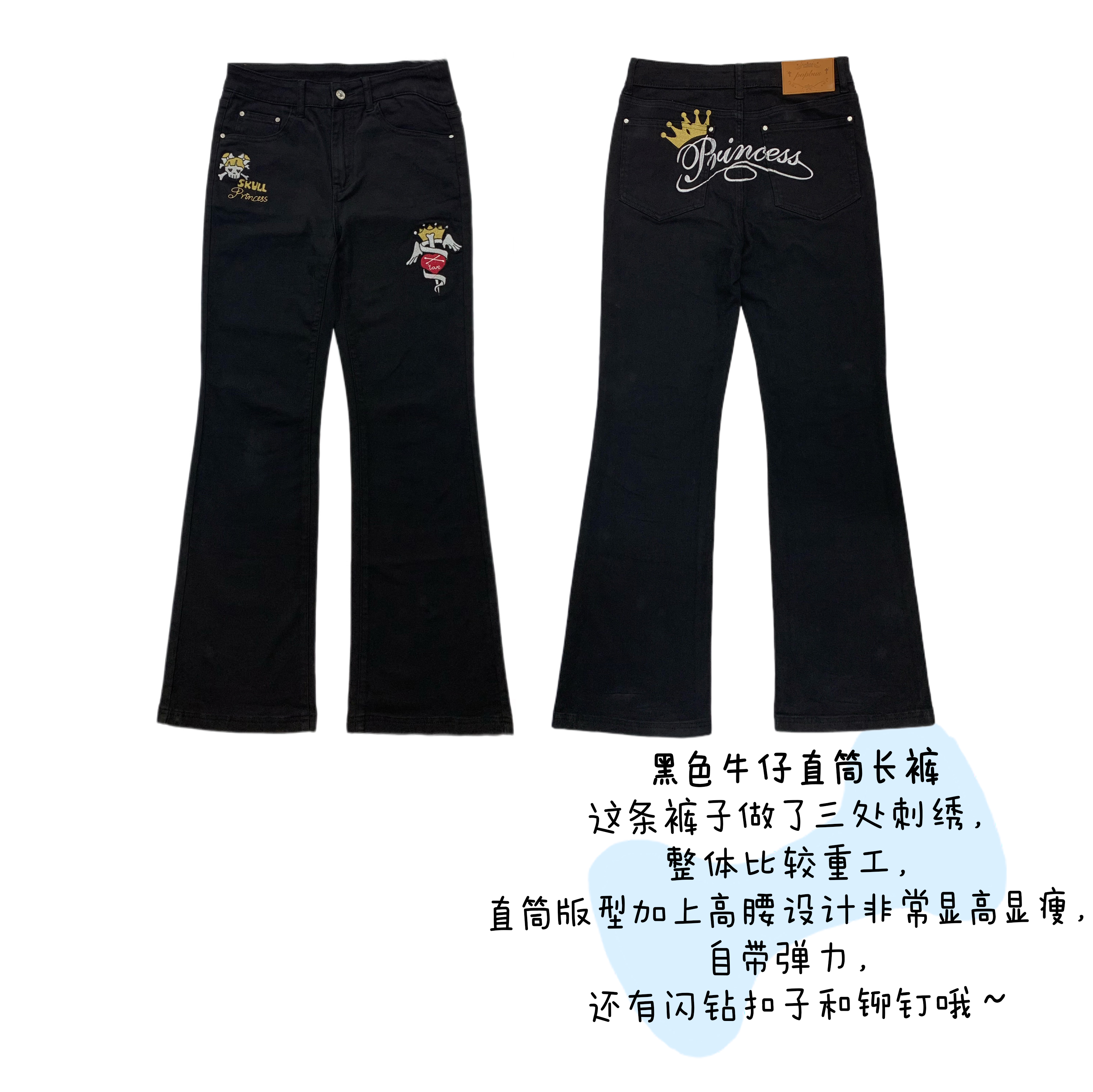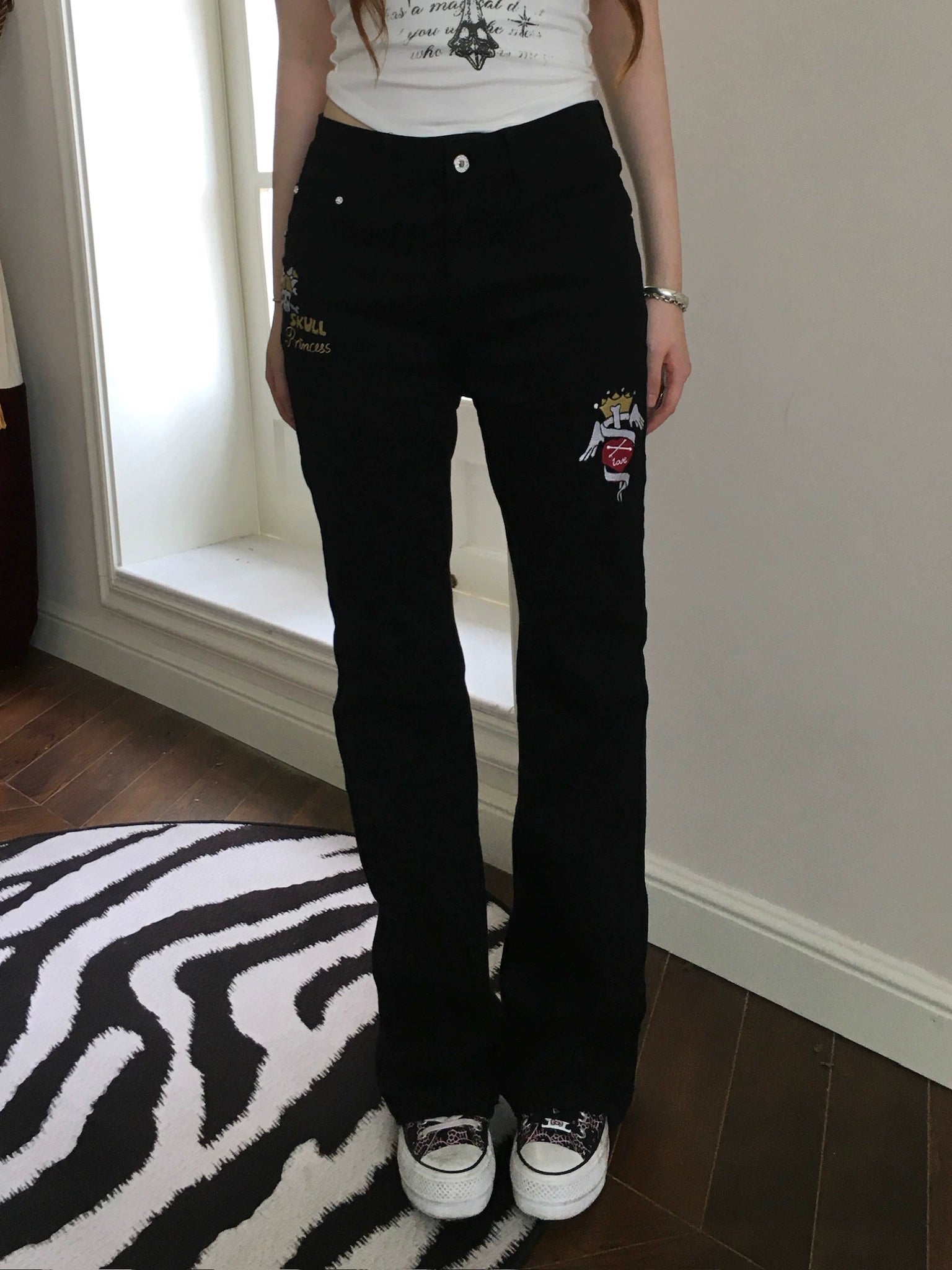 Black denim embroidery jeans