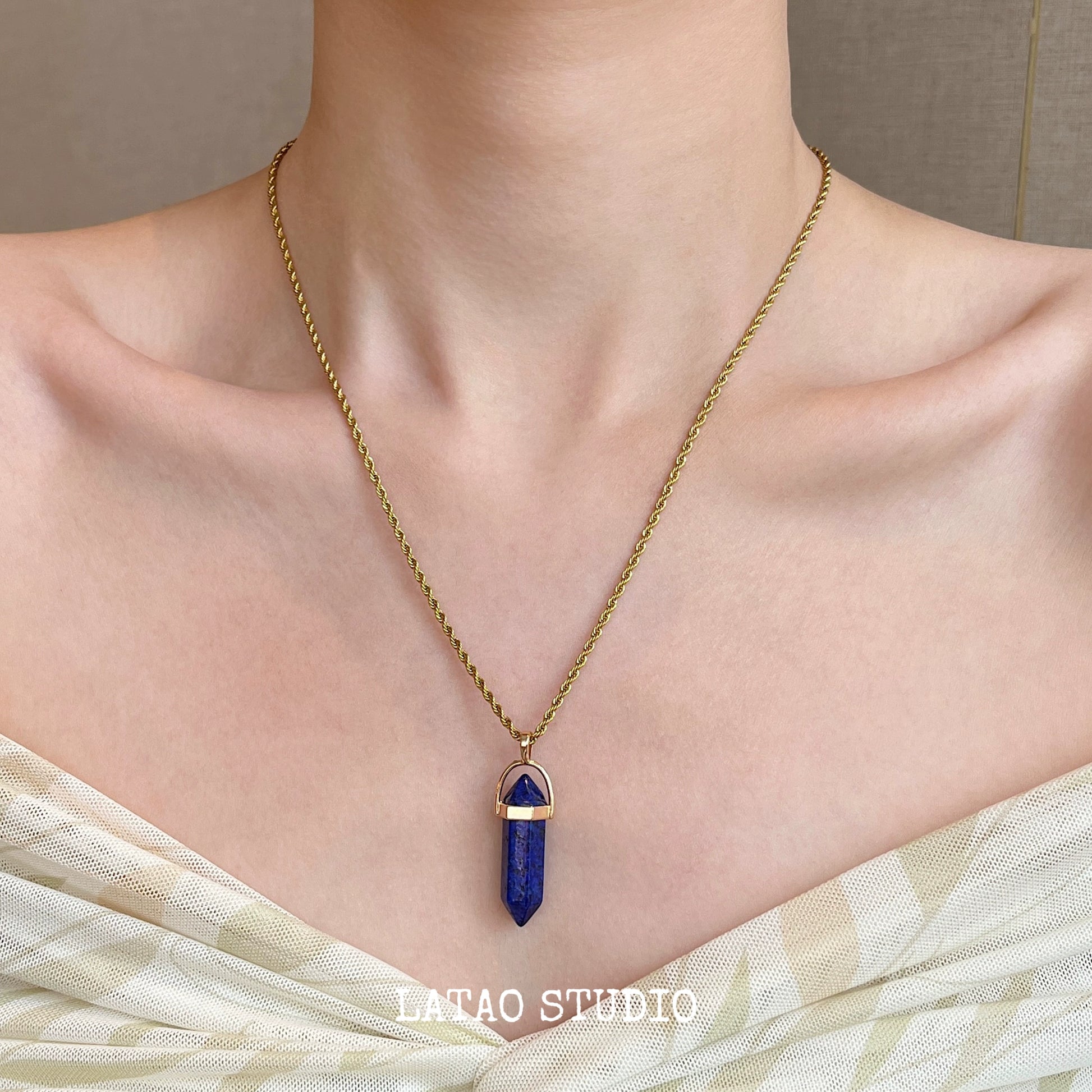 Blue gold lapis lazuli solar titanium steel choker necklace