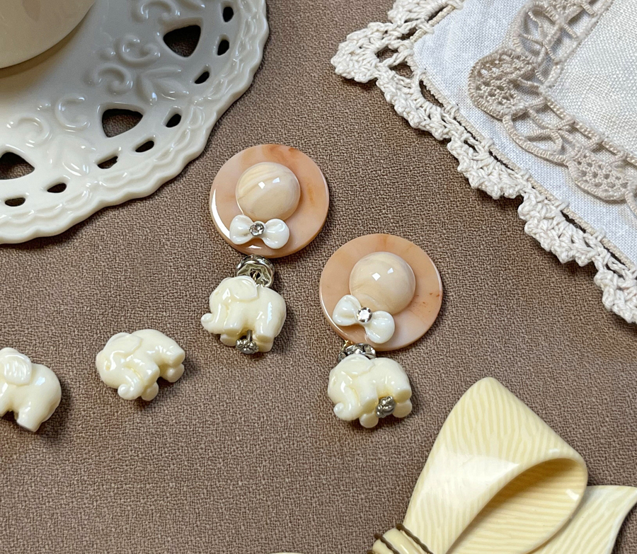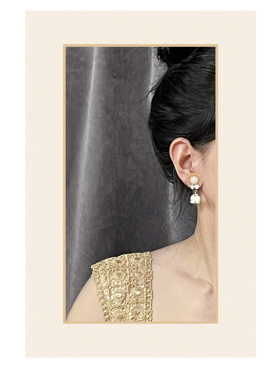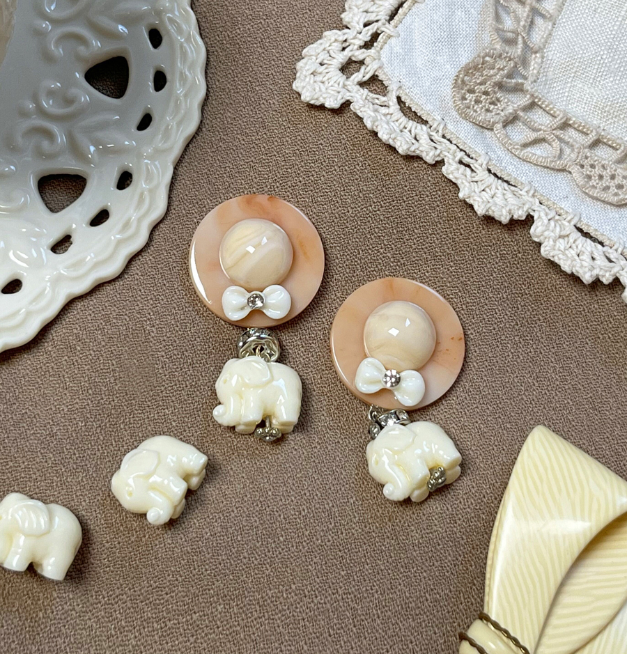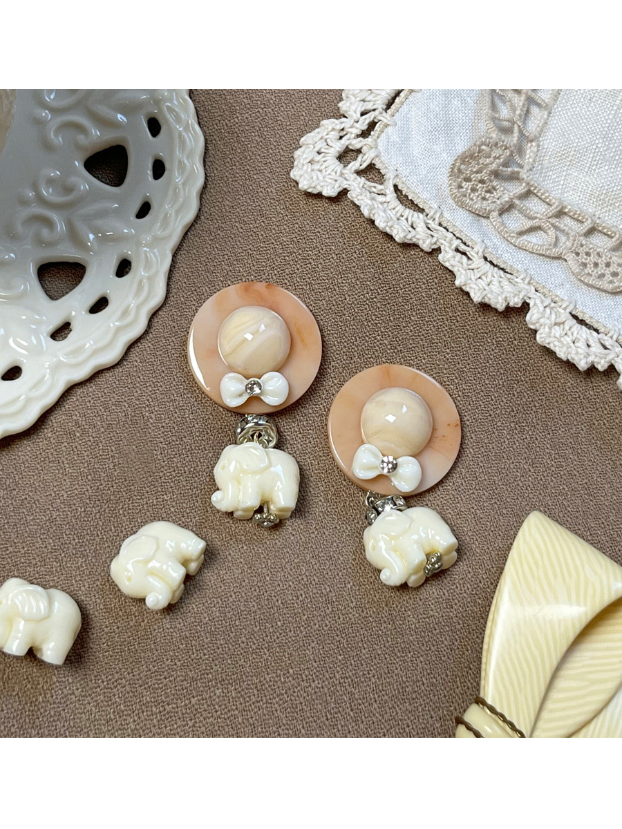 Cairo Milk White Elephant - Jade Hat and Elephant Shaped Earrings Antique Water Diamond Toy