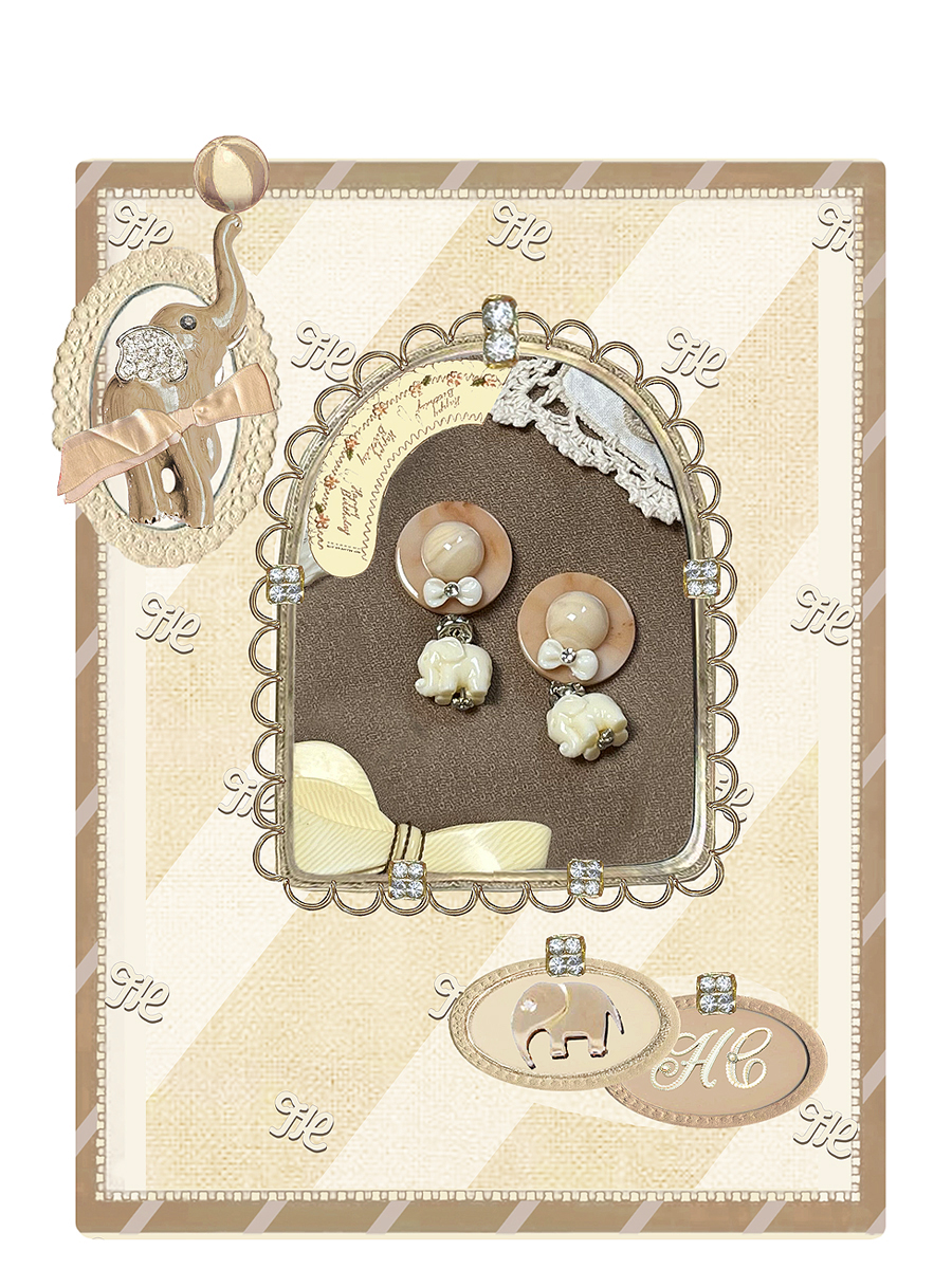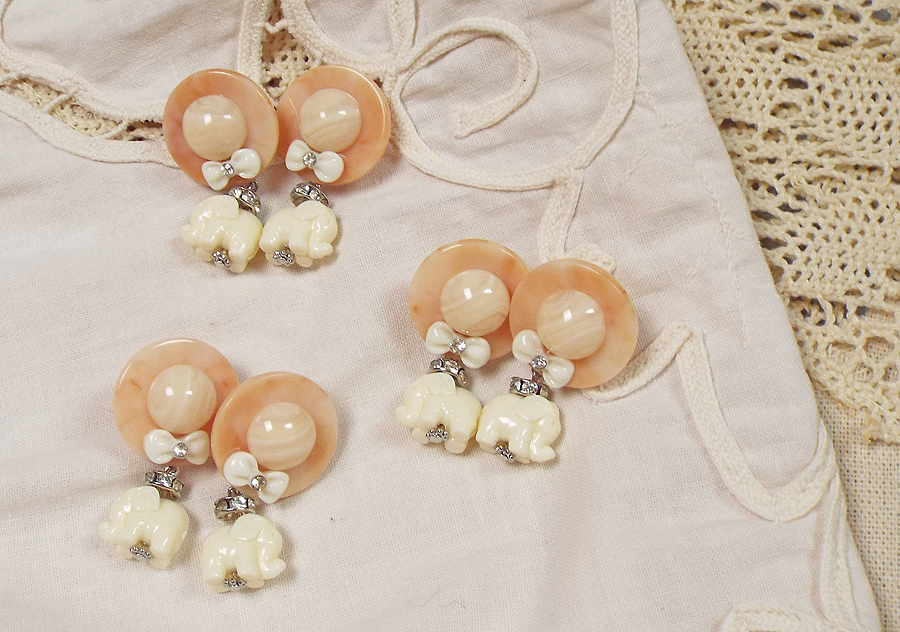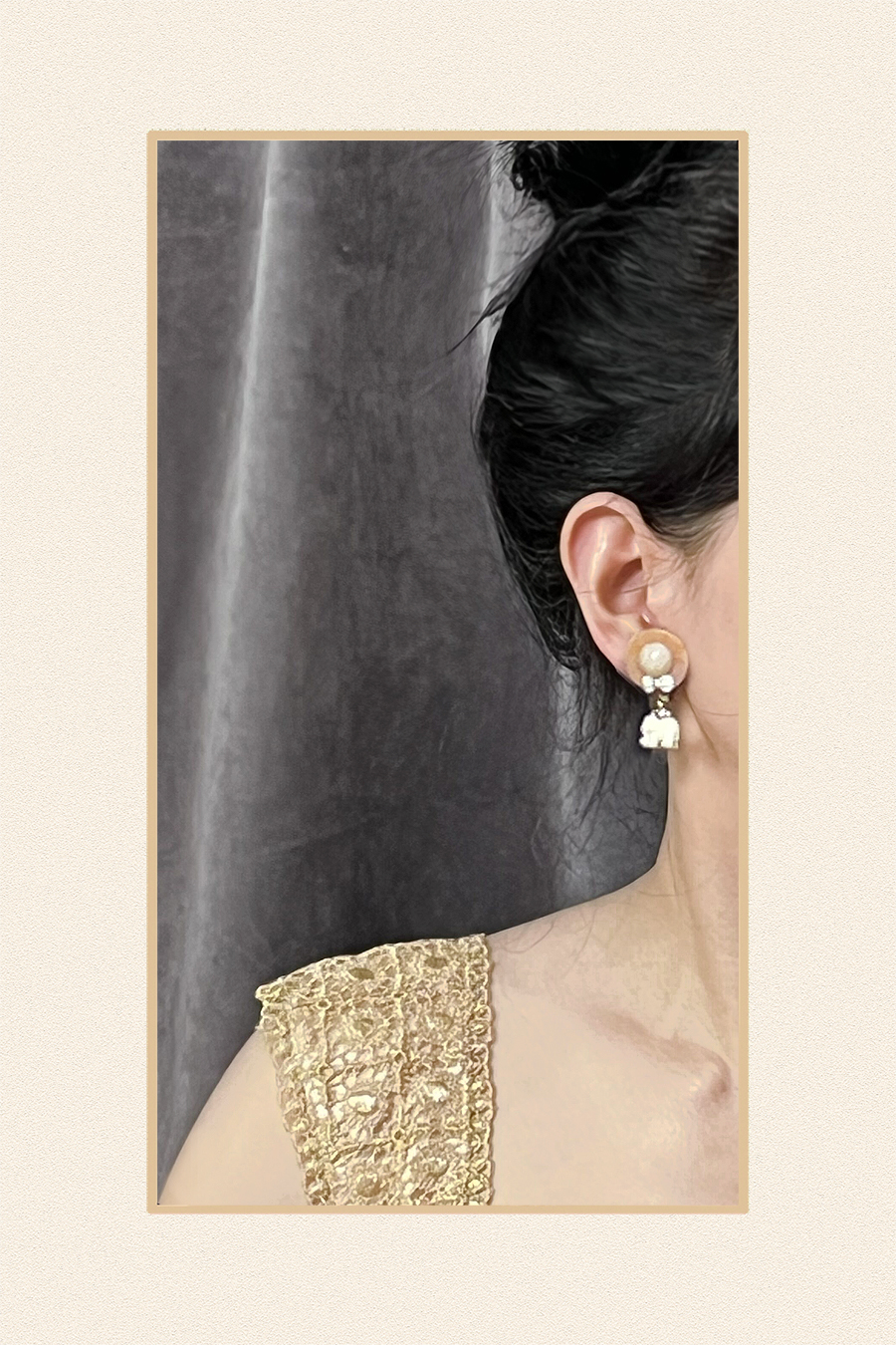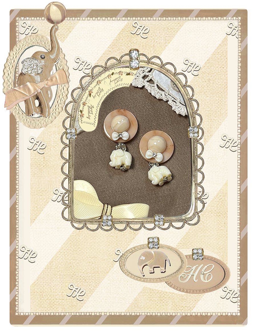 Cairo Milk White Elephant - Jade Hat and Elephant Shaped Earrings Antique Water Diamond Toy