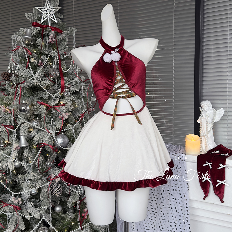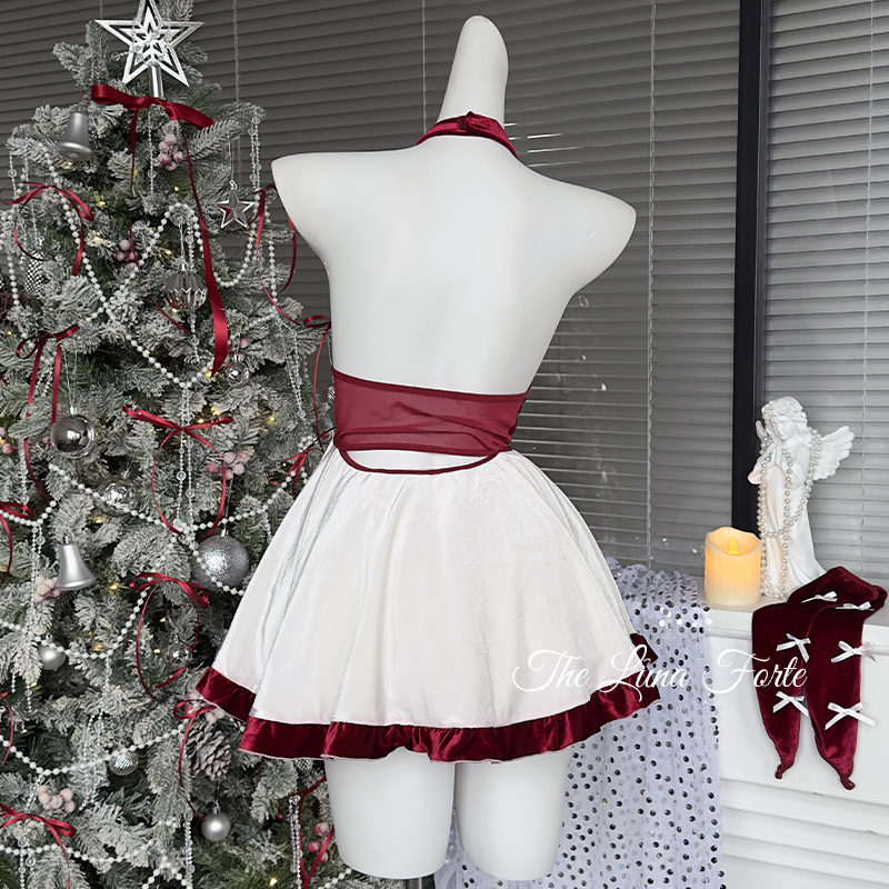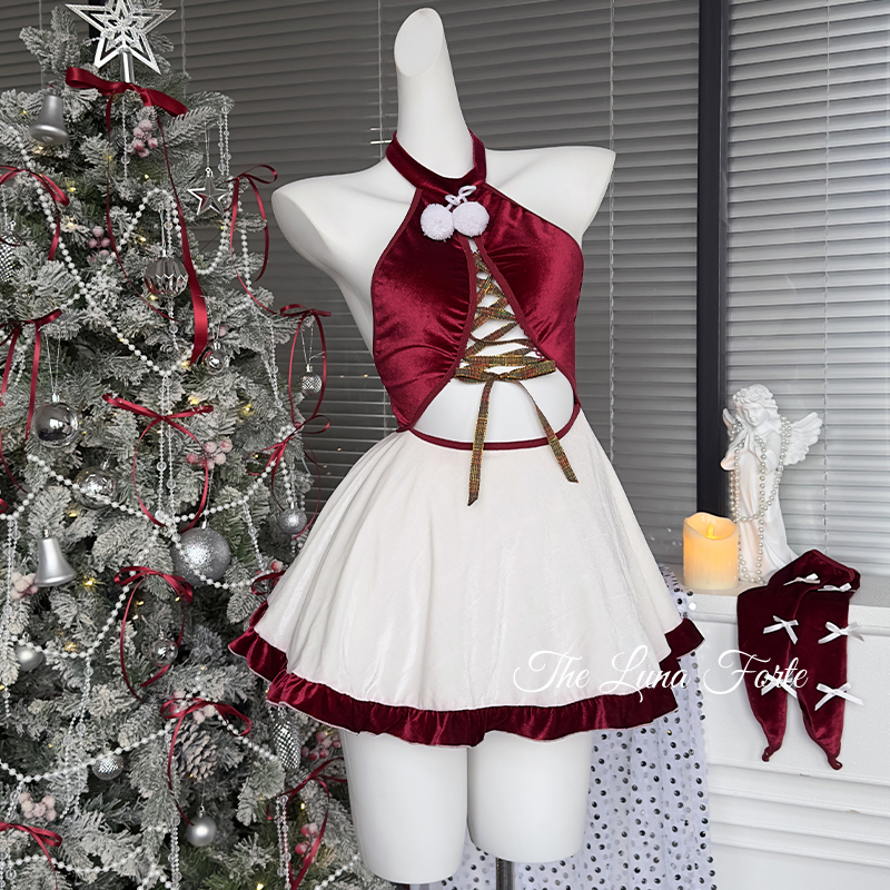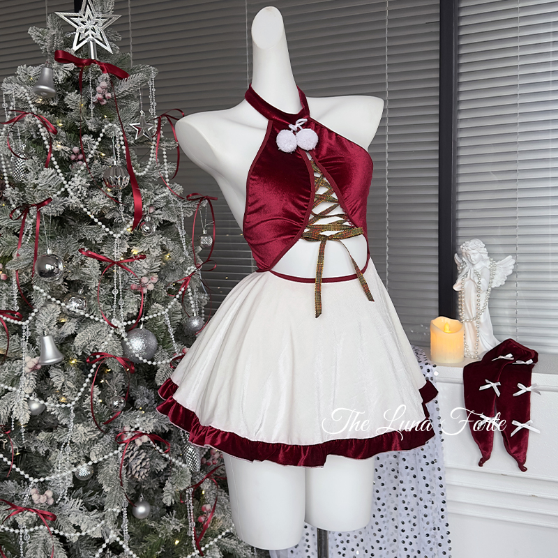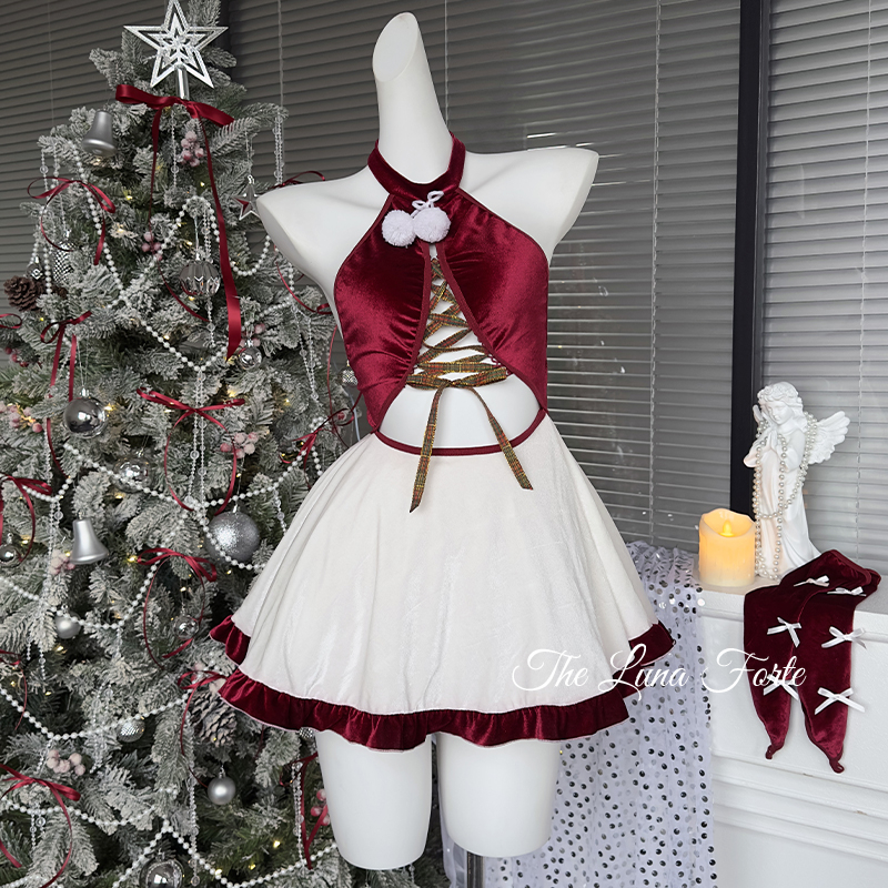 Christmas Red Velvet Neck Hanging Dress