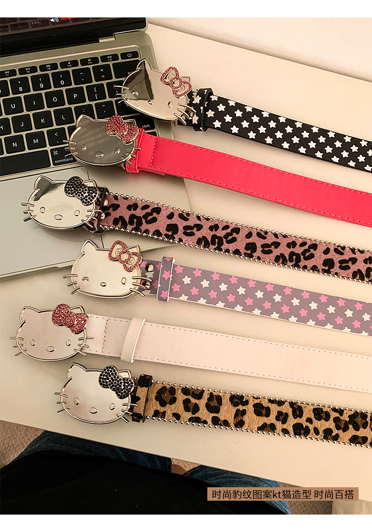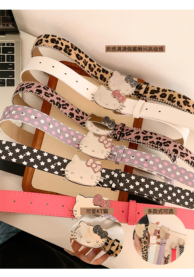Cute Hello Kitty Decorative Leopard Pattern Belt