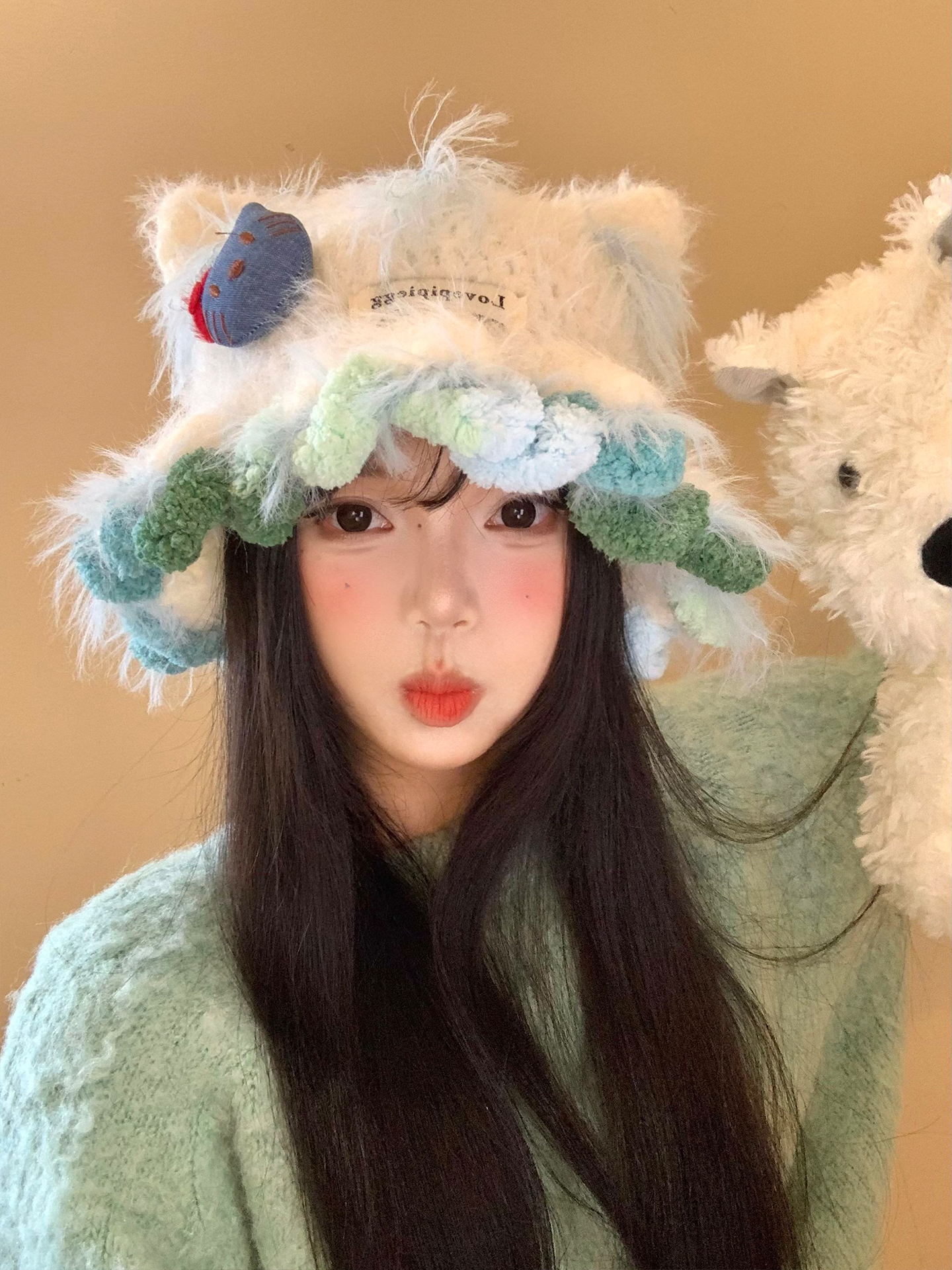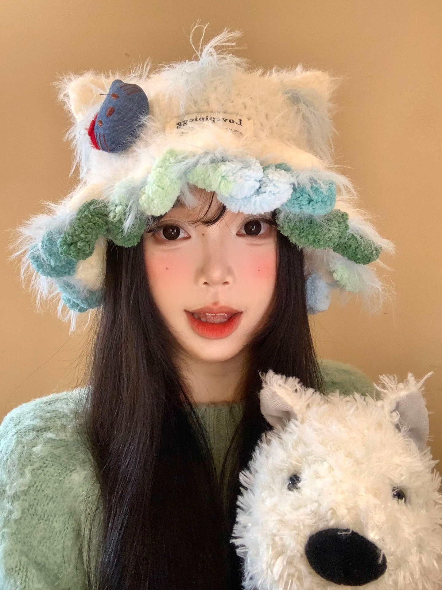 Cute Kitty Cat's ears (Steamed cat-ear shaped bread) Plush Knitted Hat