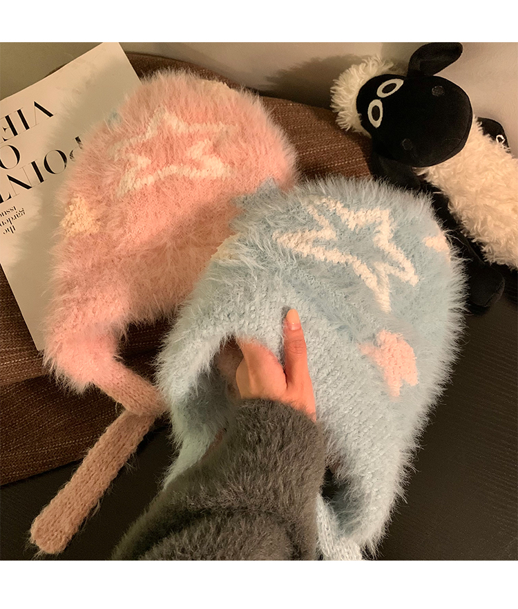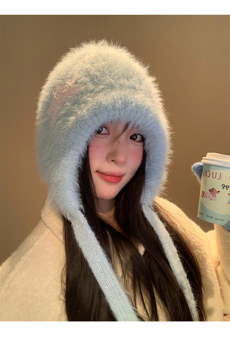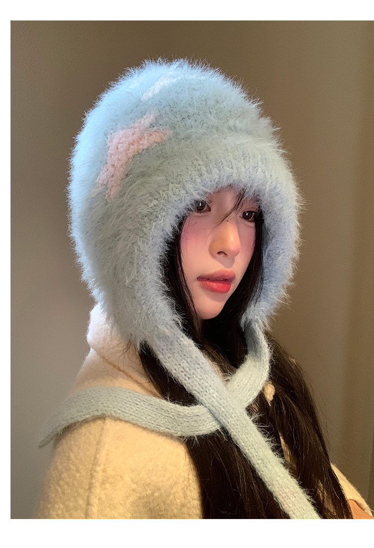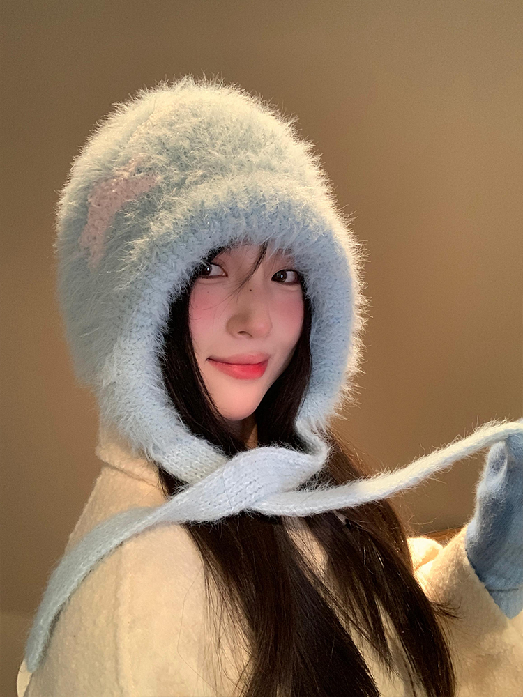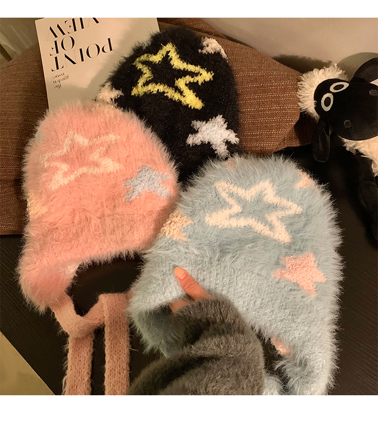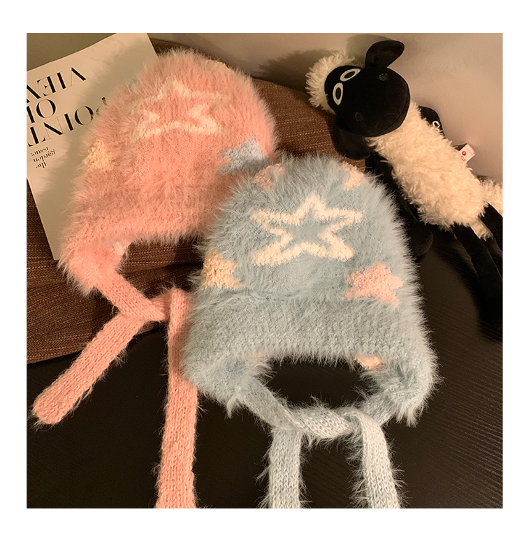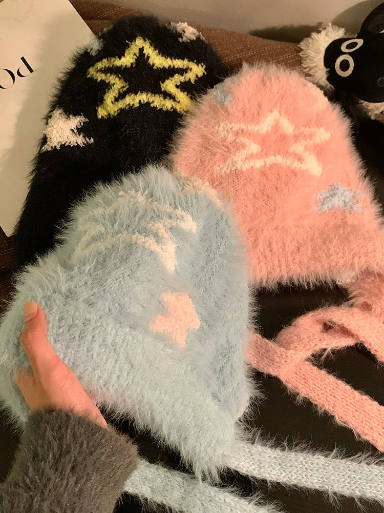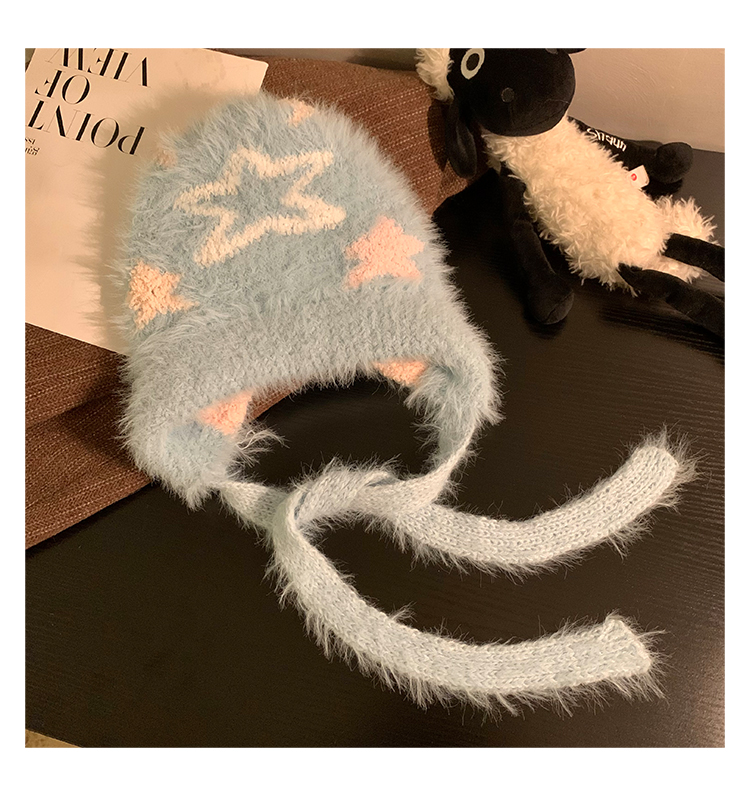 Cute Star Blue Knitted Plush Hat