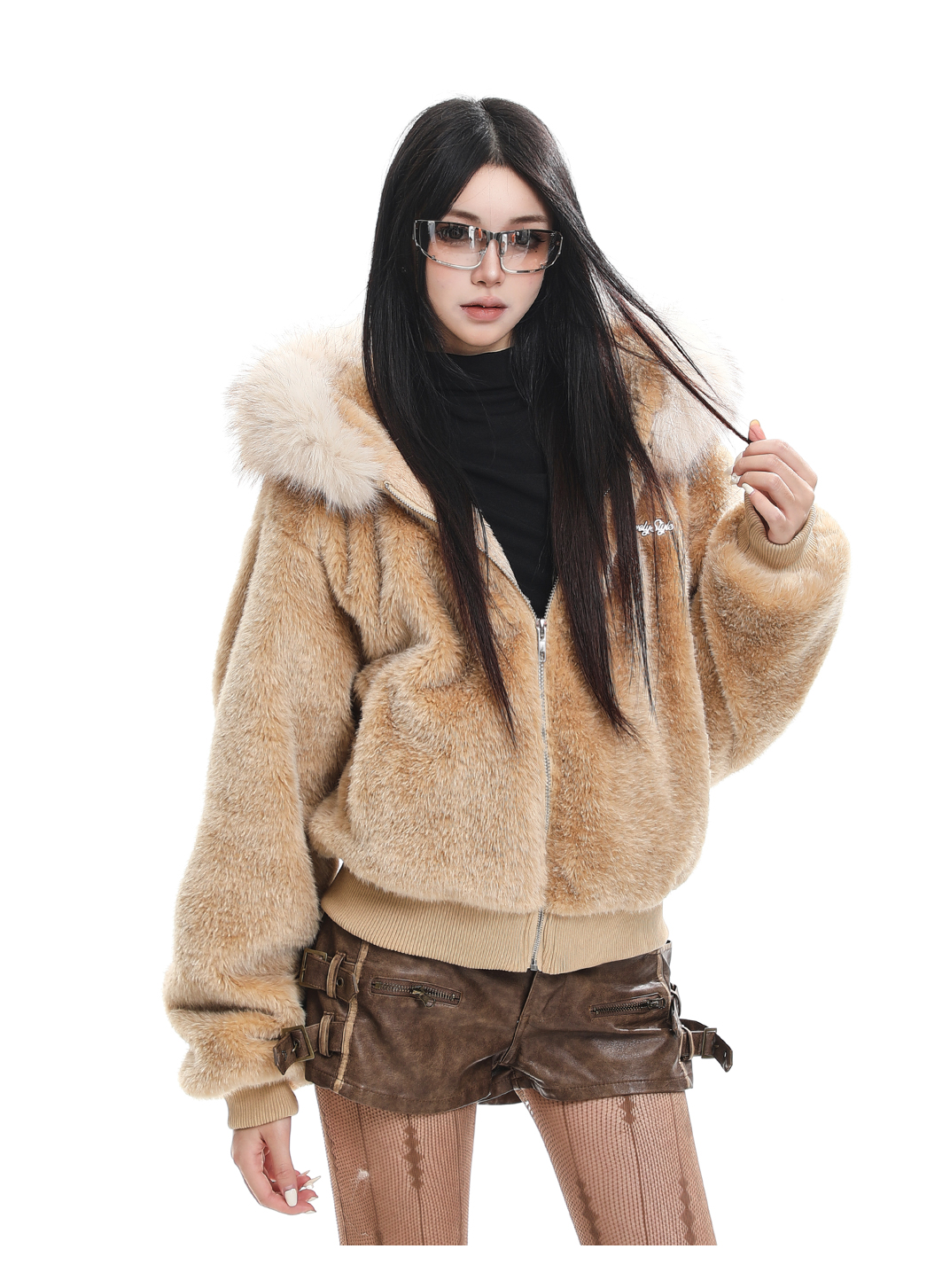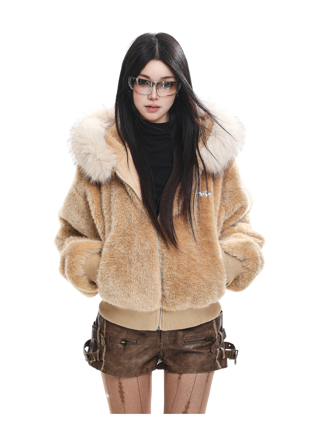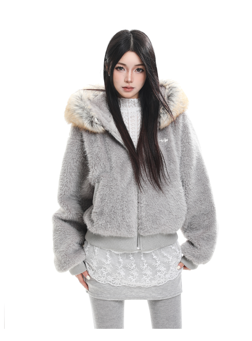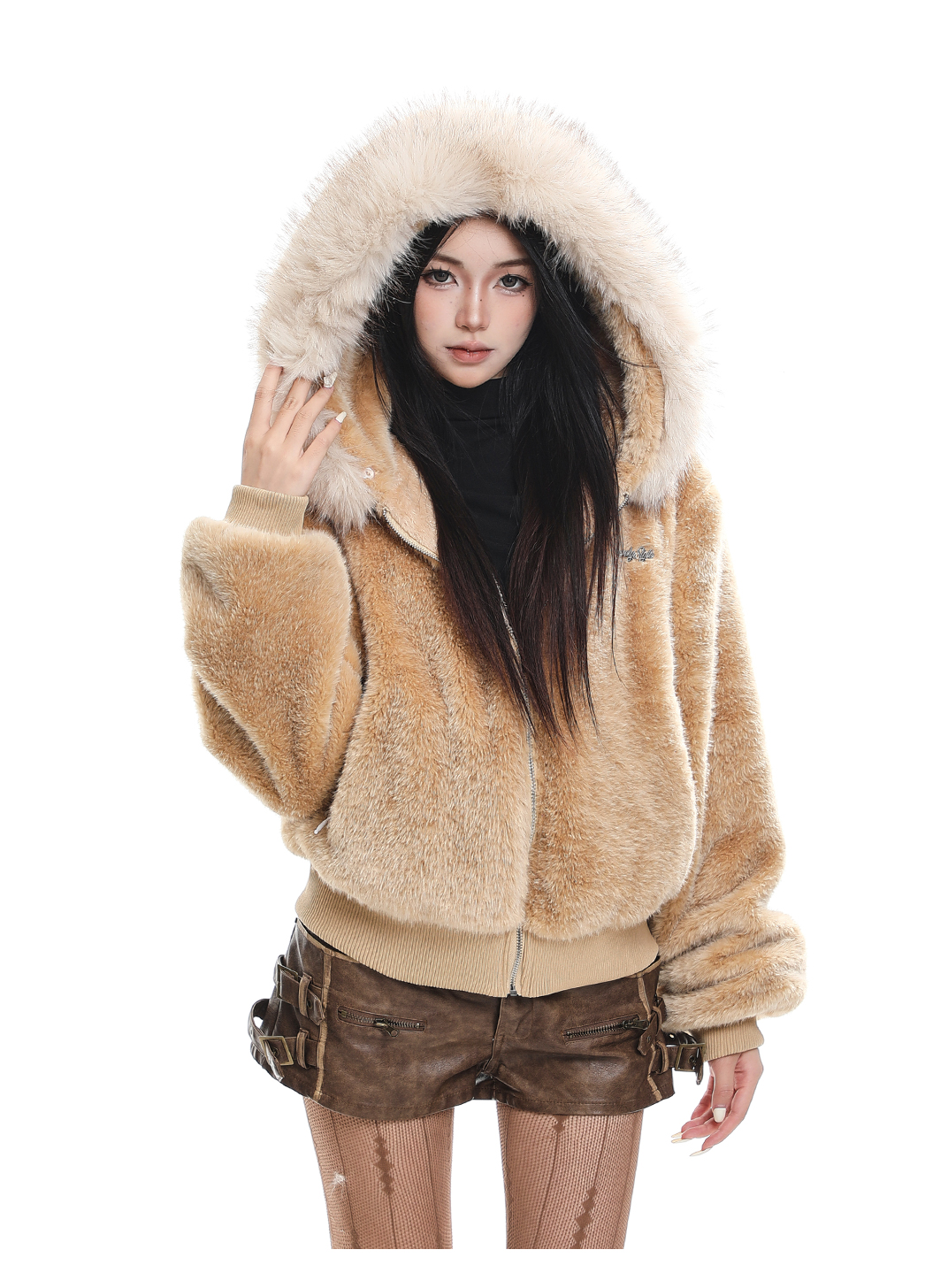 Detachable fur collar hooded cotton jacket