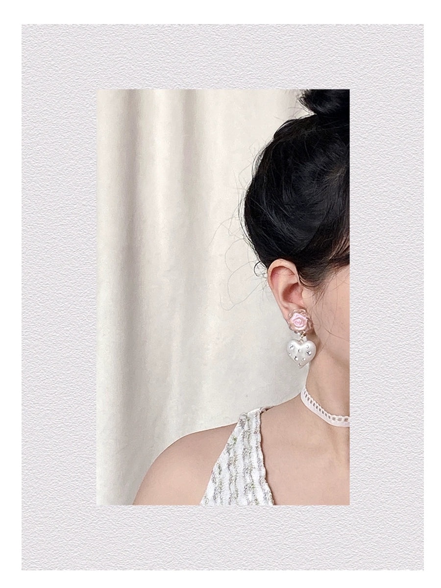 Diamond elf chubby diamond studded heart-shaped girl earrings from the rose class of Diamond Kindergarten