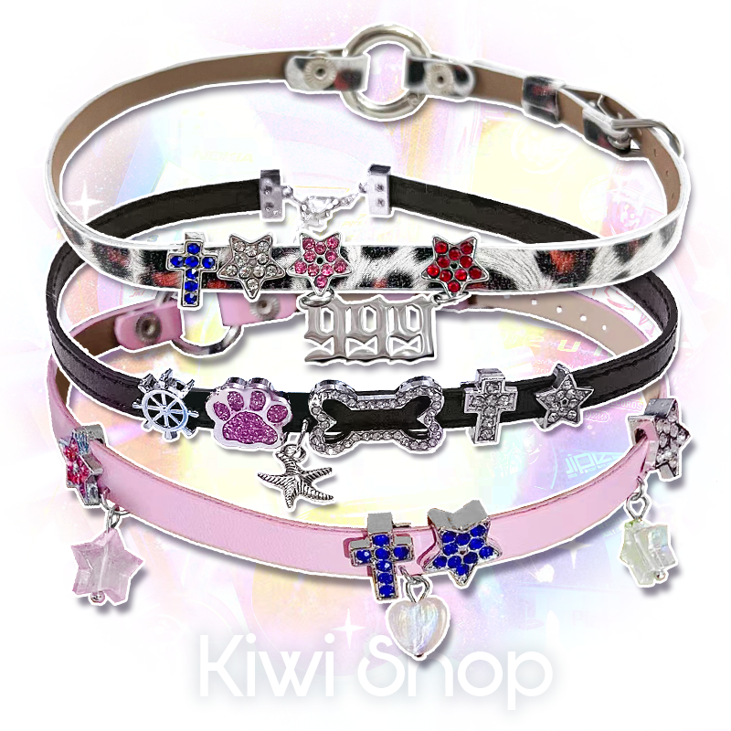 Dopamine colored leather choker necklace