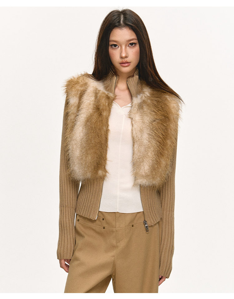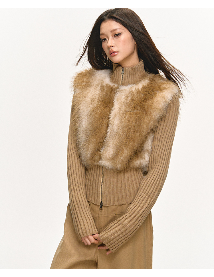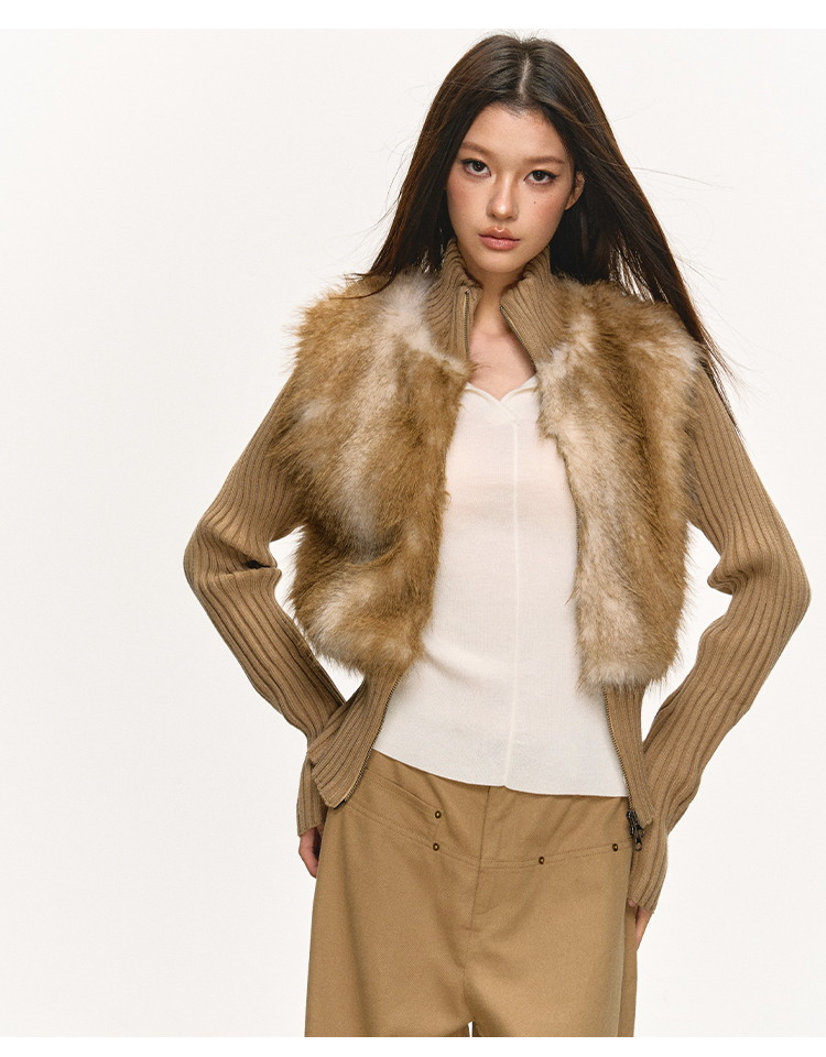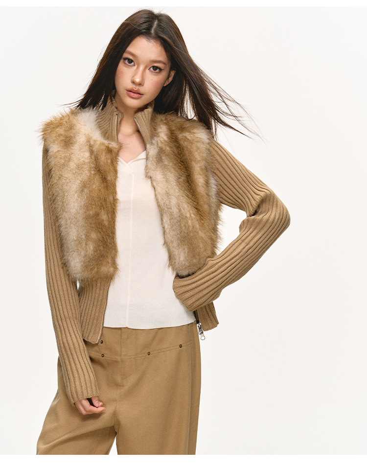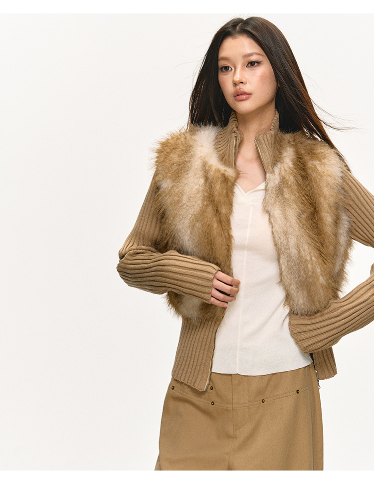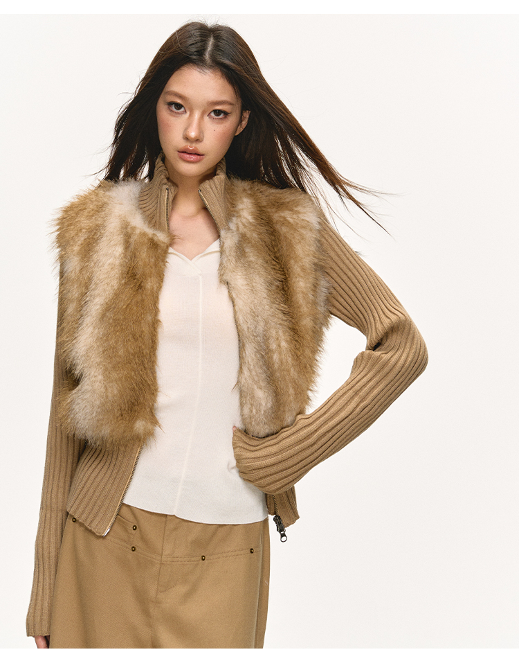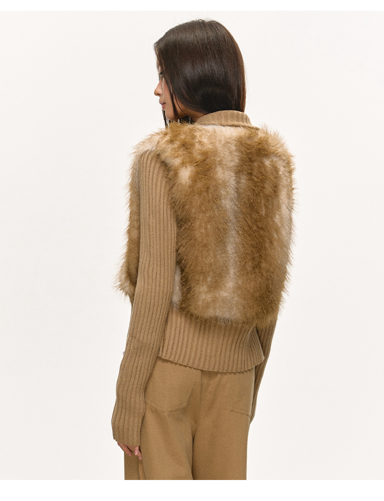 faux fur knitted spliced jacket