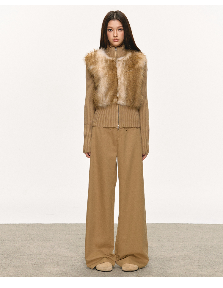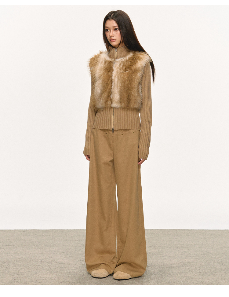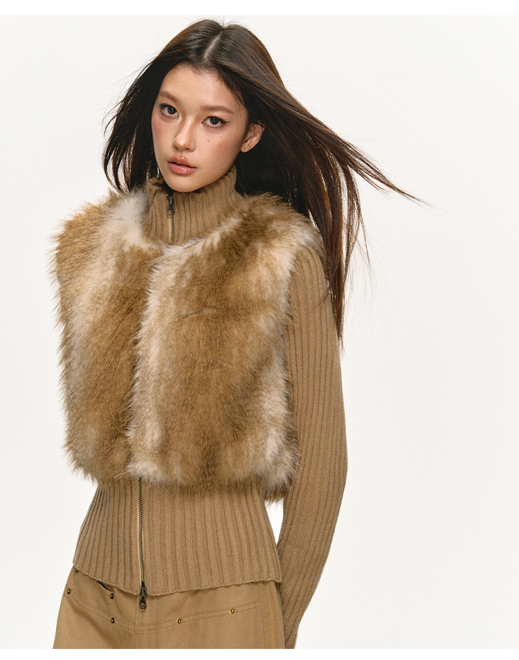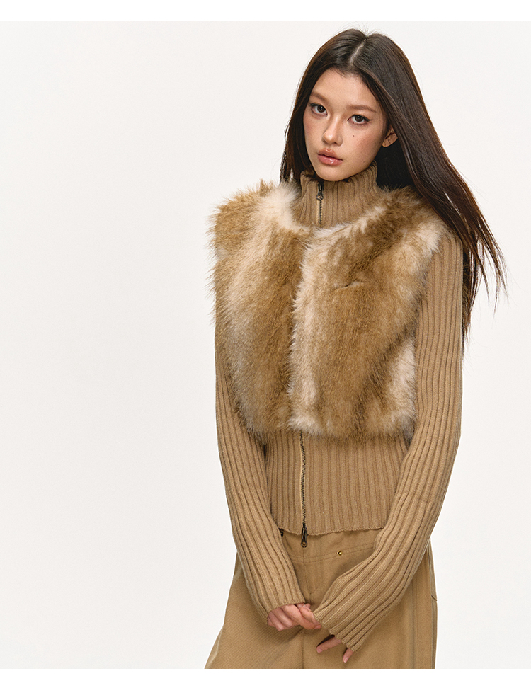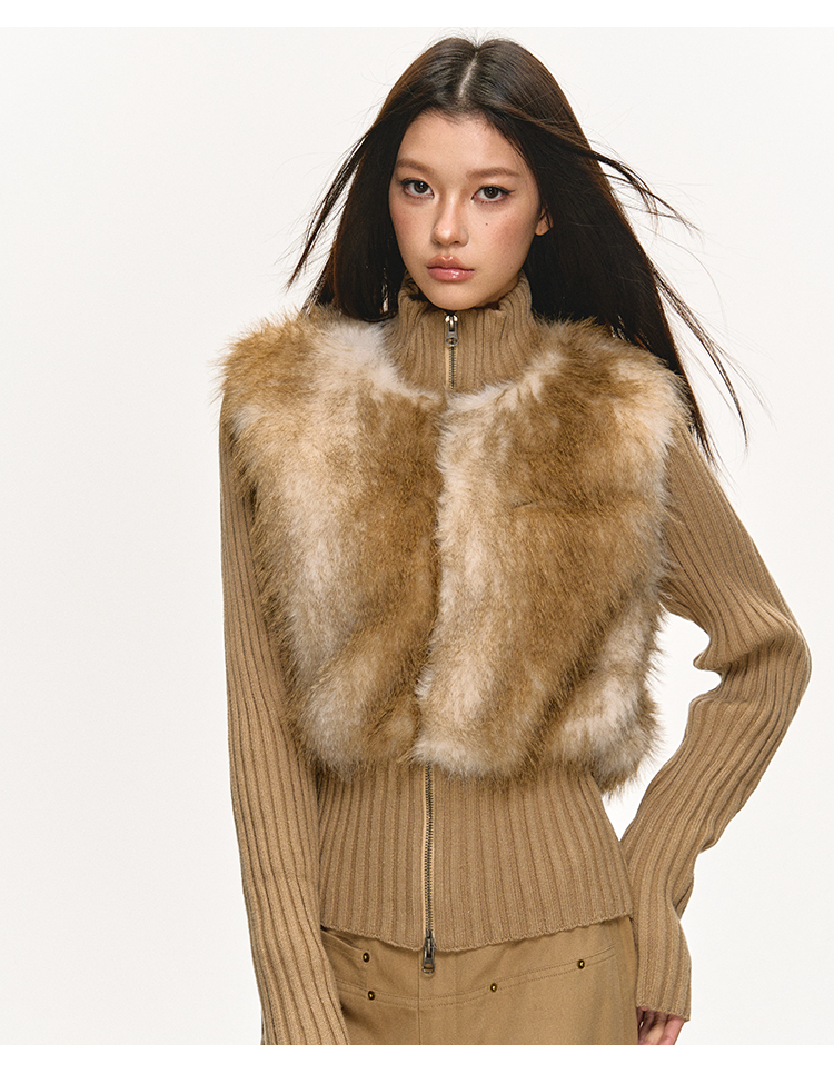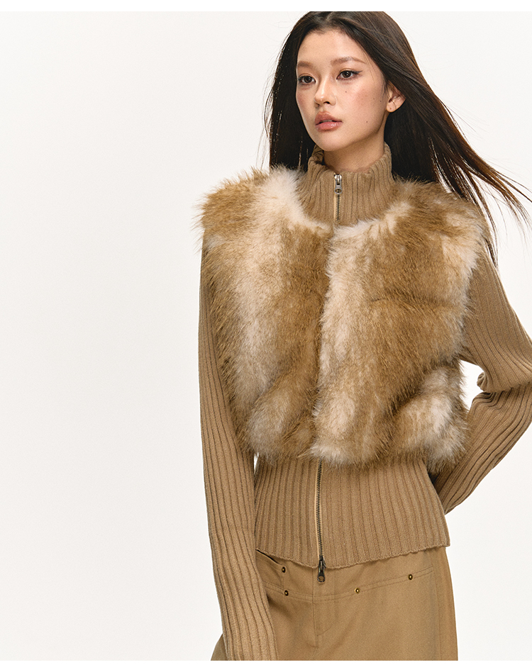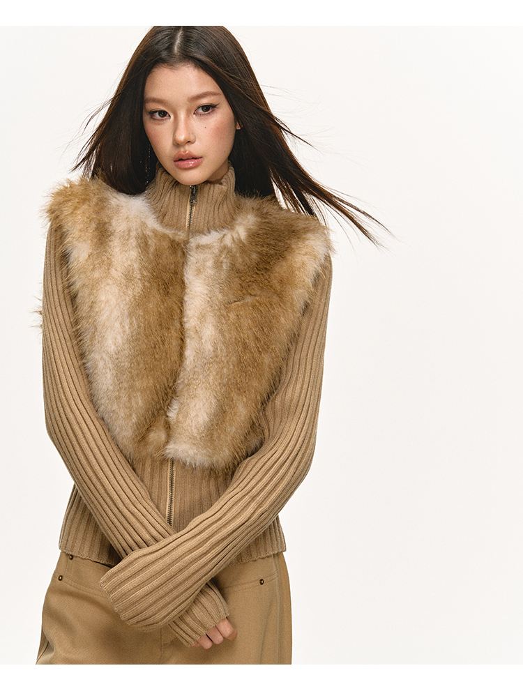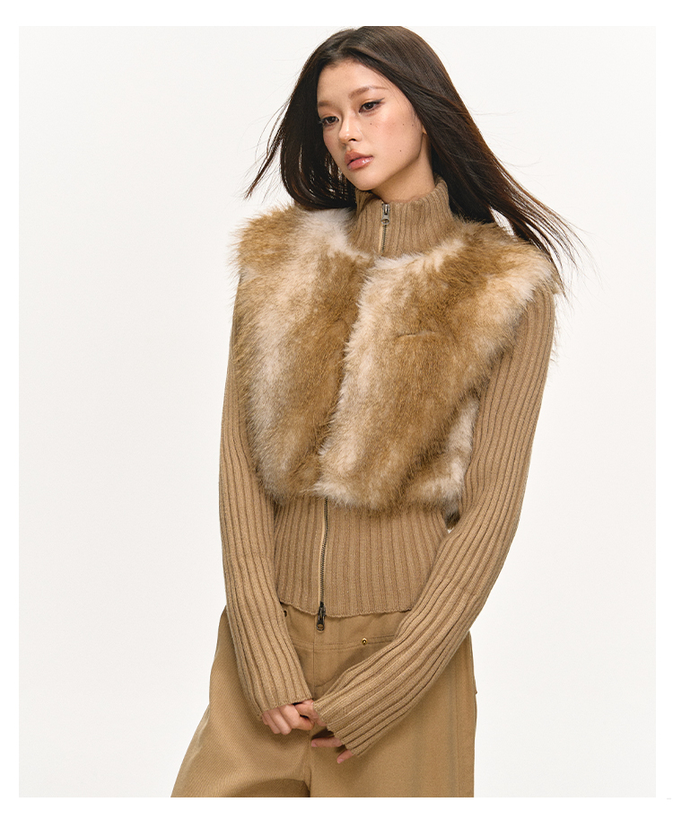 faux fur knitted spliced jacket
