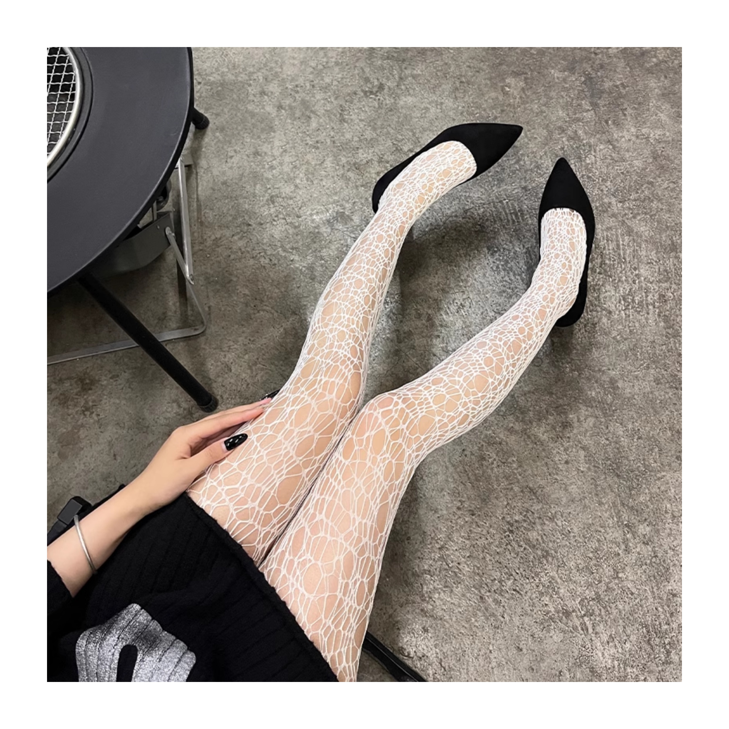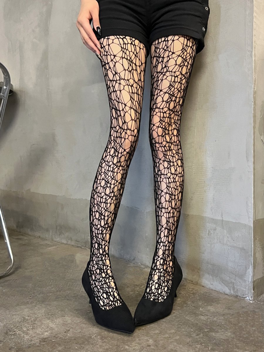 Fishing net socks for women, irregular woven hollow pantyhose