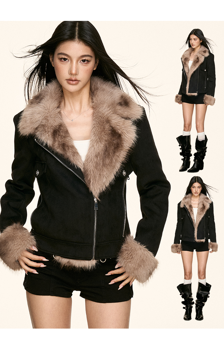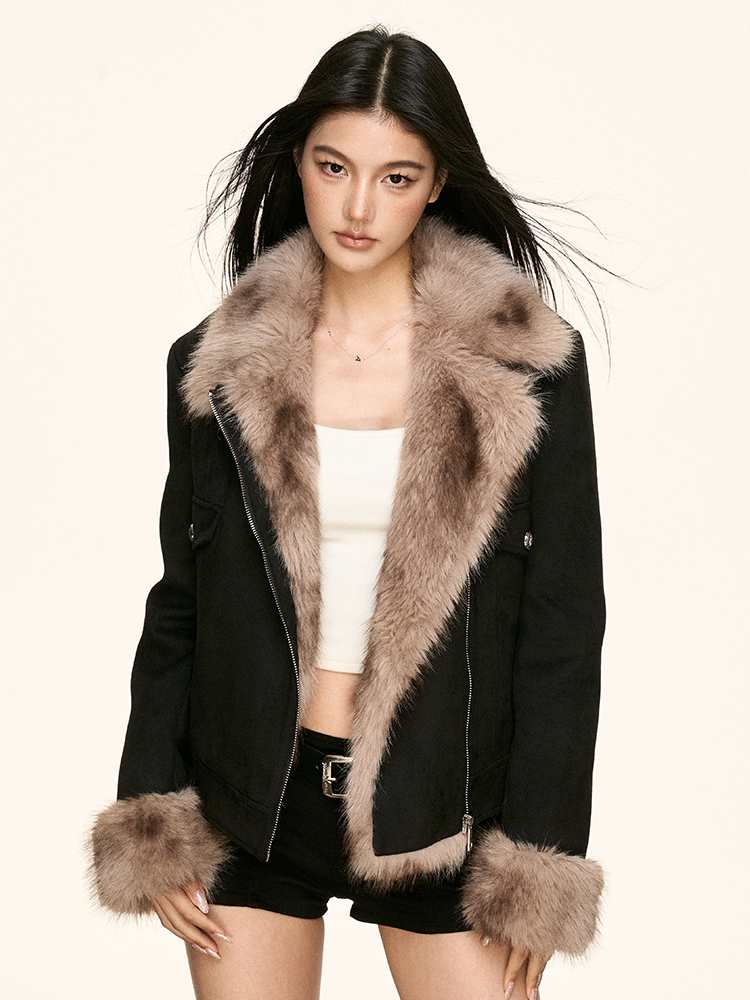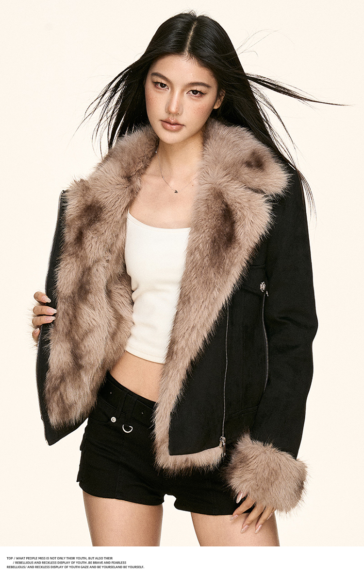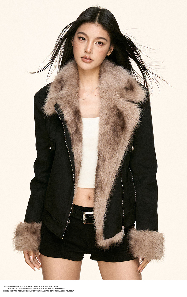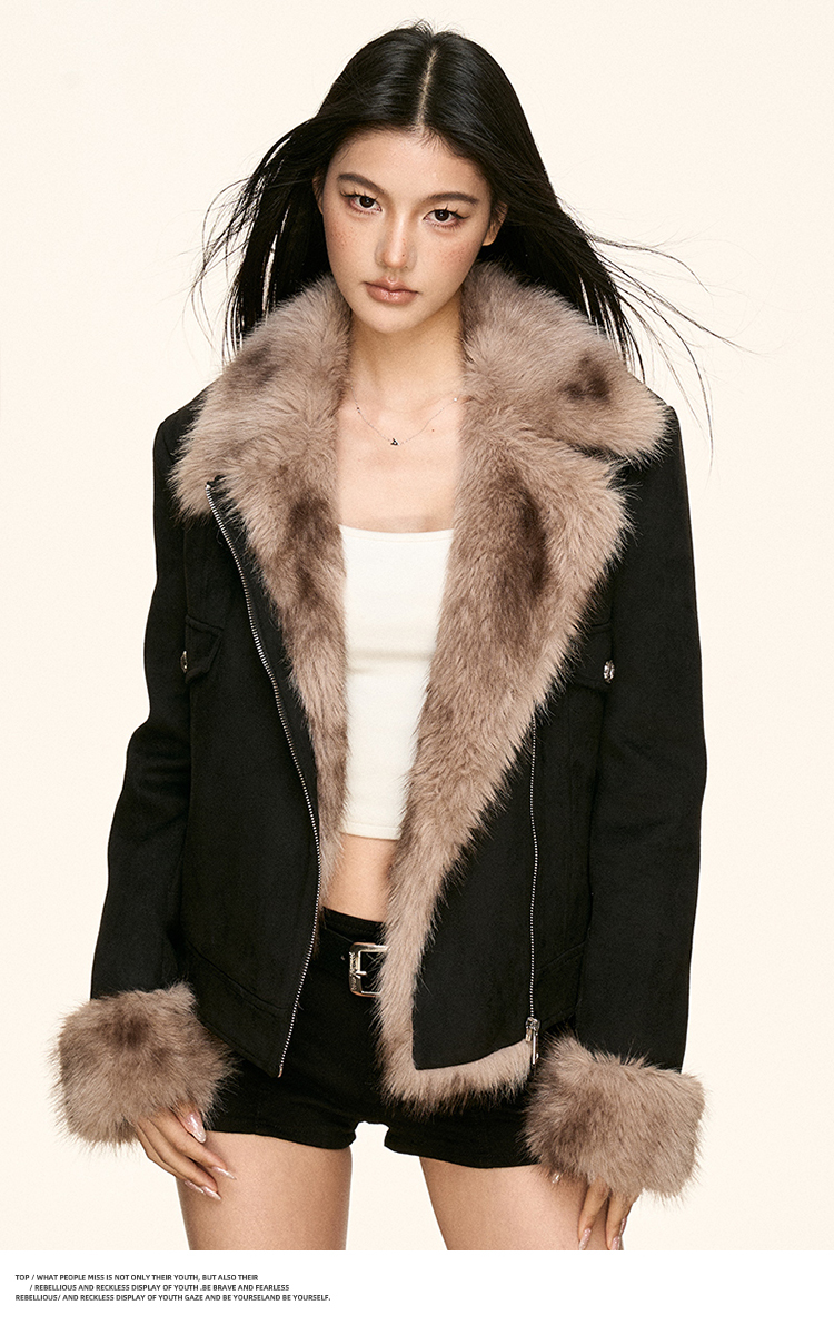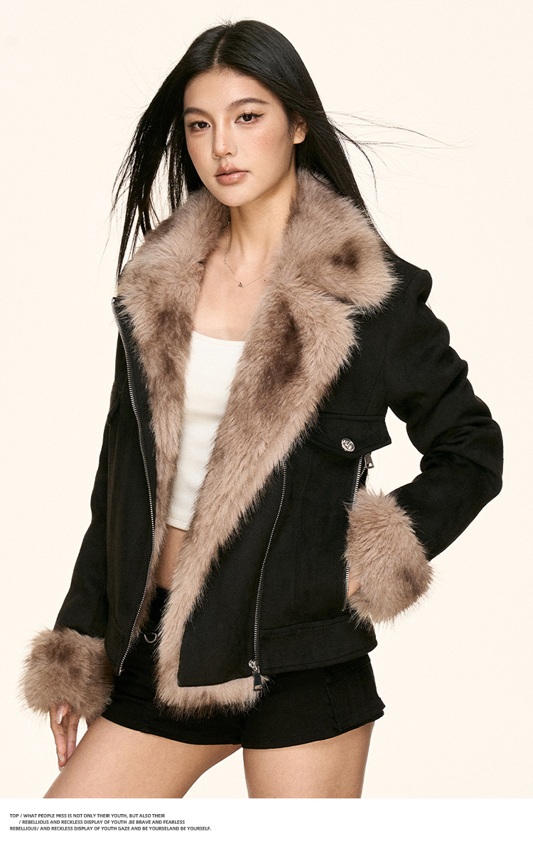 faux fur plush collar jacket