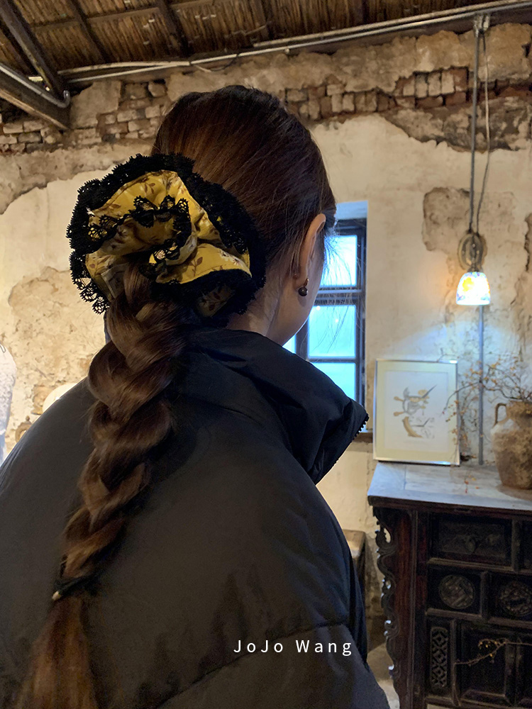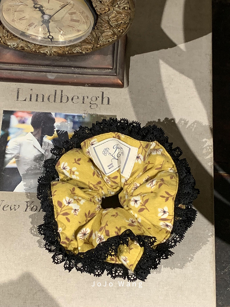 Ginger yellow small floral scrunchie
