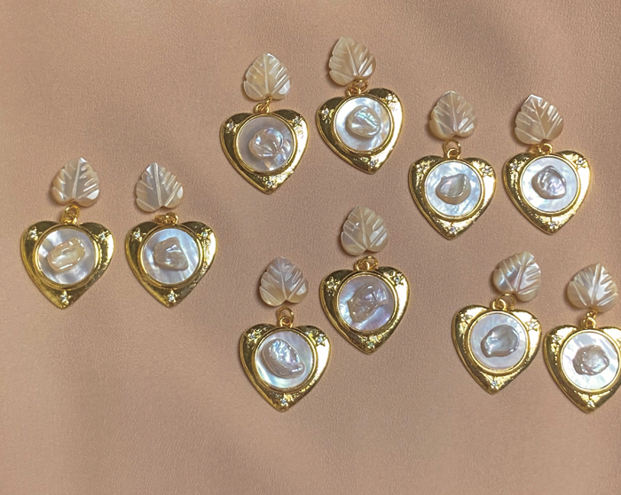 • The baroque freshwater pearls on the heart mirror vary in shape and size. I personally pair and position each one, so no two pieces are identical (refer to the last image for reference).
