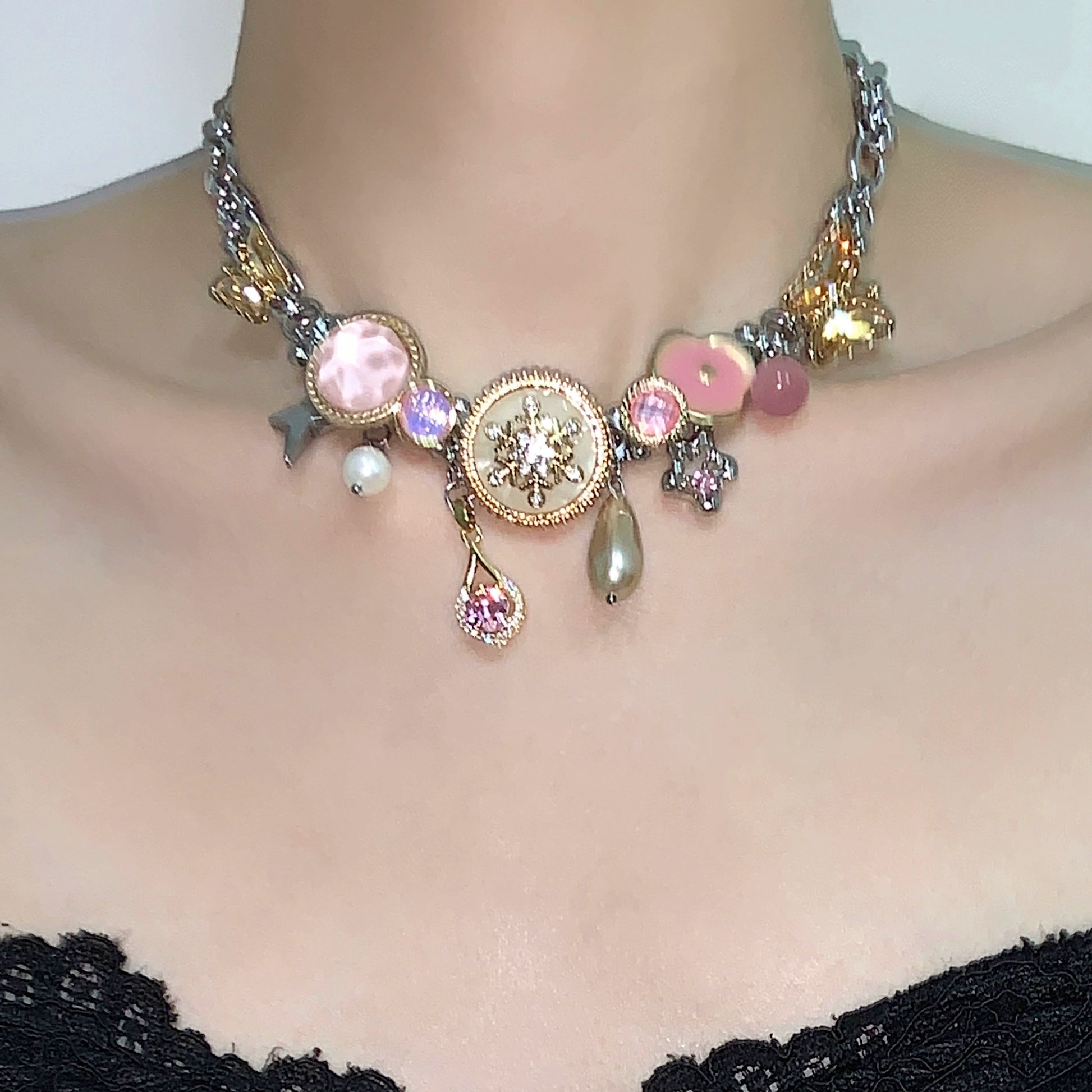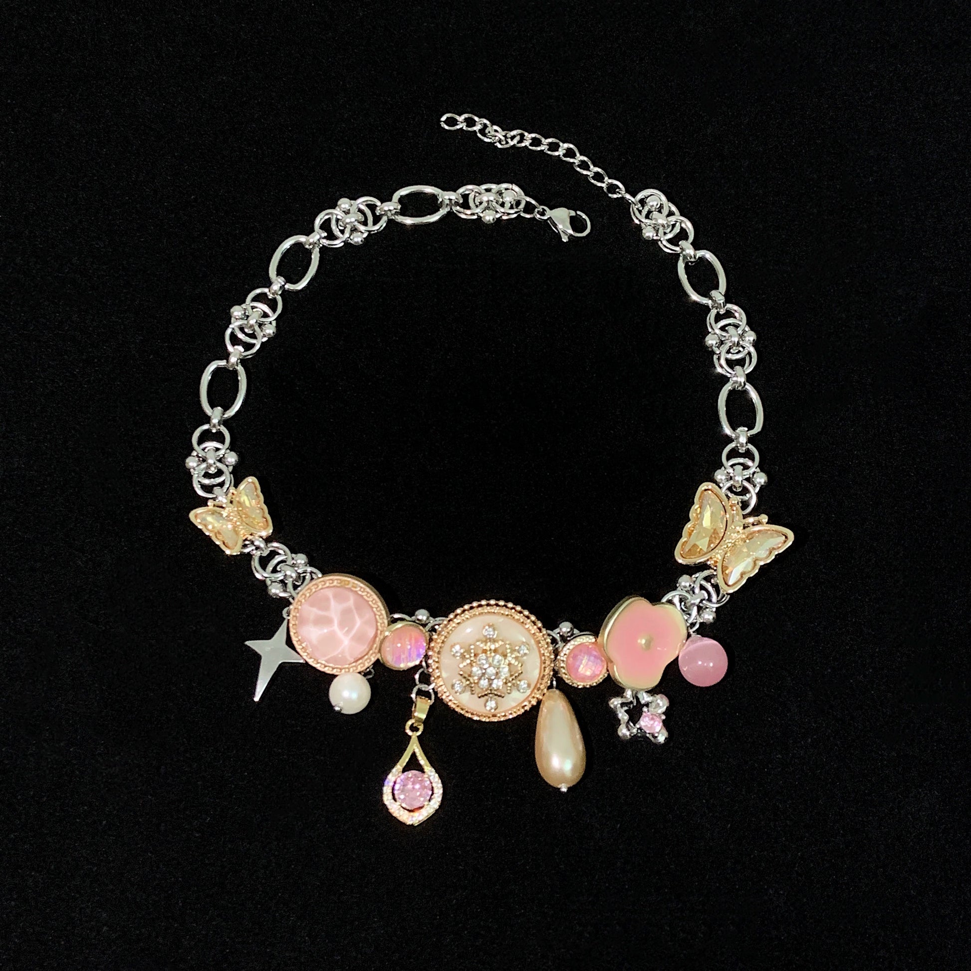 Golden Pink Beauty "Butterfly Button Titanium Steel Joker Bracelet Necklace