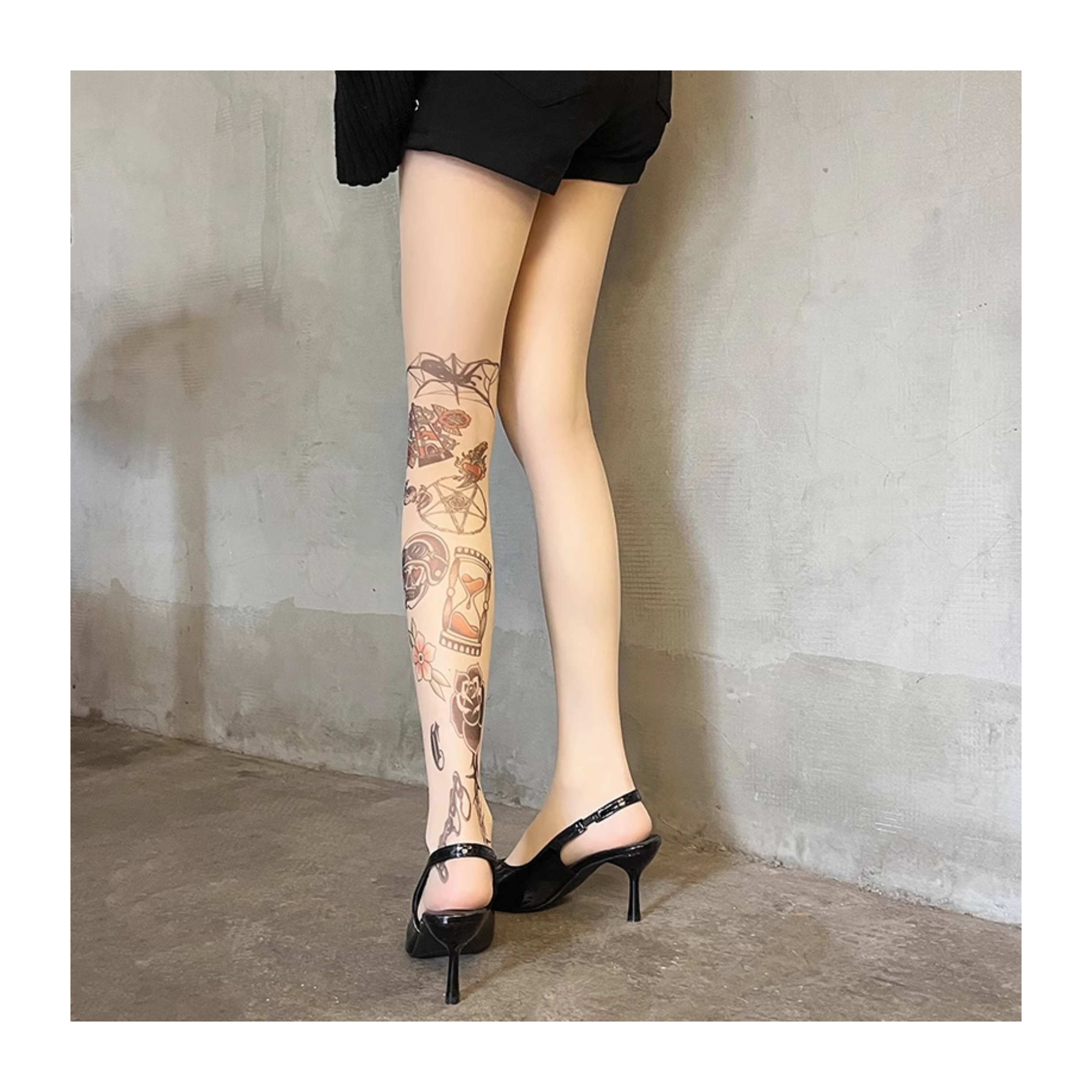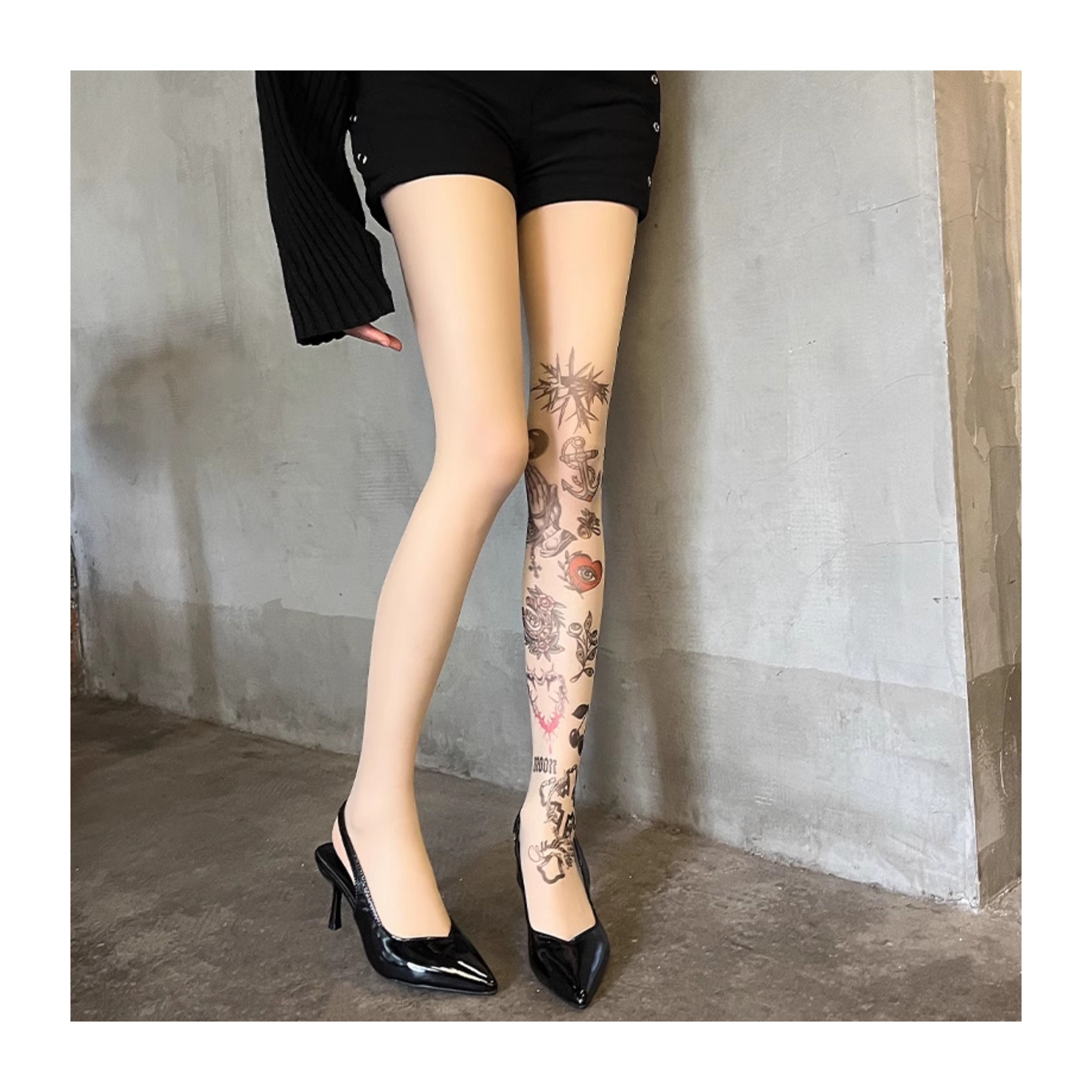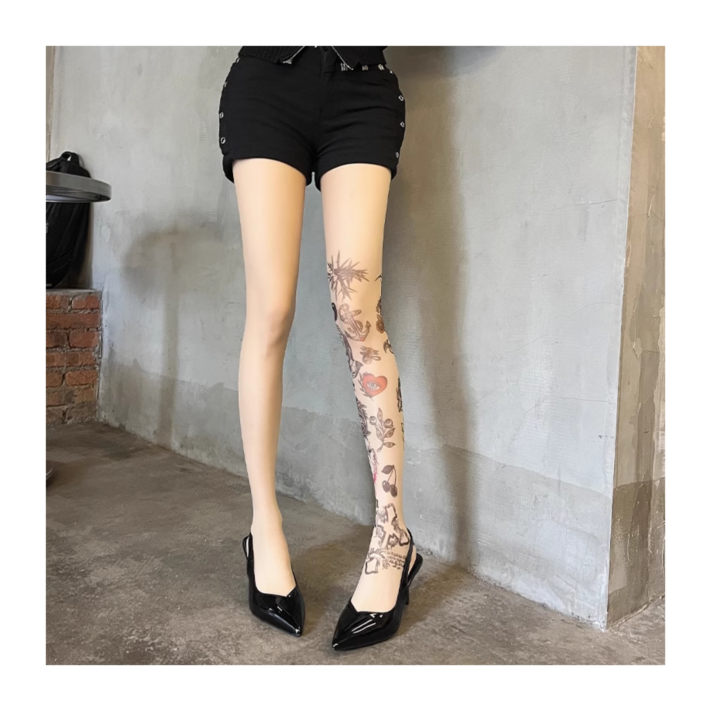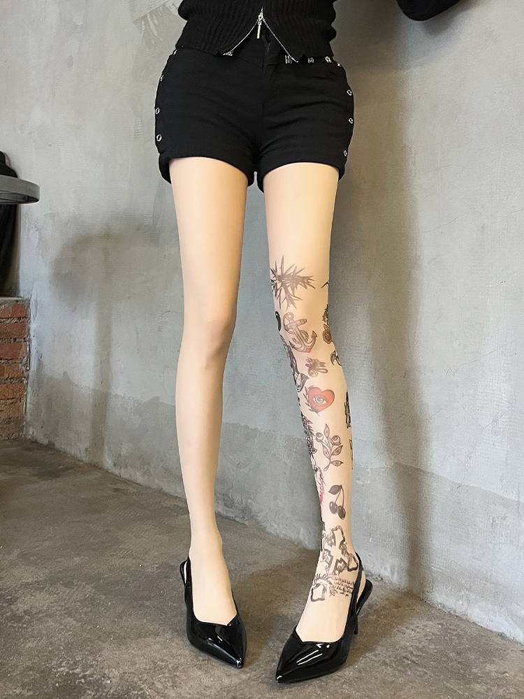 Graffiti print tattoo pantyhose