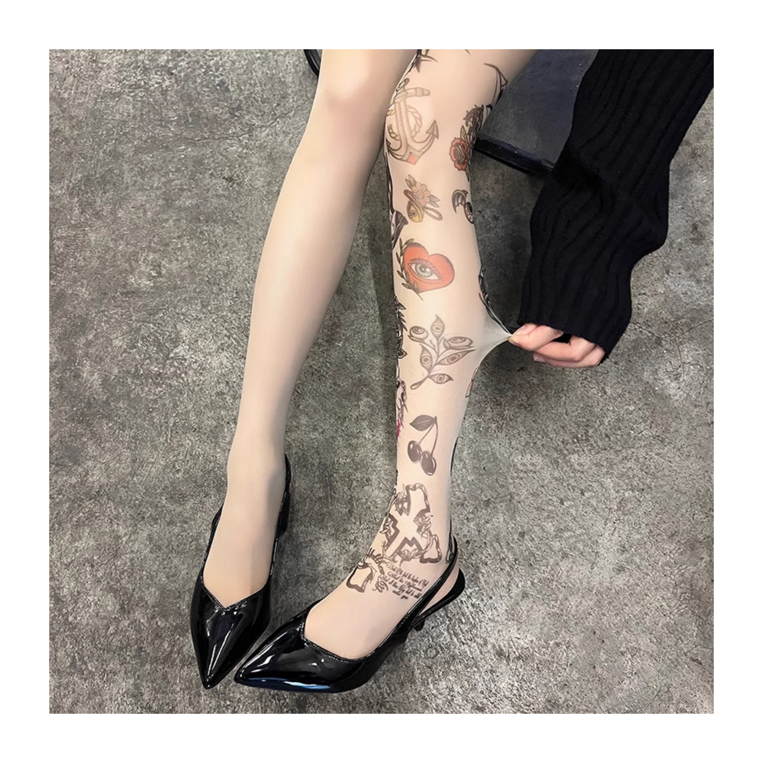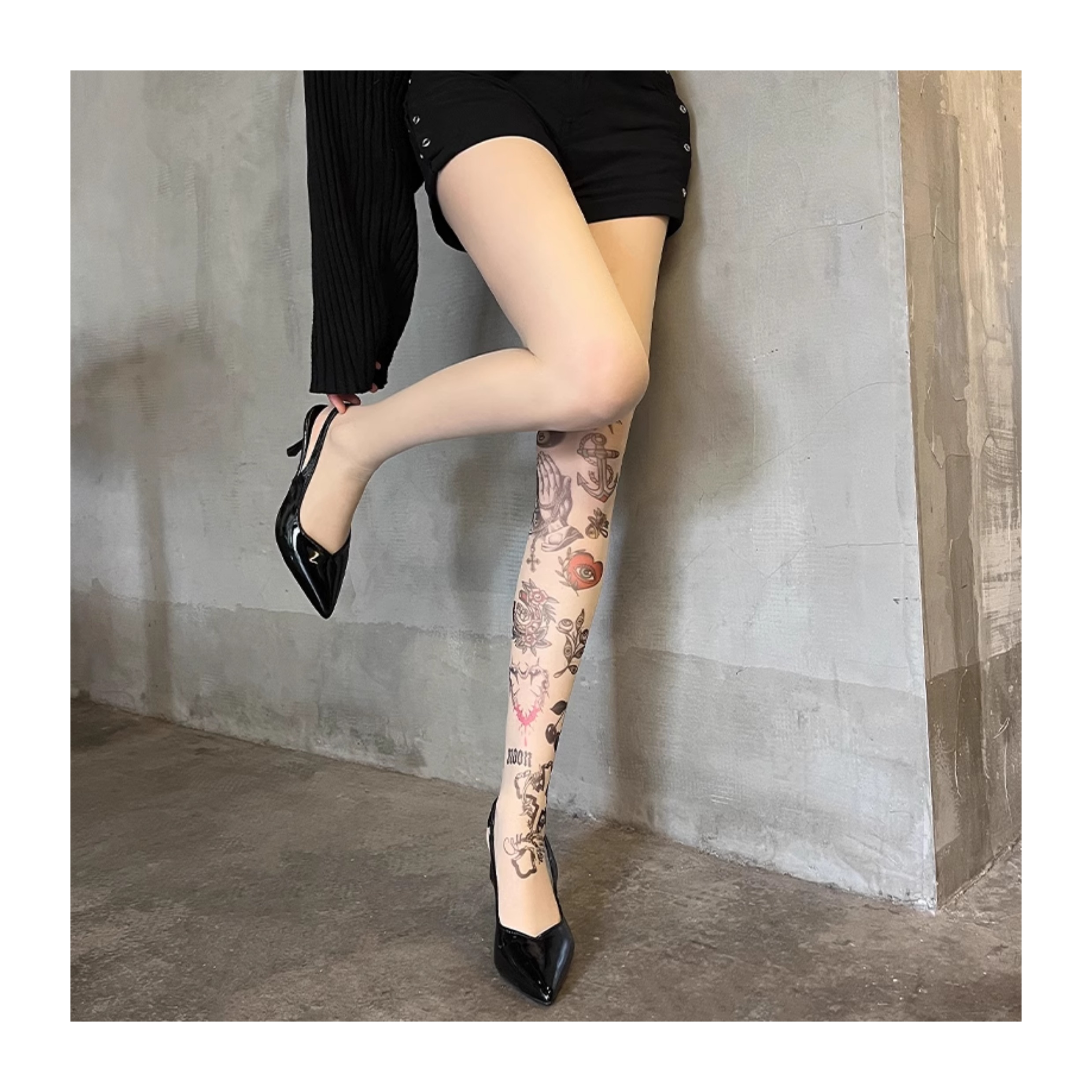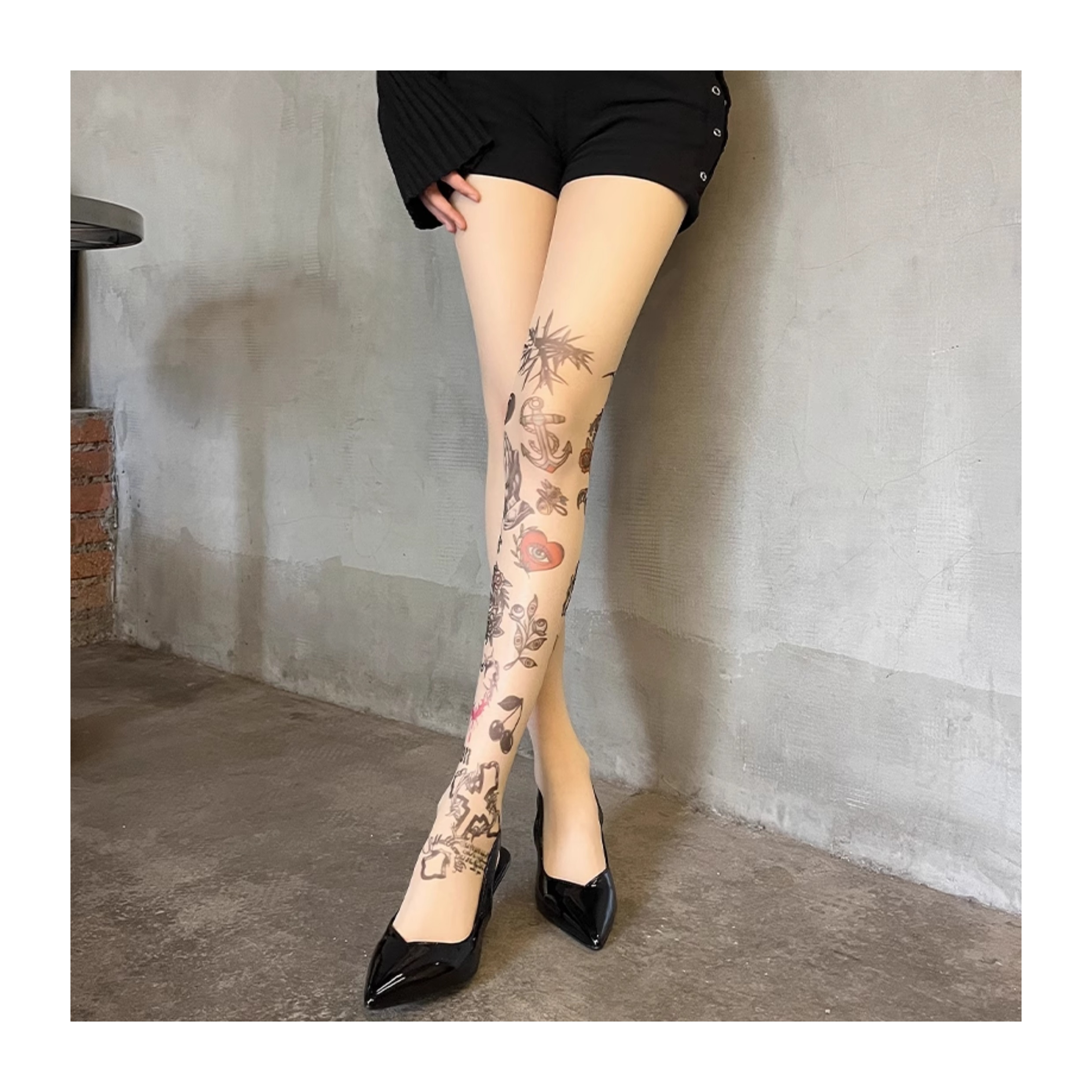 Graffiti print tattoo pantyhose