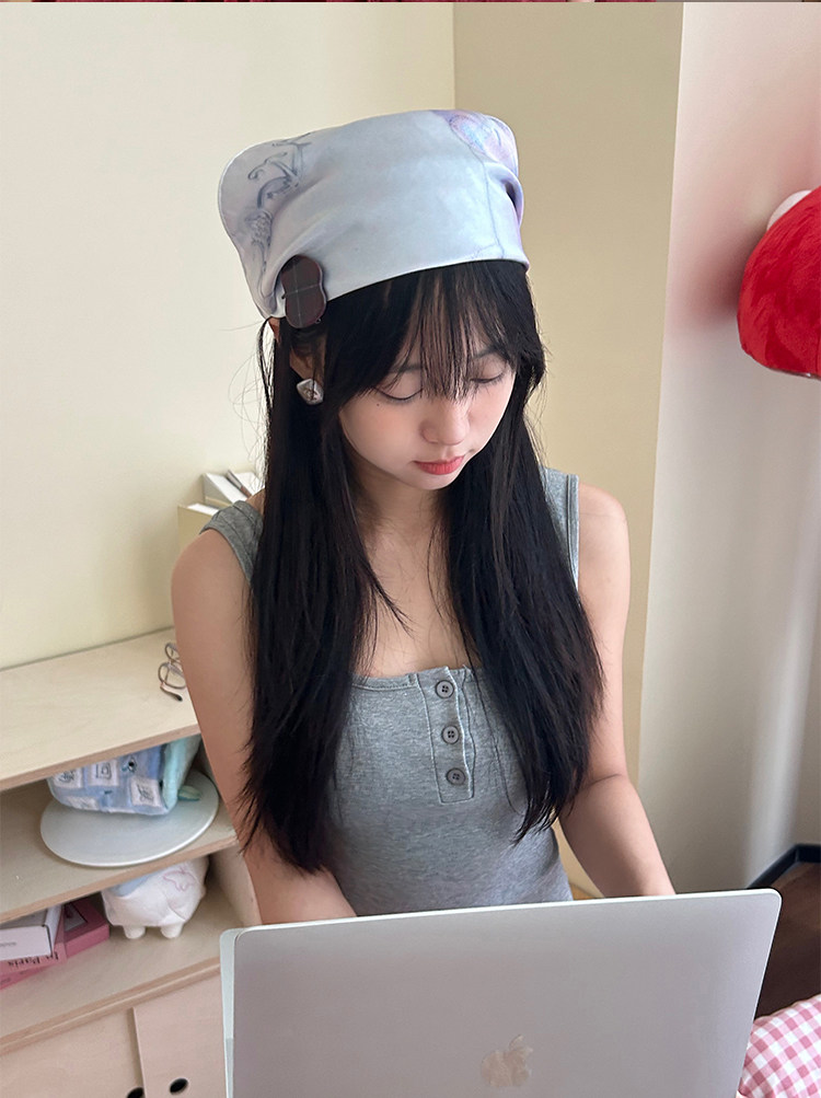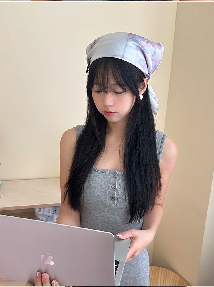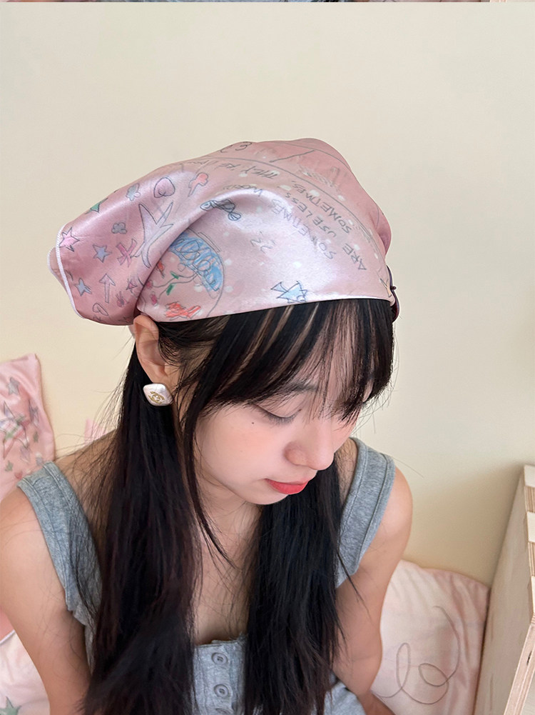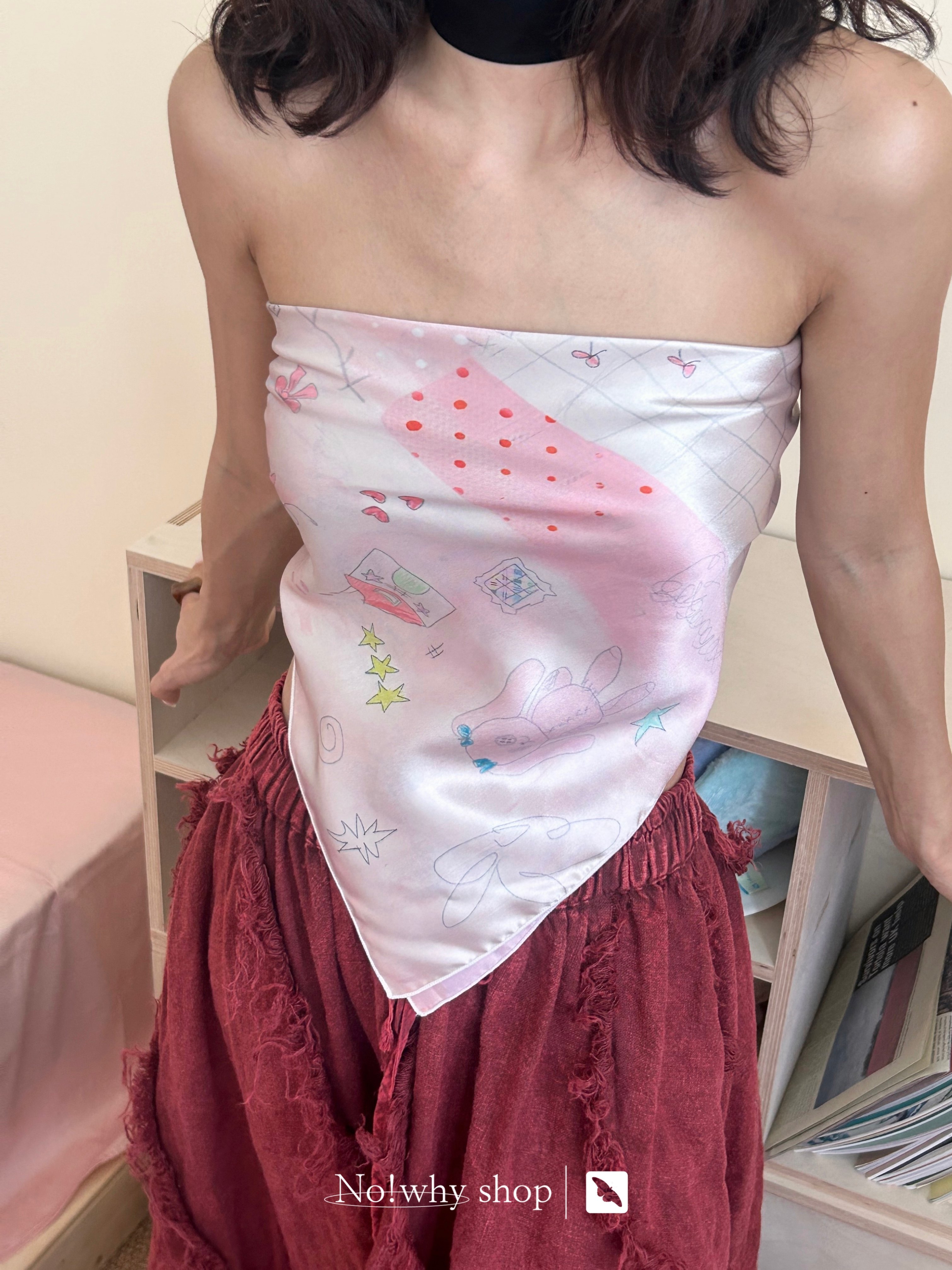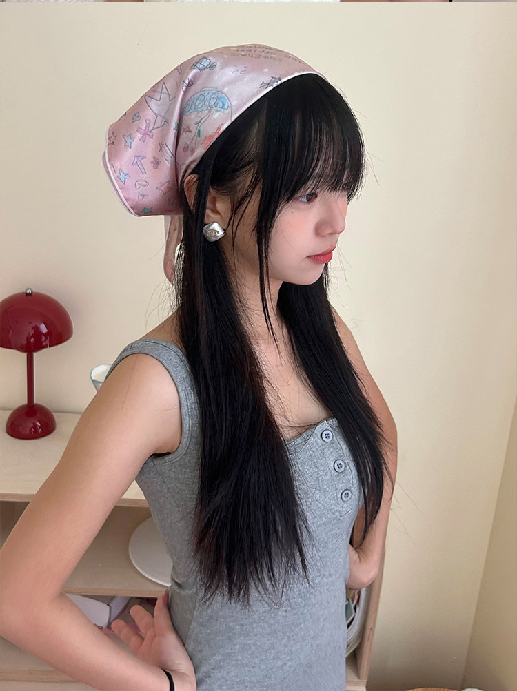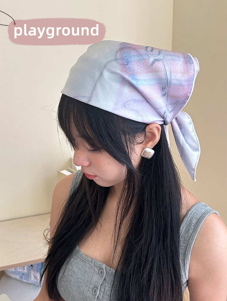 Hand-drawn illustration faux silk scarf double-sided printed bandeau bra