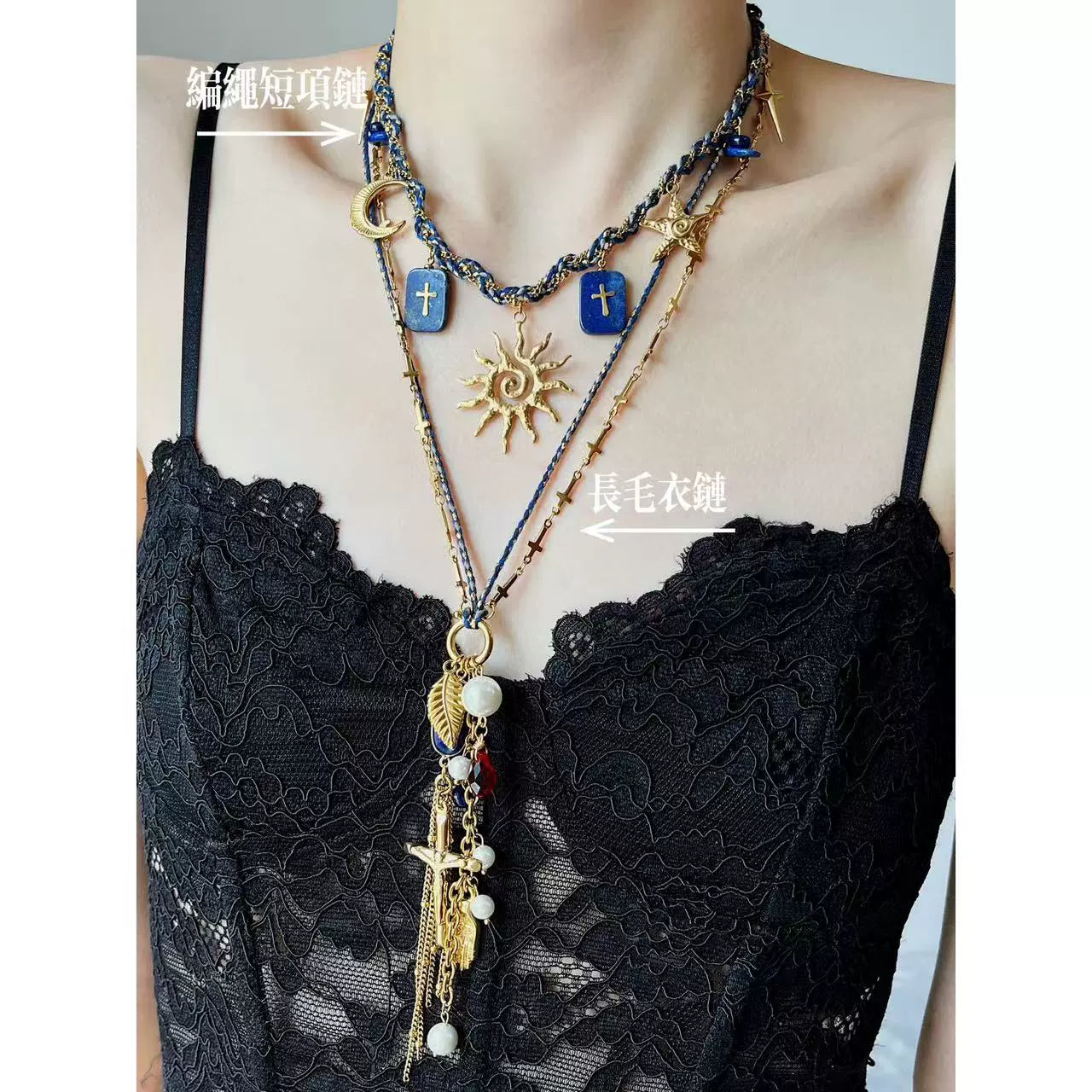 Harley hand woven sun lapis lazuli necklace