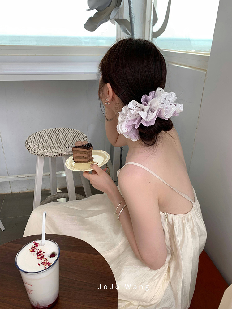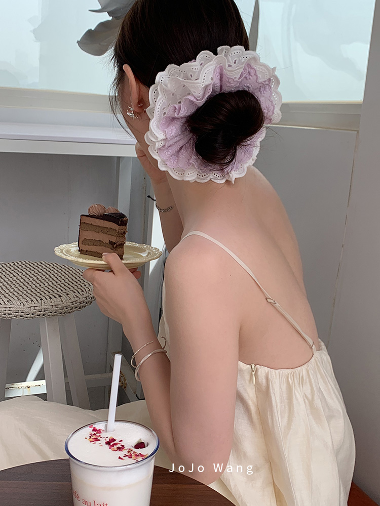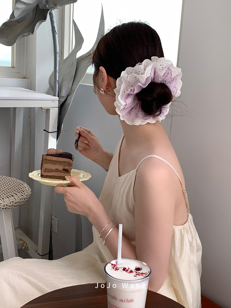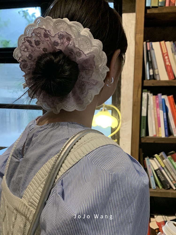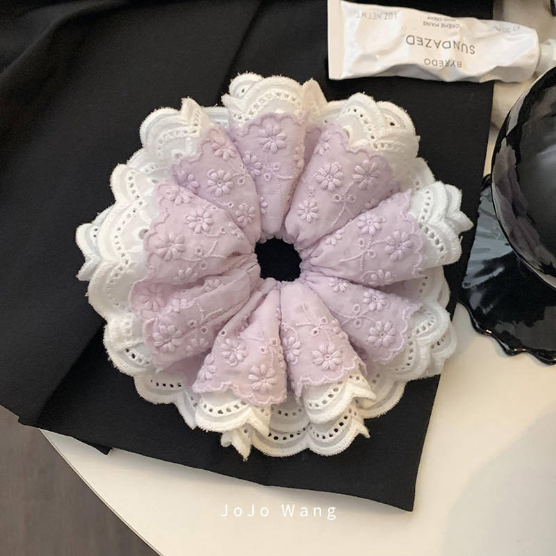 Purple~Double layer Exquisite Embroidered Lace Scrunchie