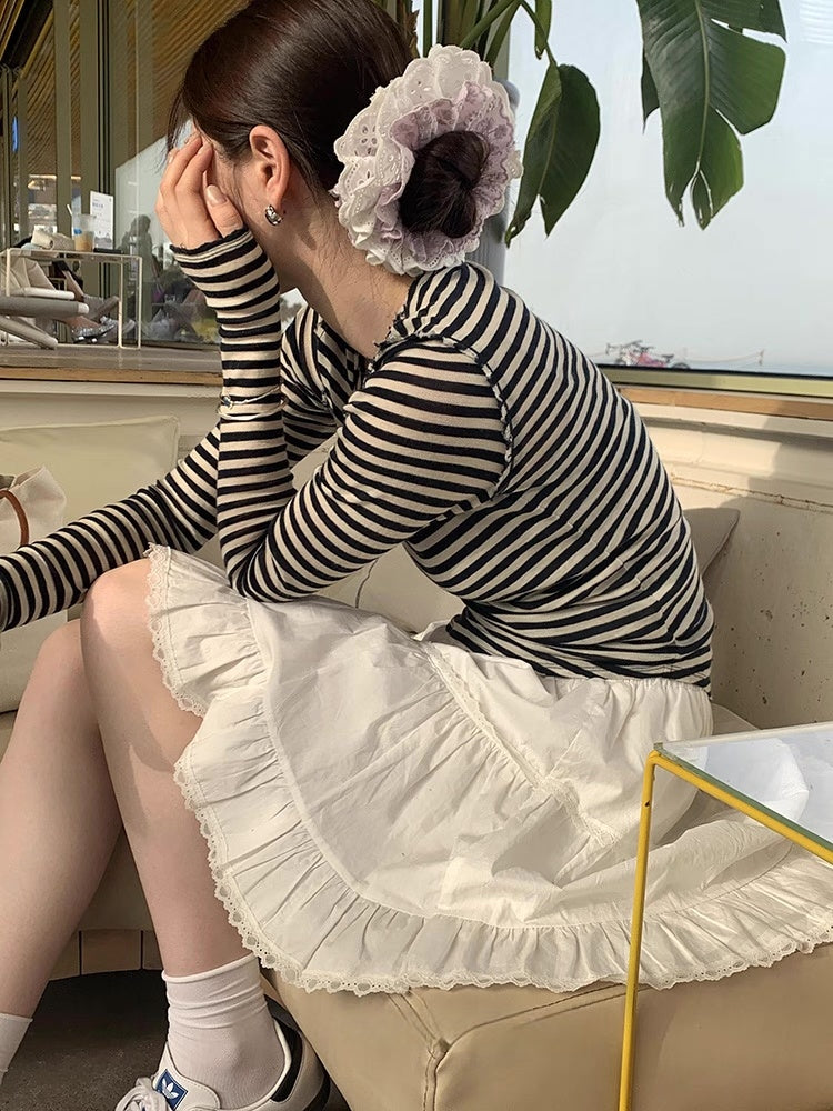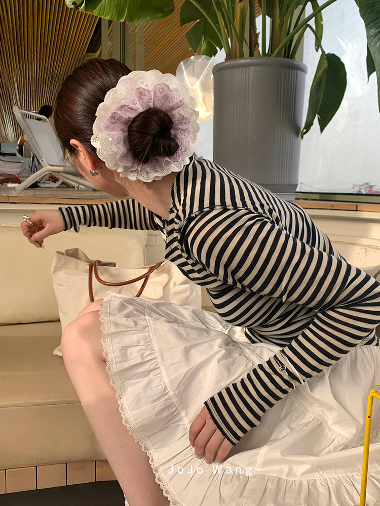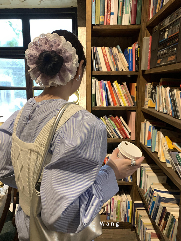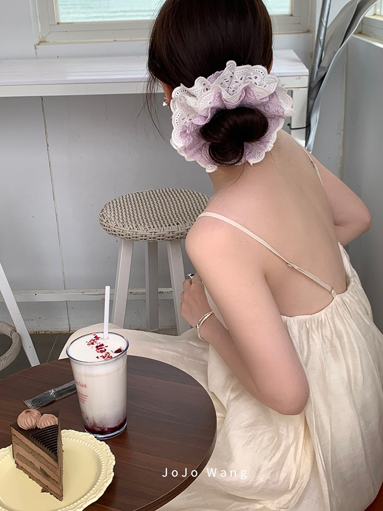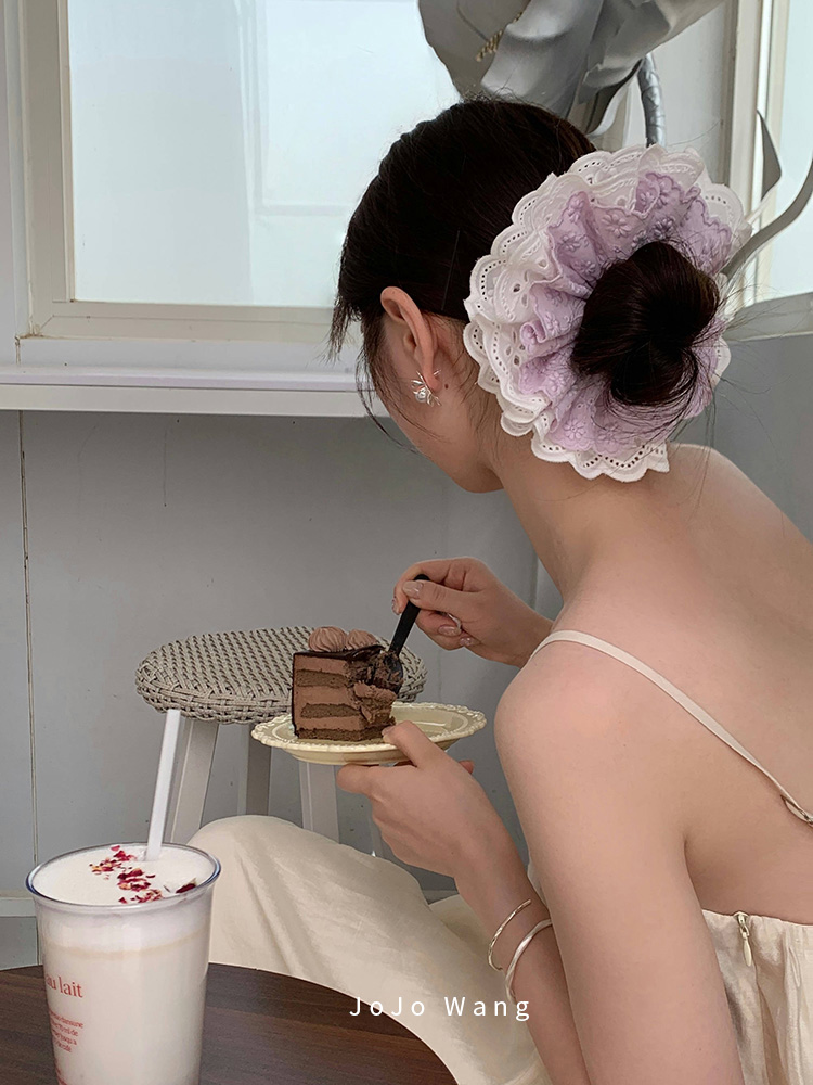 Purple~Double layer Exquisite Embroidered Lace Scrunchie