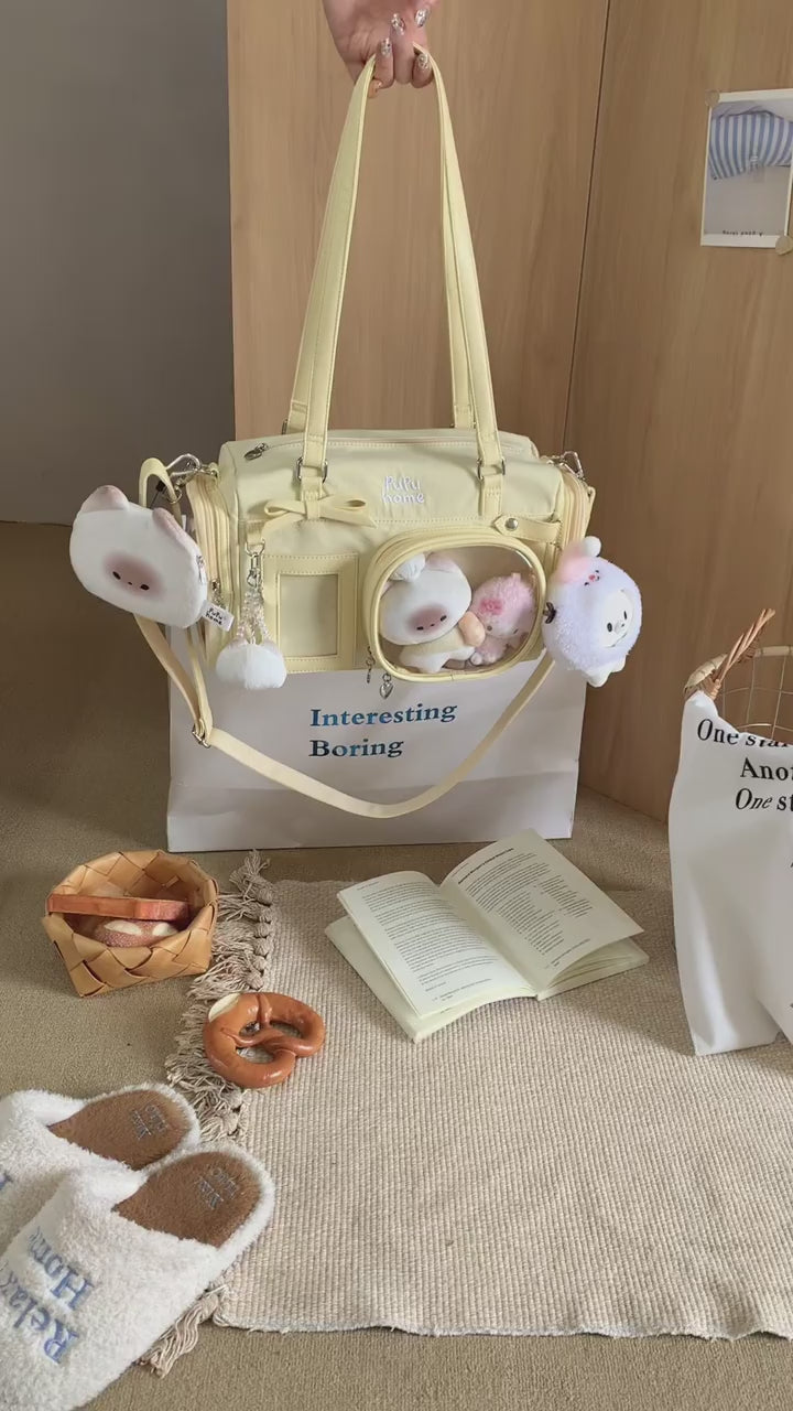 • Left-front layered pockets + fixed bow detail: Adds a cute touch while keeping items organized.