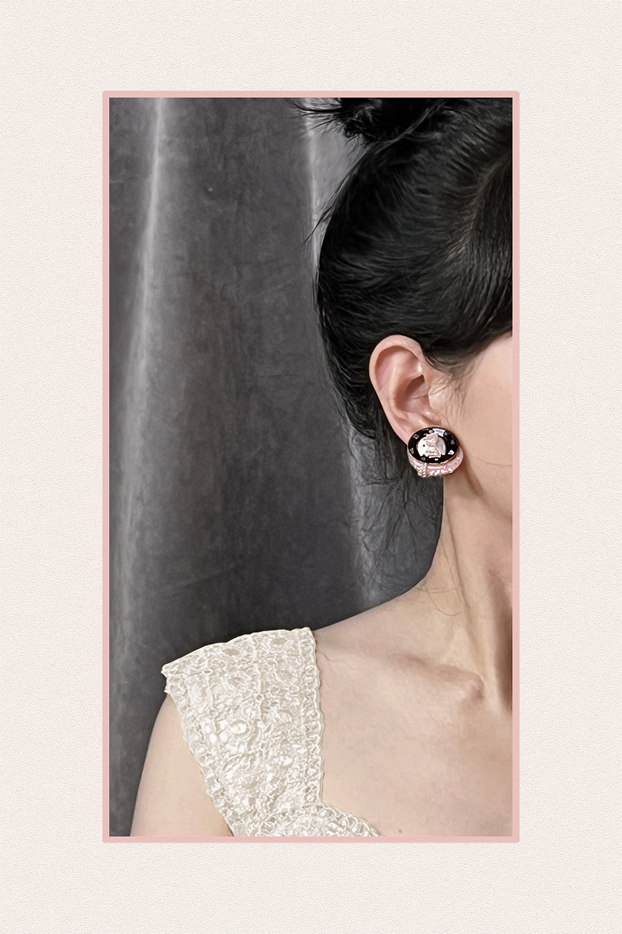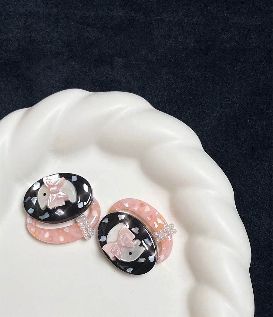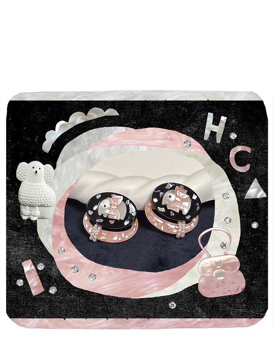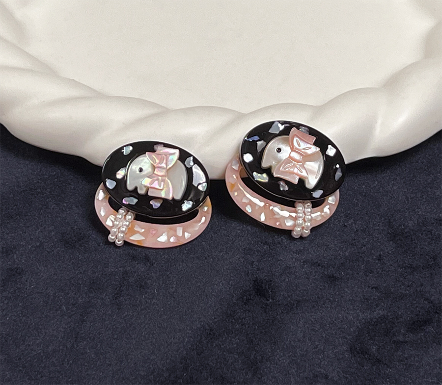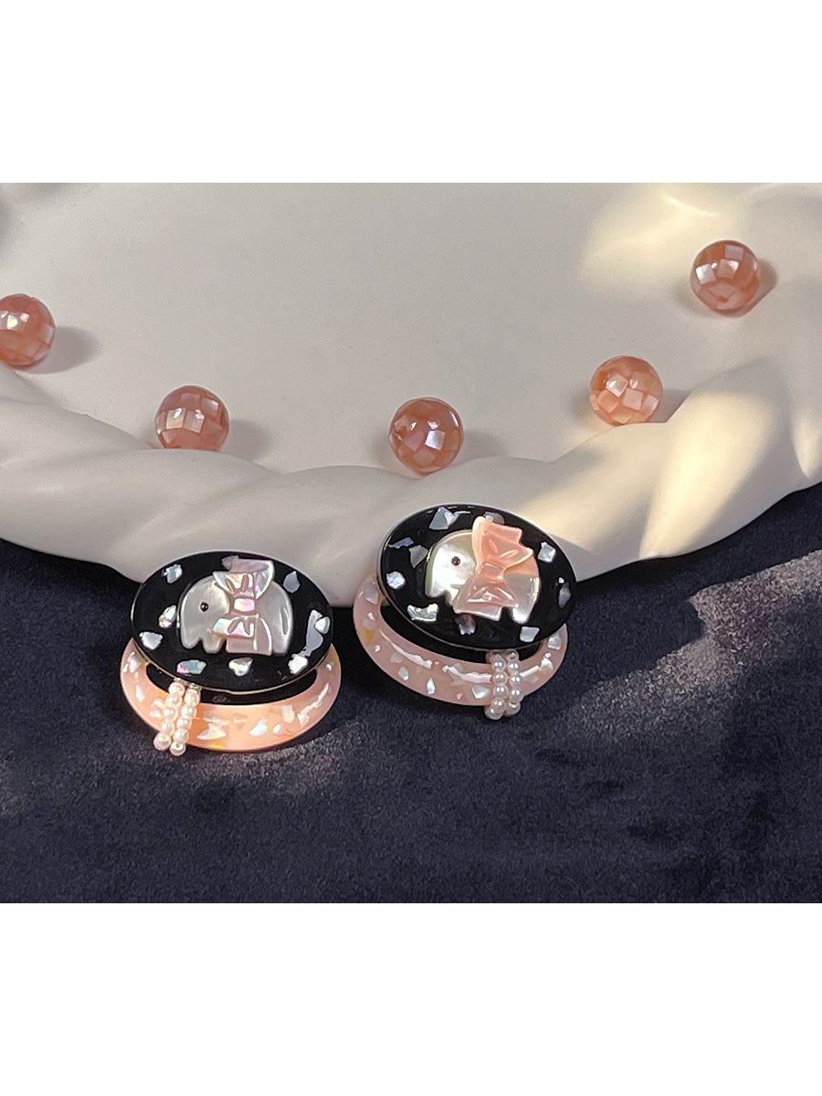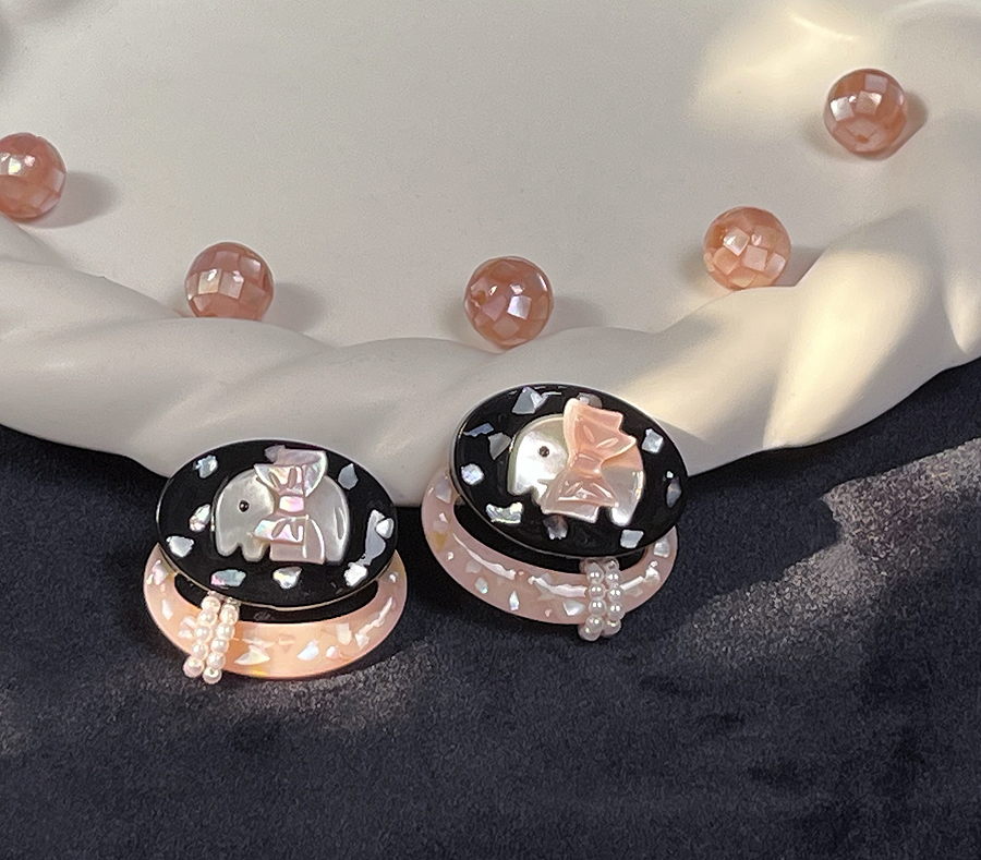 ~* Jade powder box elephant *~Dragon Palace Zoo elephant shaped sparkling shell pearl earrings