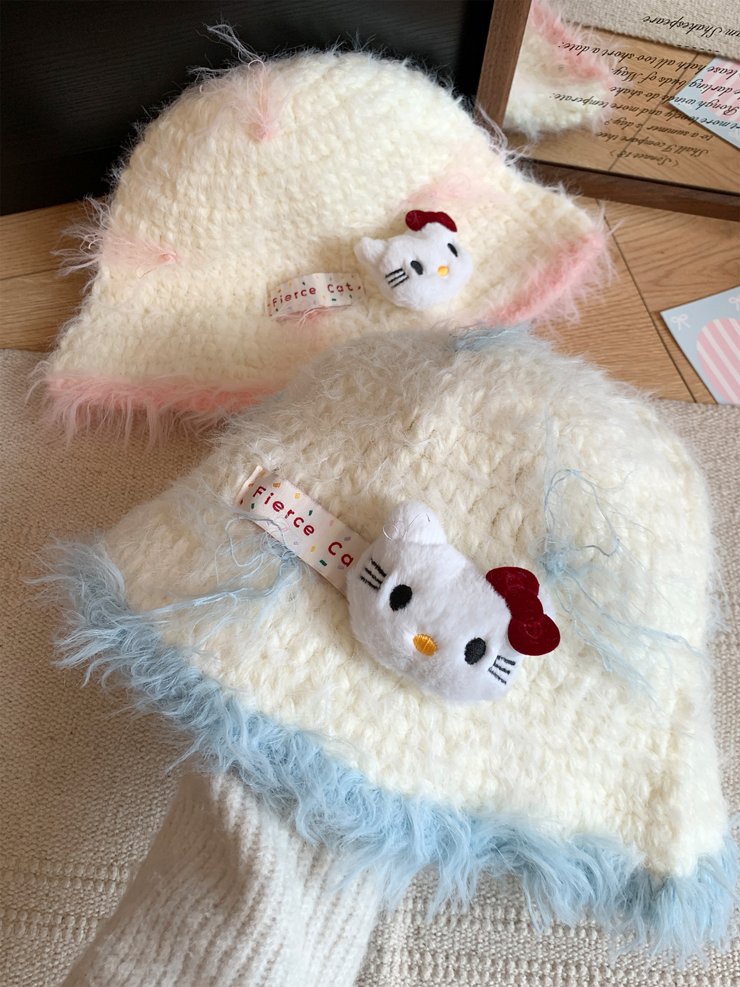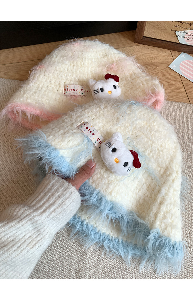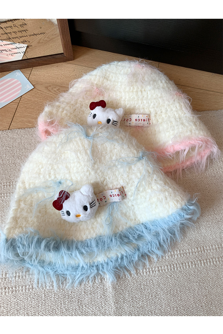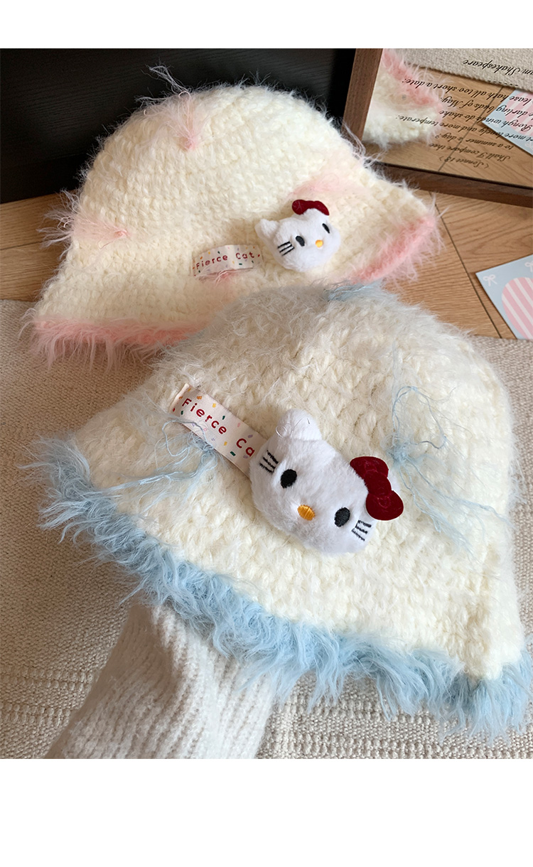 Kitty cat plush knitted fisherman hat