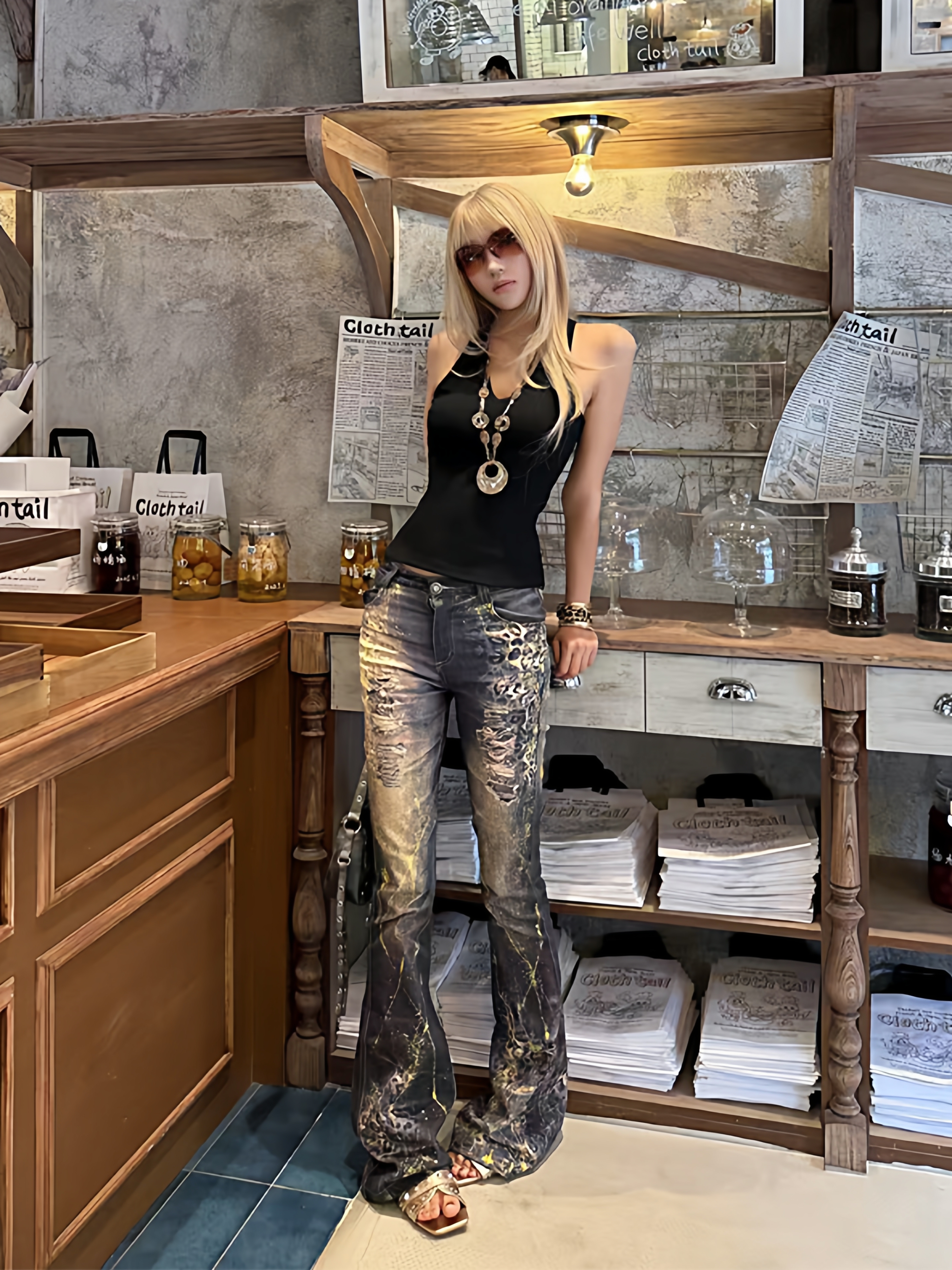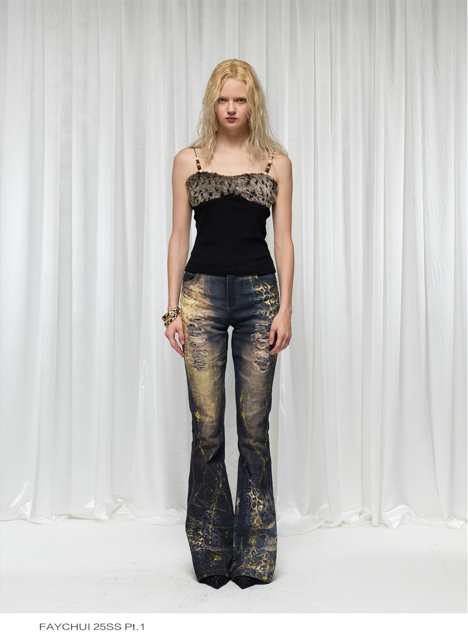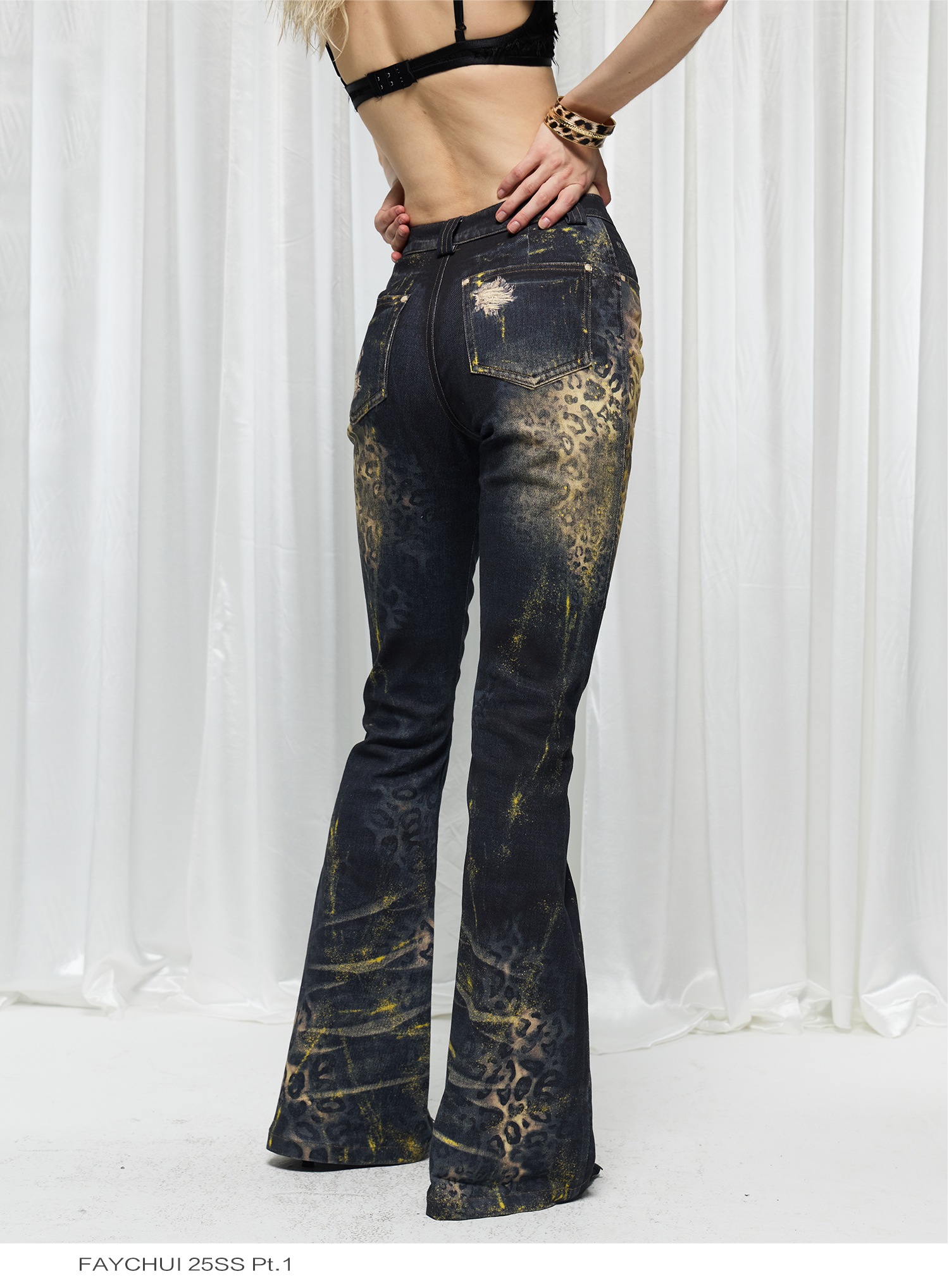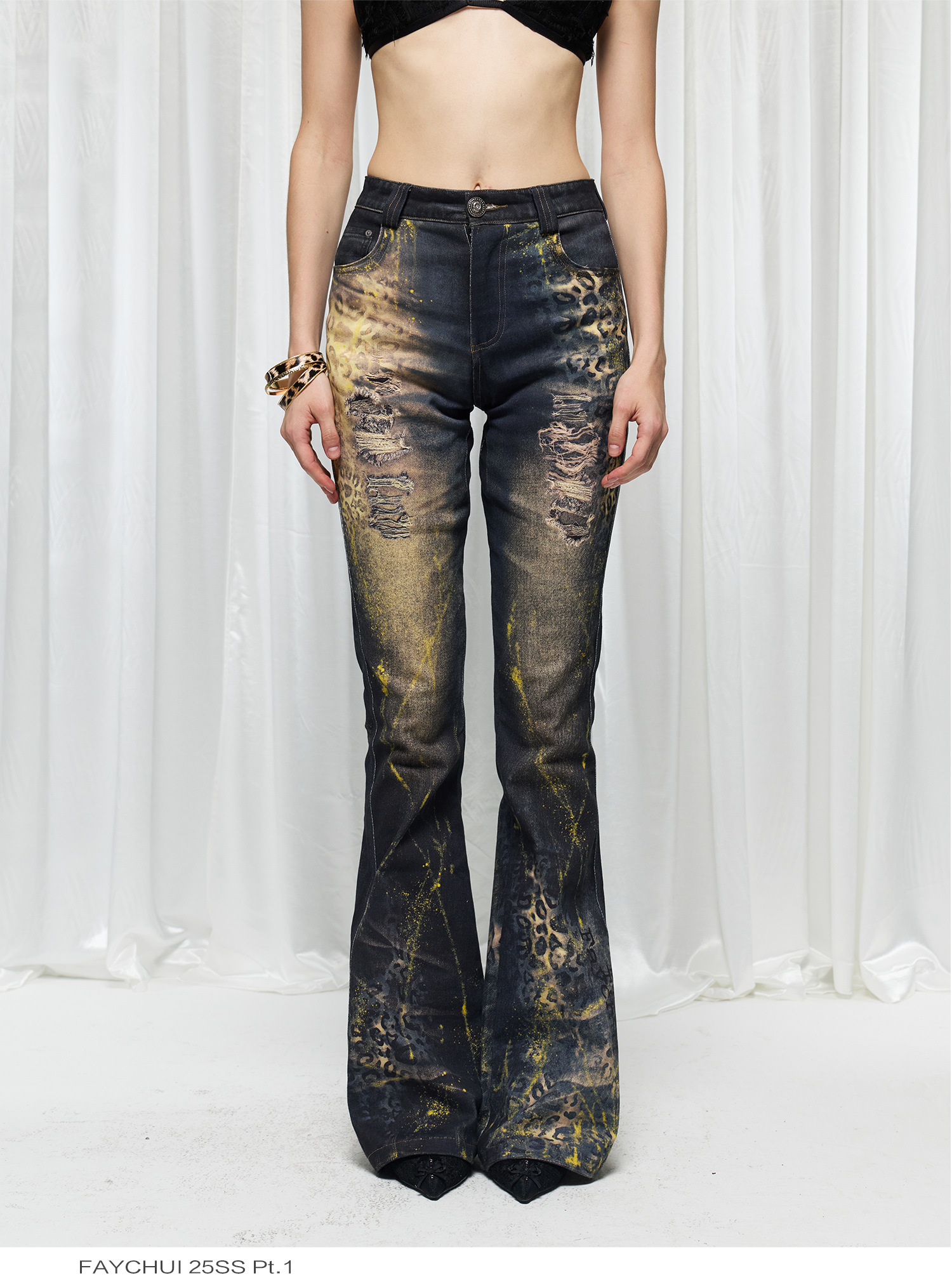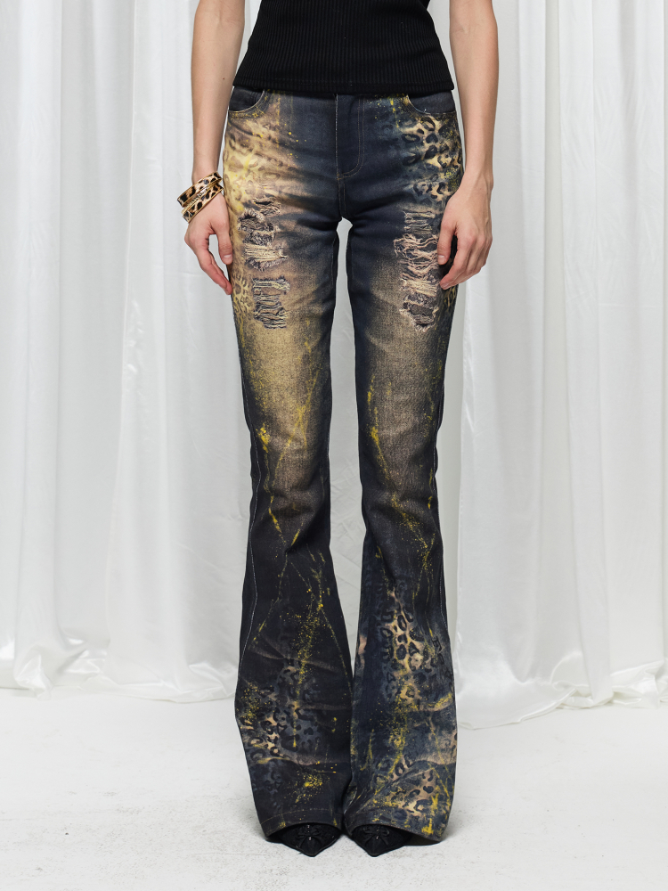 Leopard print hot stamping flared jeans