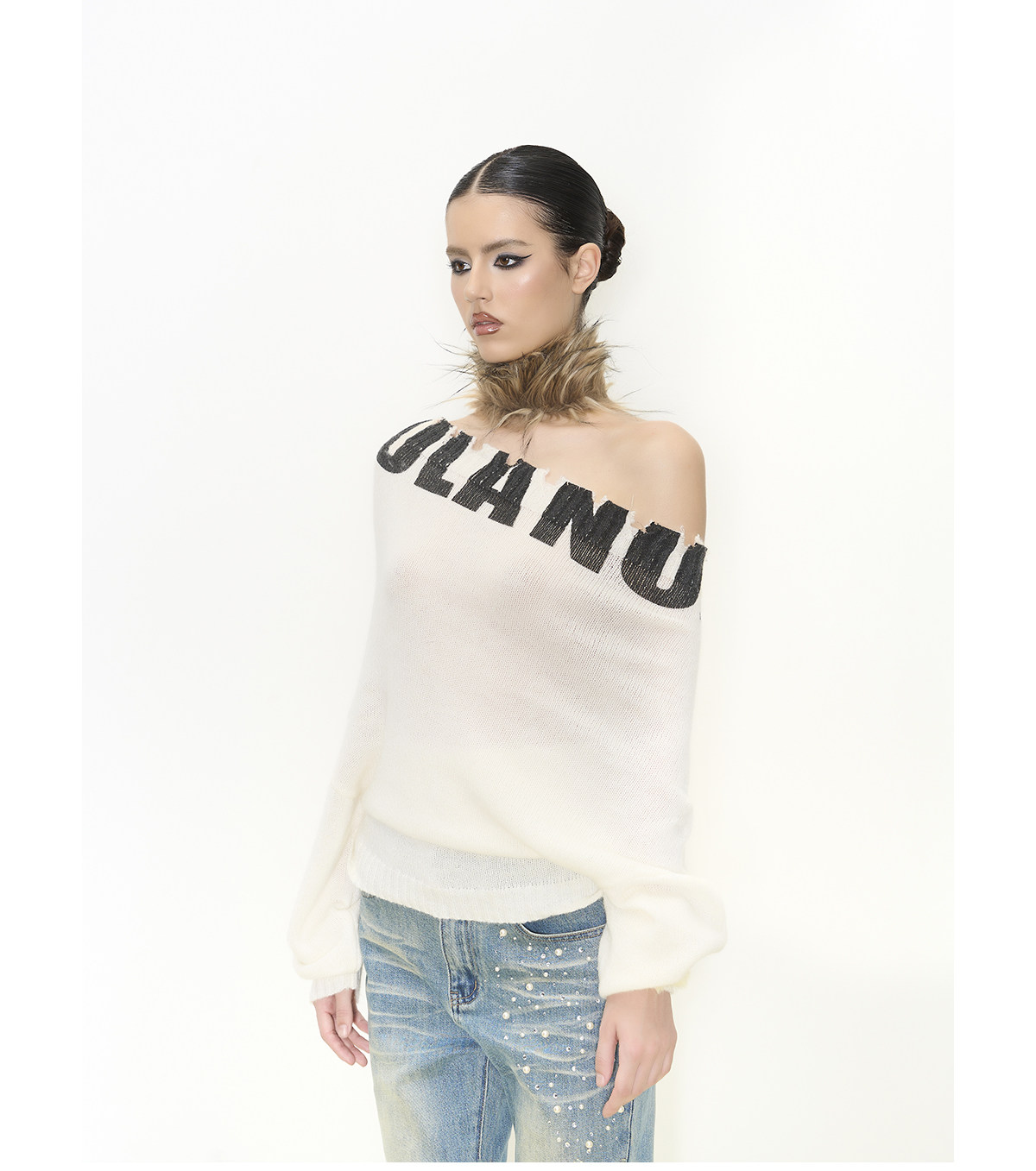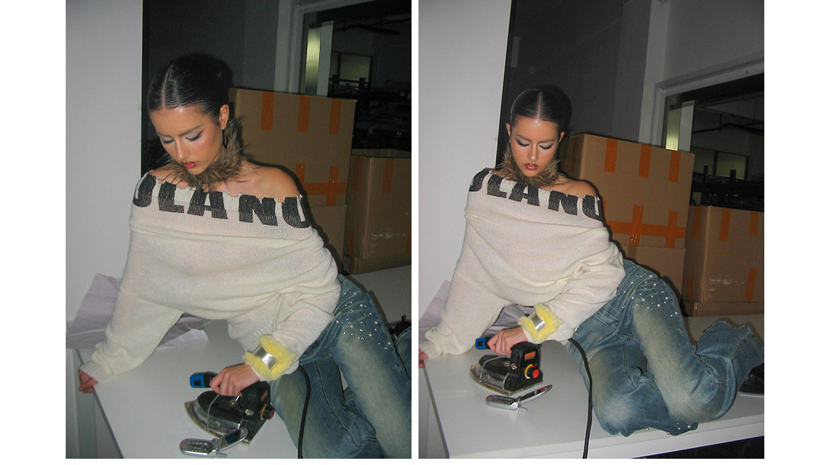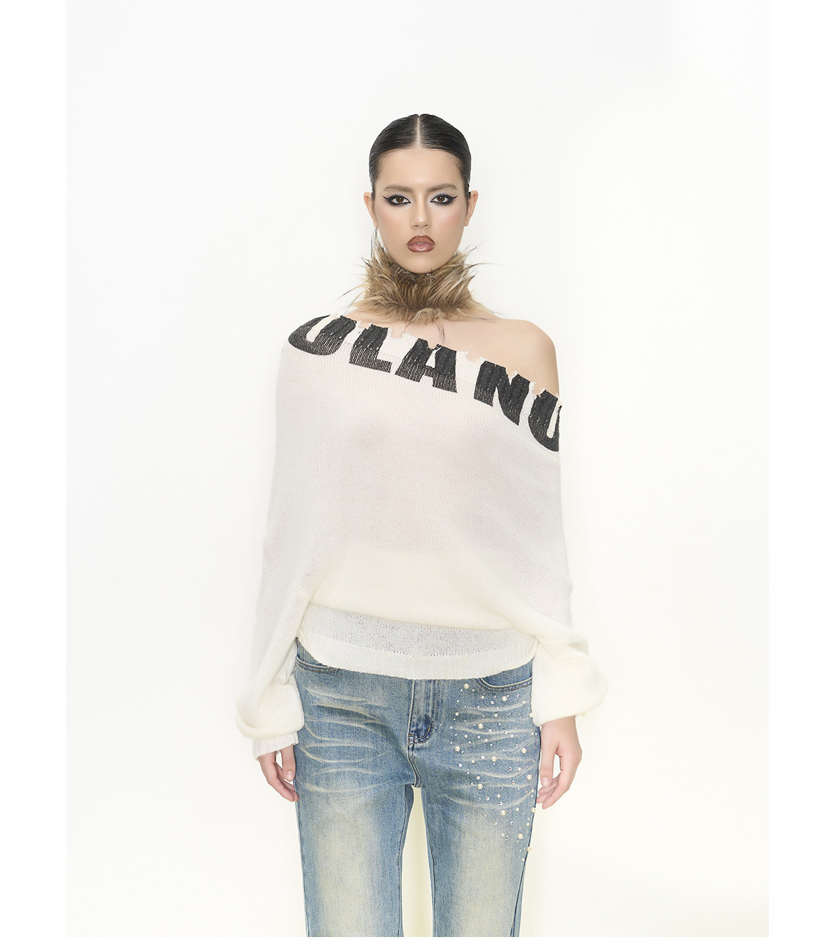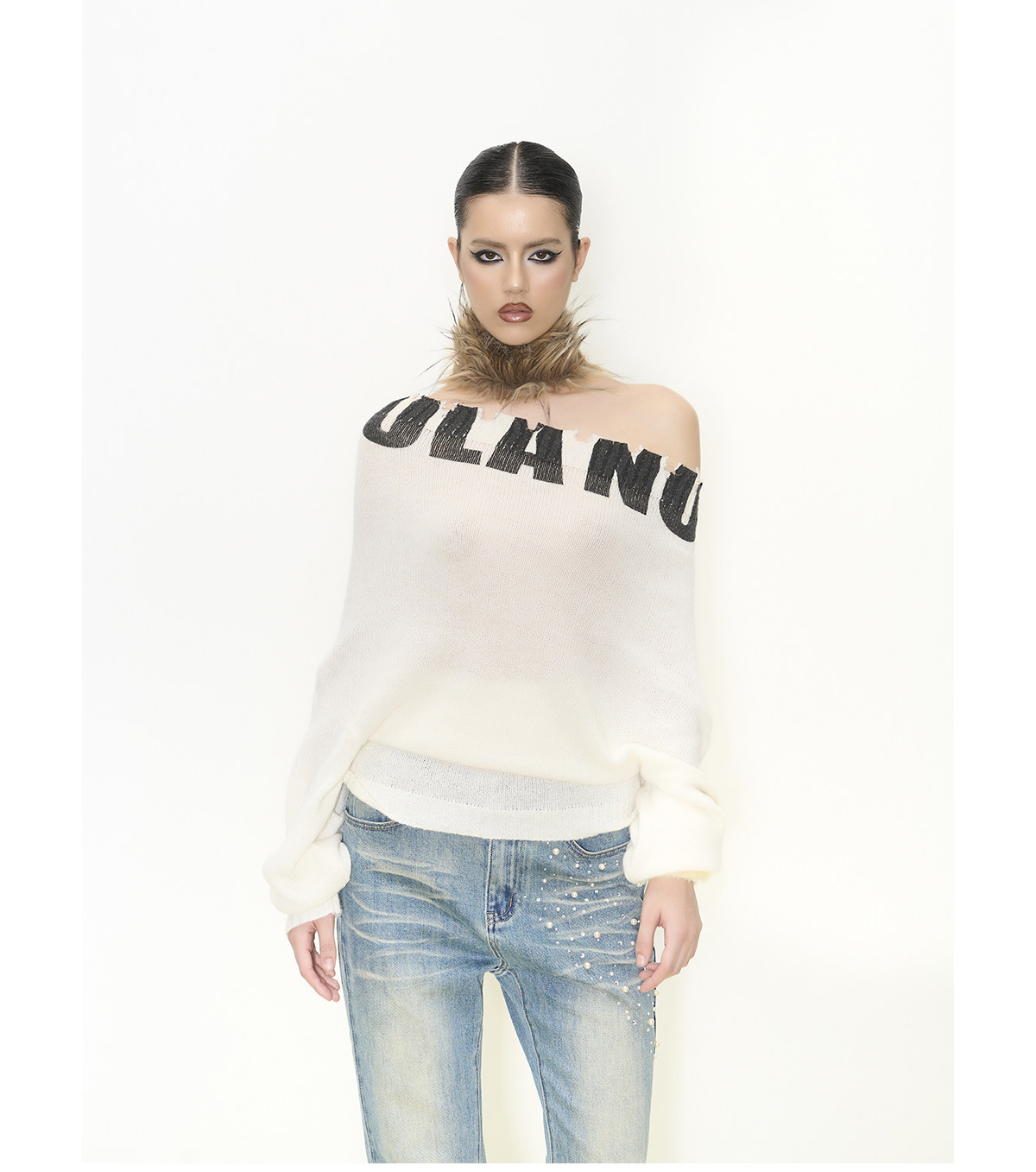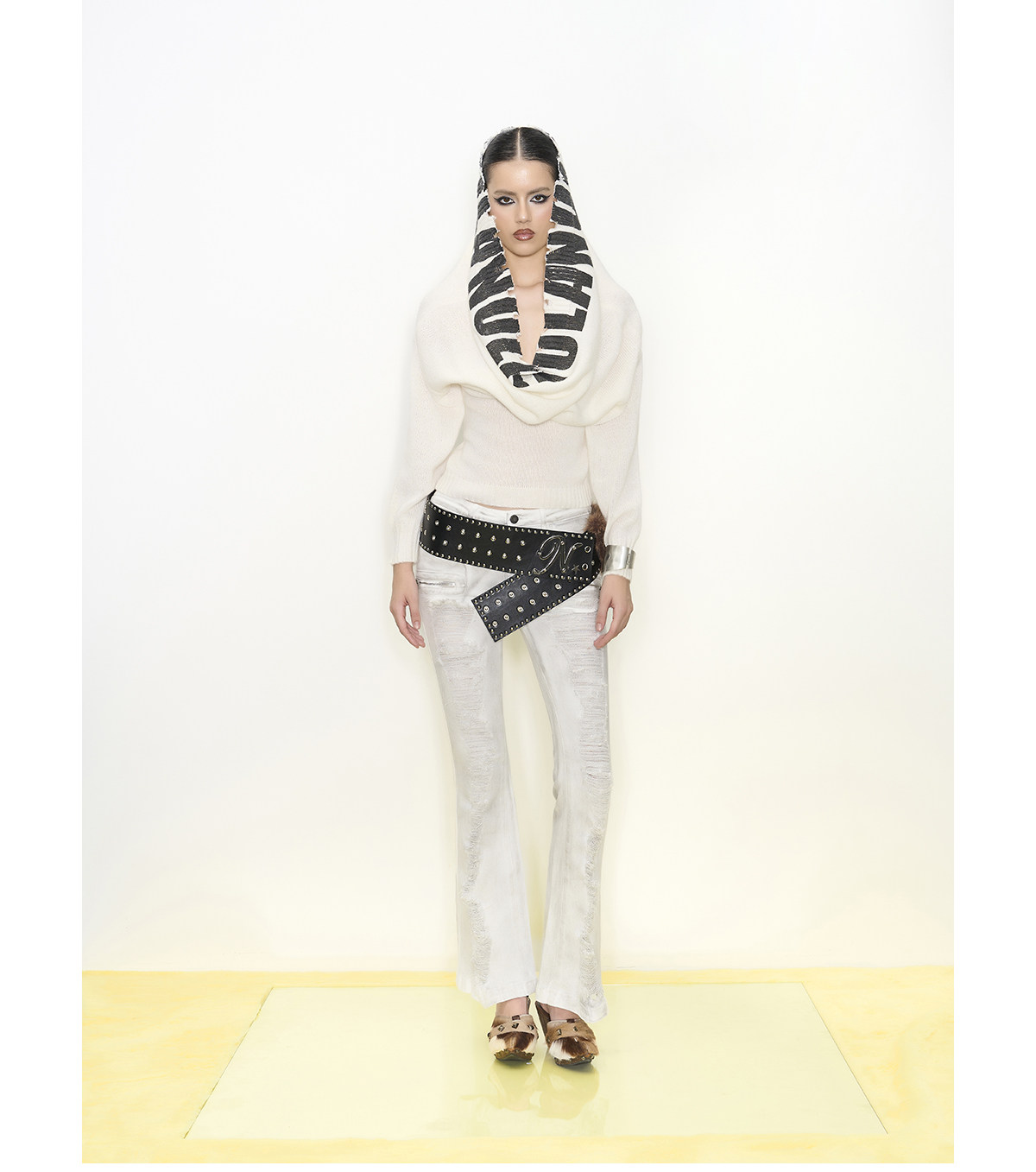off-shoulder hooded woolen dress
