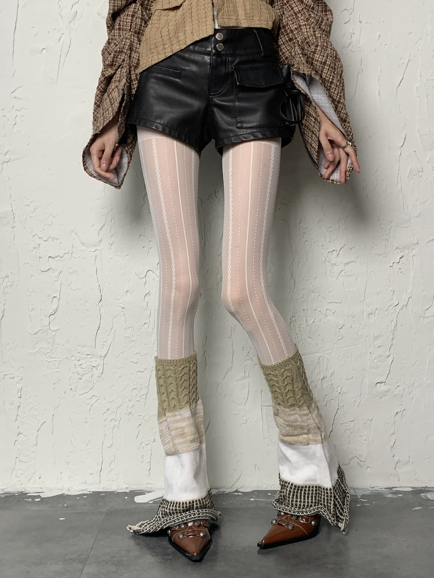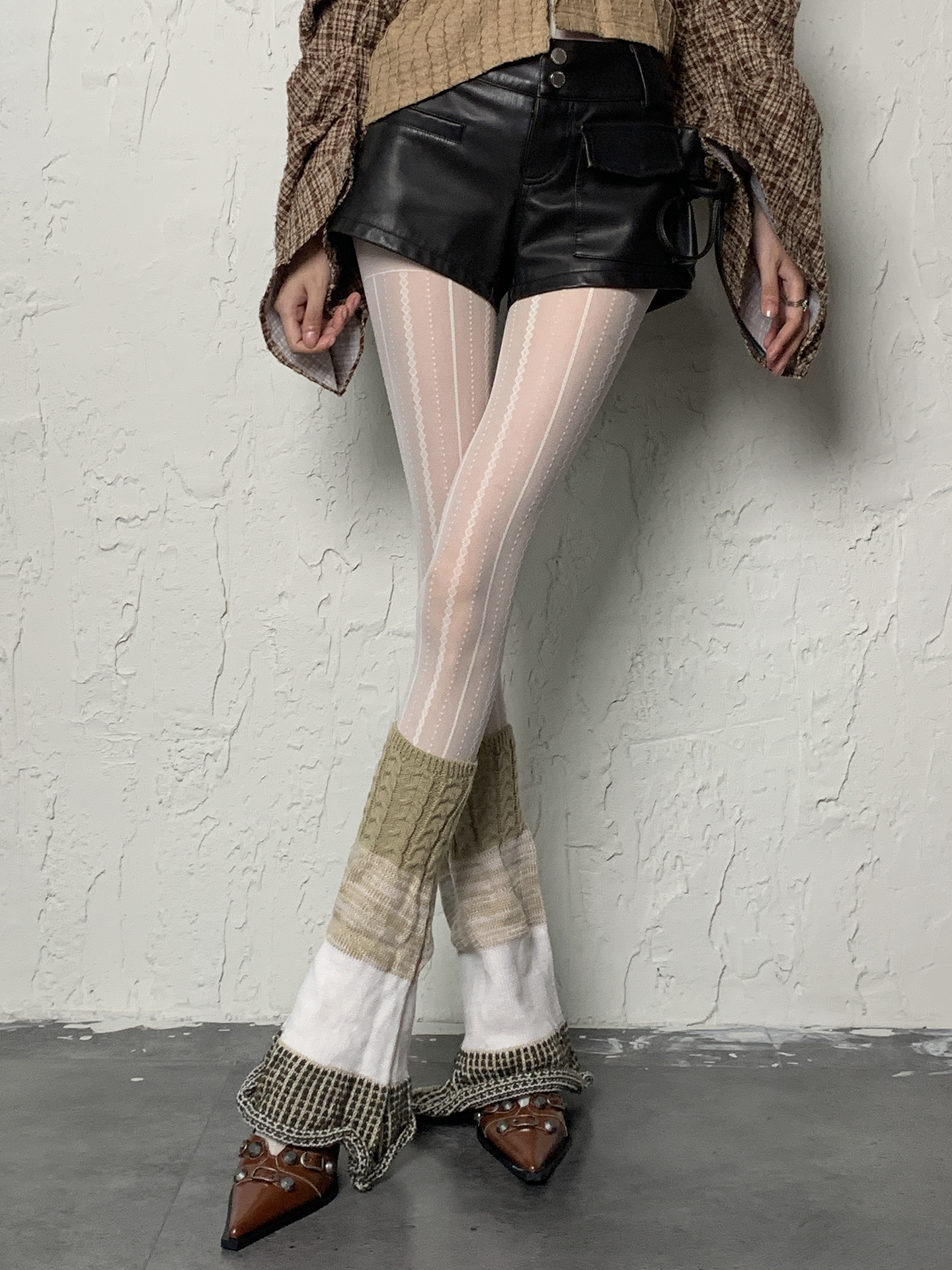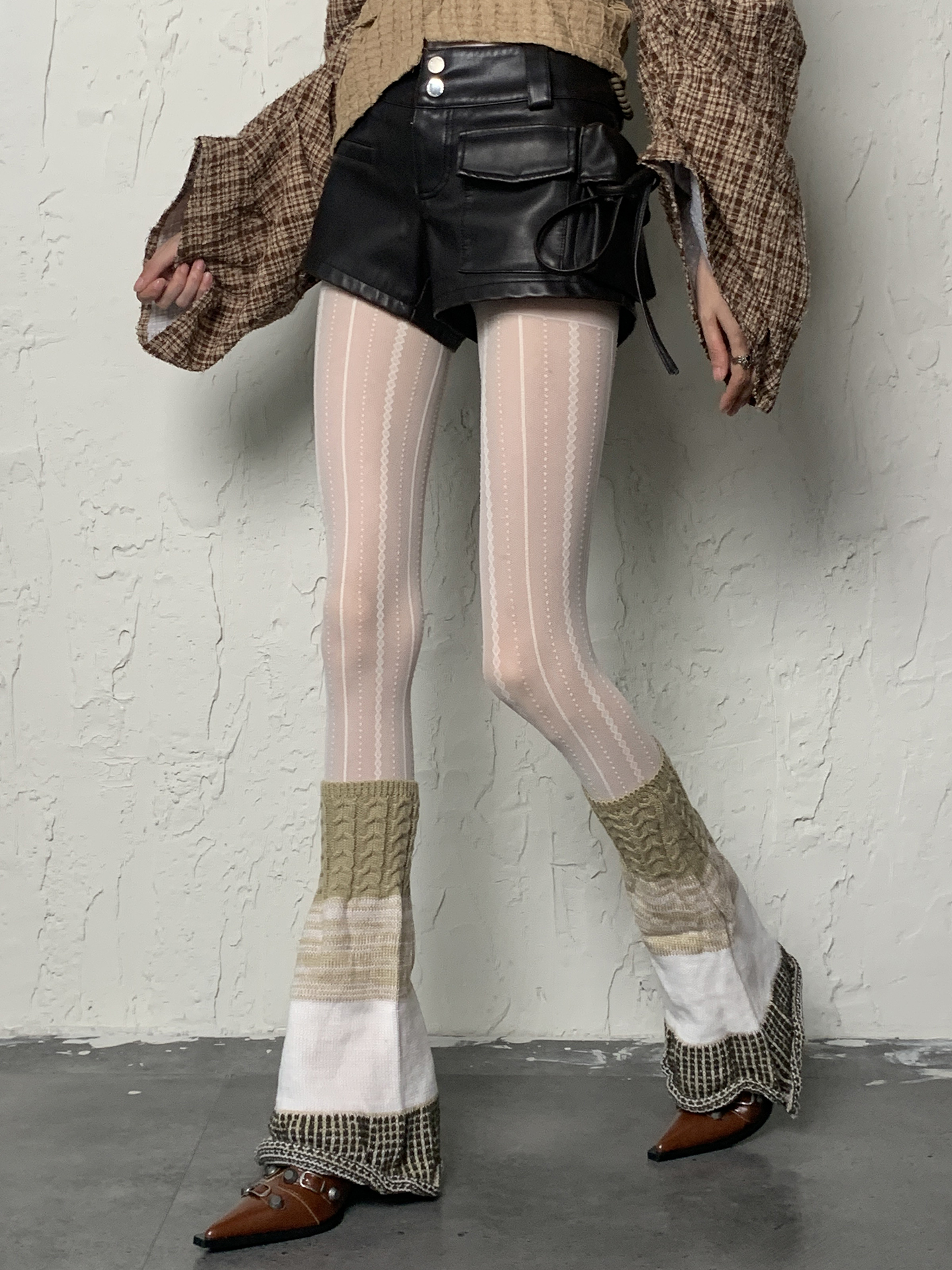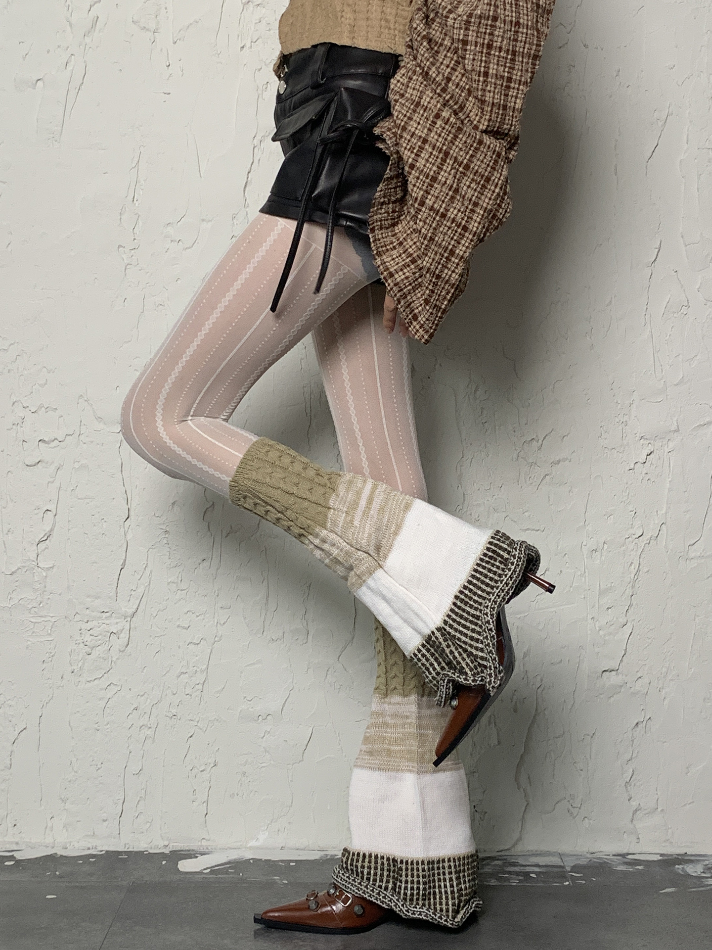 Light Asian Milk White Vertical Pattern&Khaki Trumpet Socks