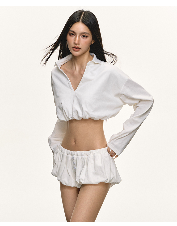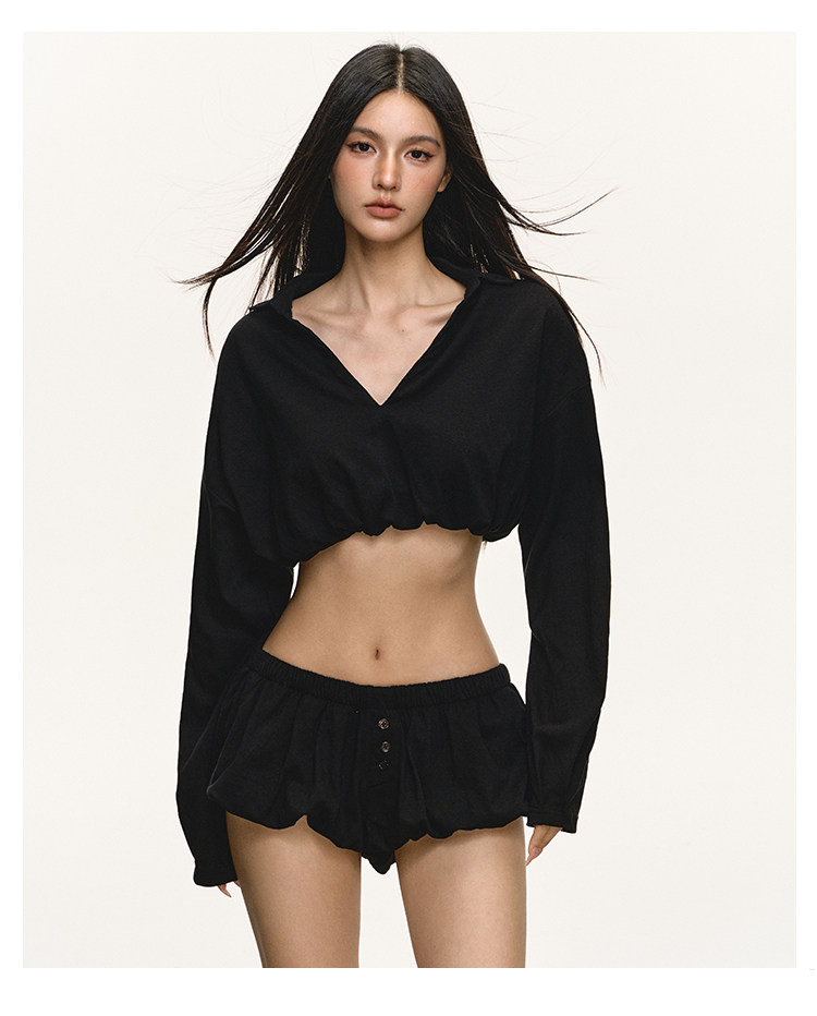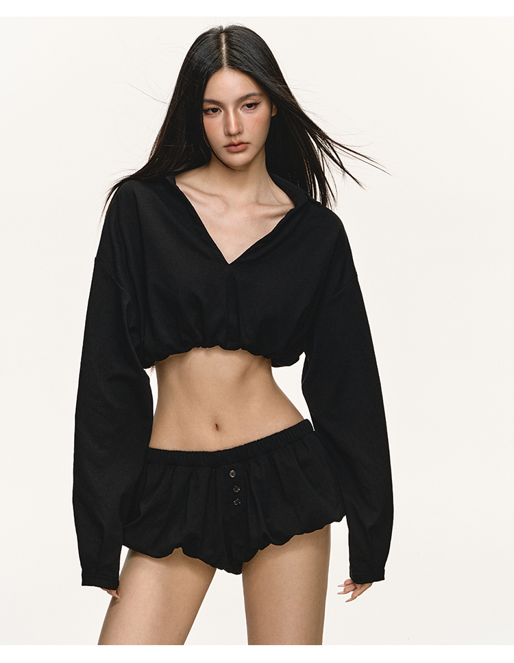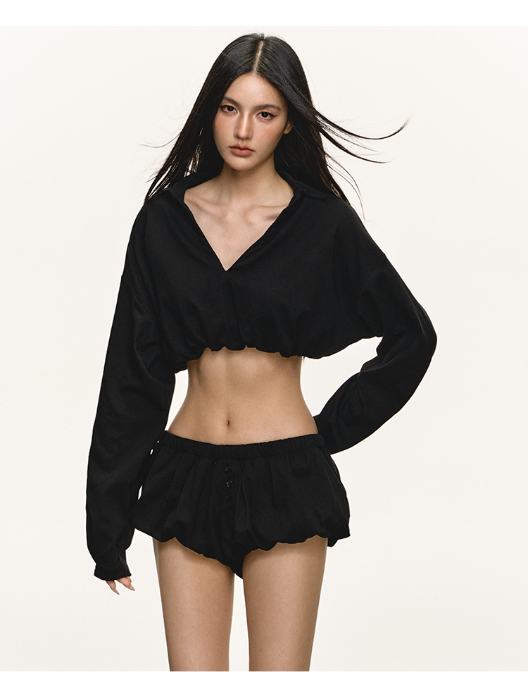 Long sleeved top and shorts two-piece set