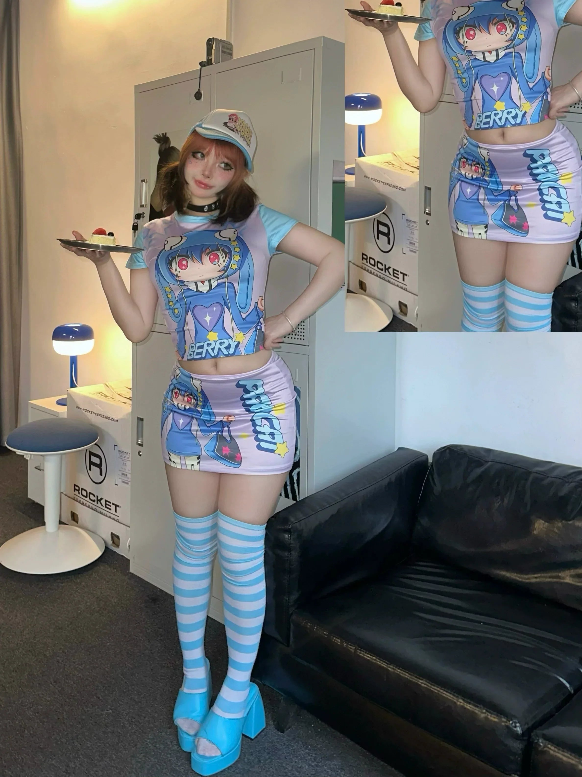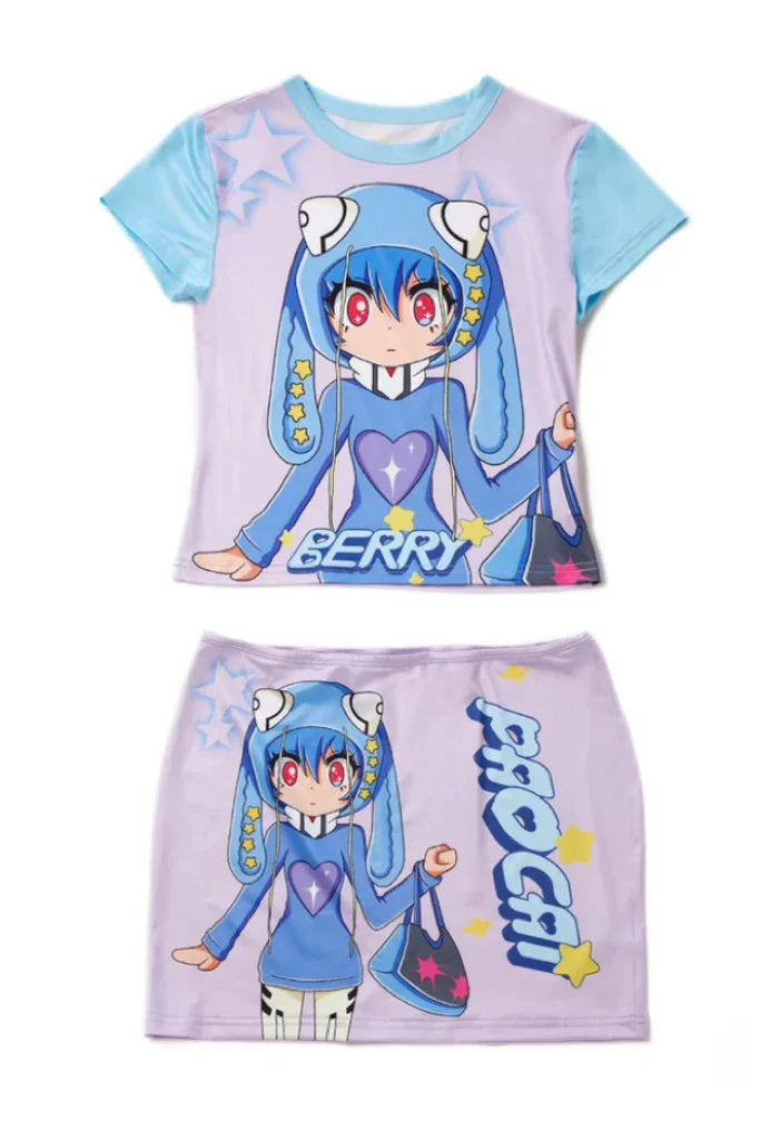PaoCai co-branded Eva Lingpoli Asuka print skirt set