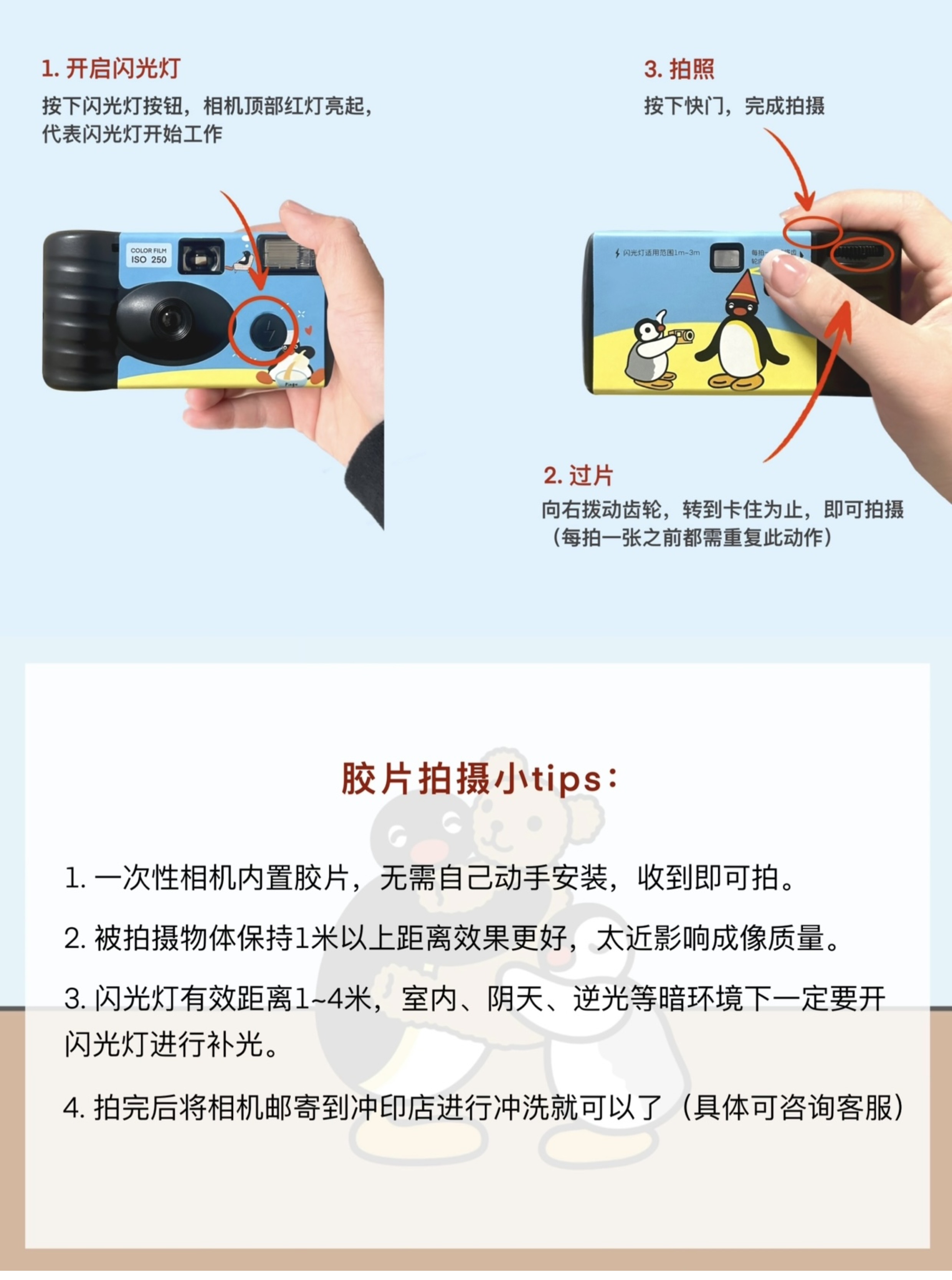 Pingu Penguin disposable film camera, point and shoot film machine