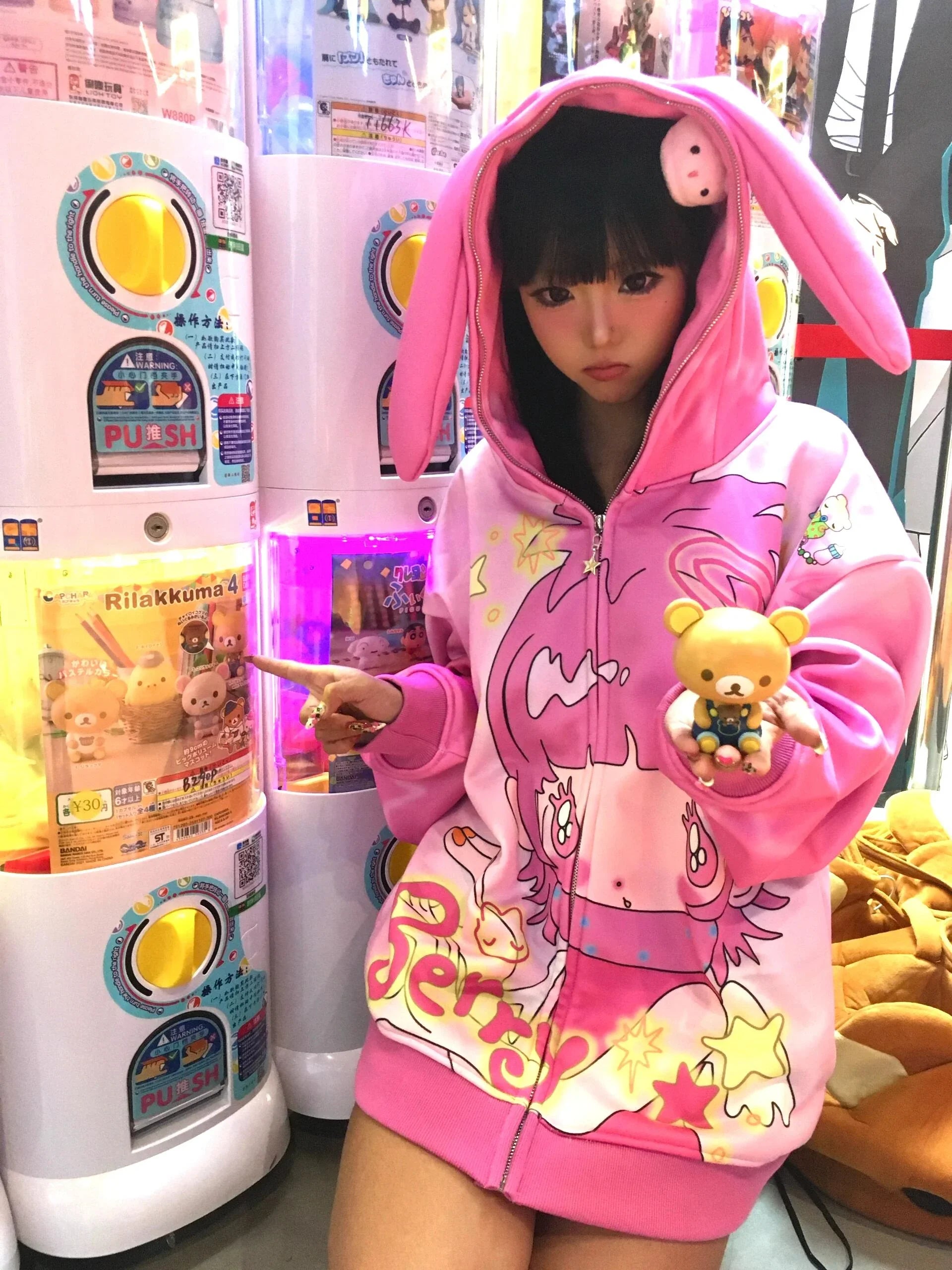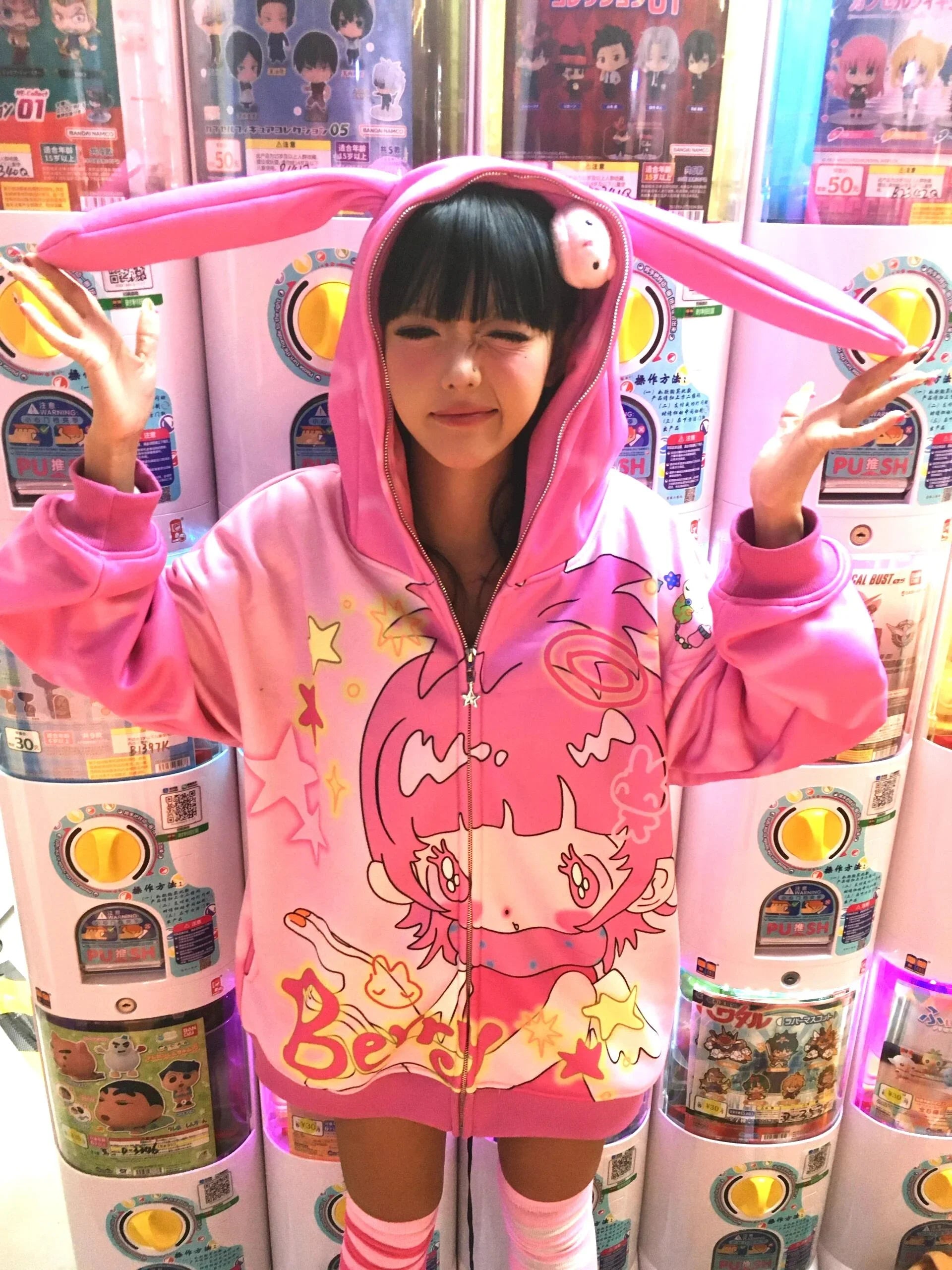 Pink girl rabbit ear velvet coat